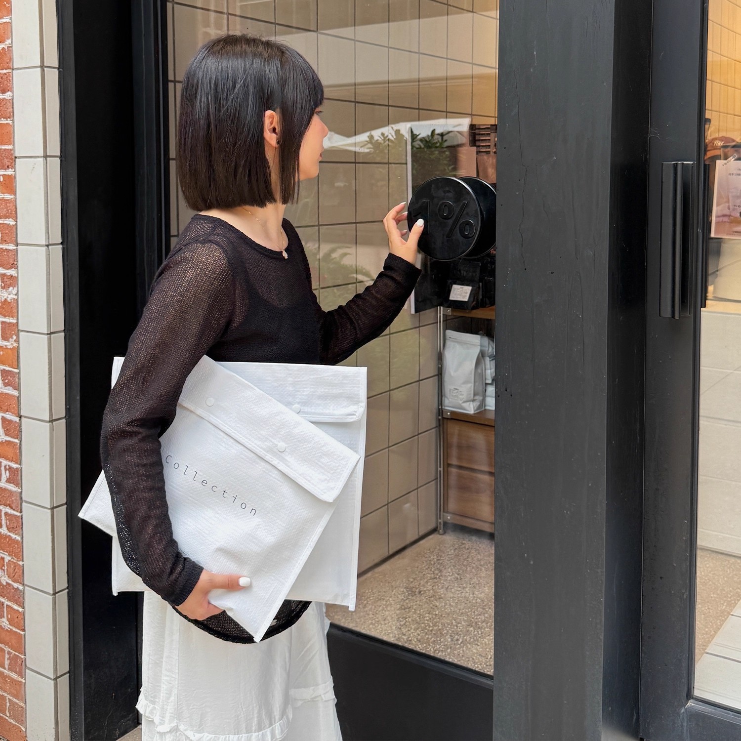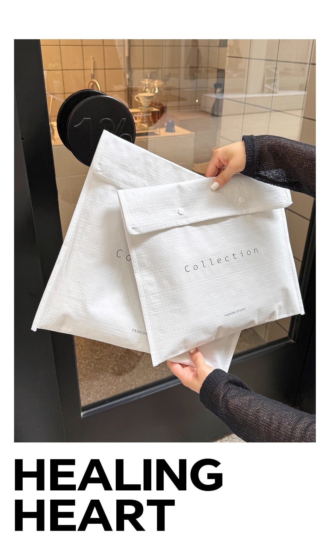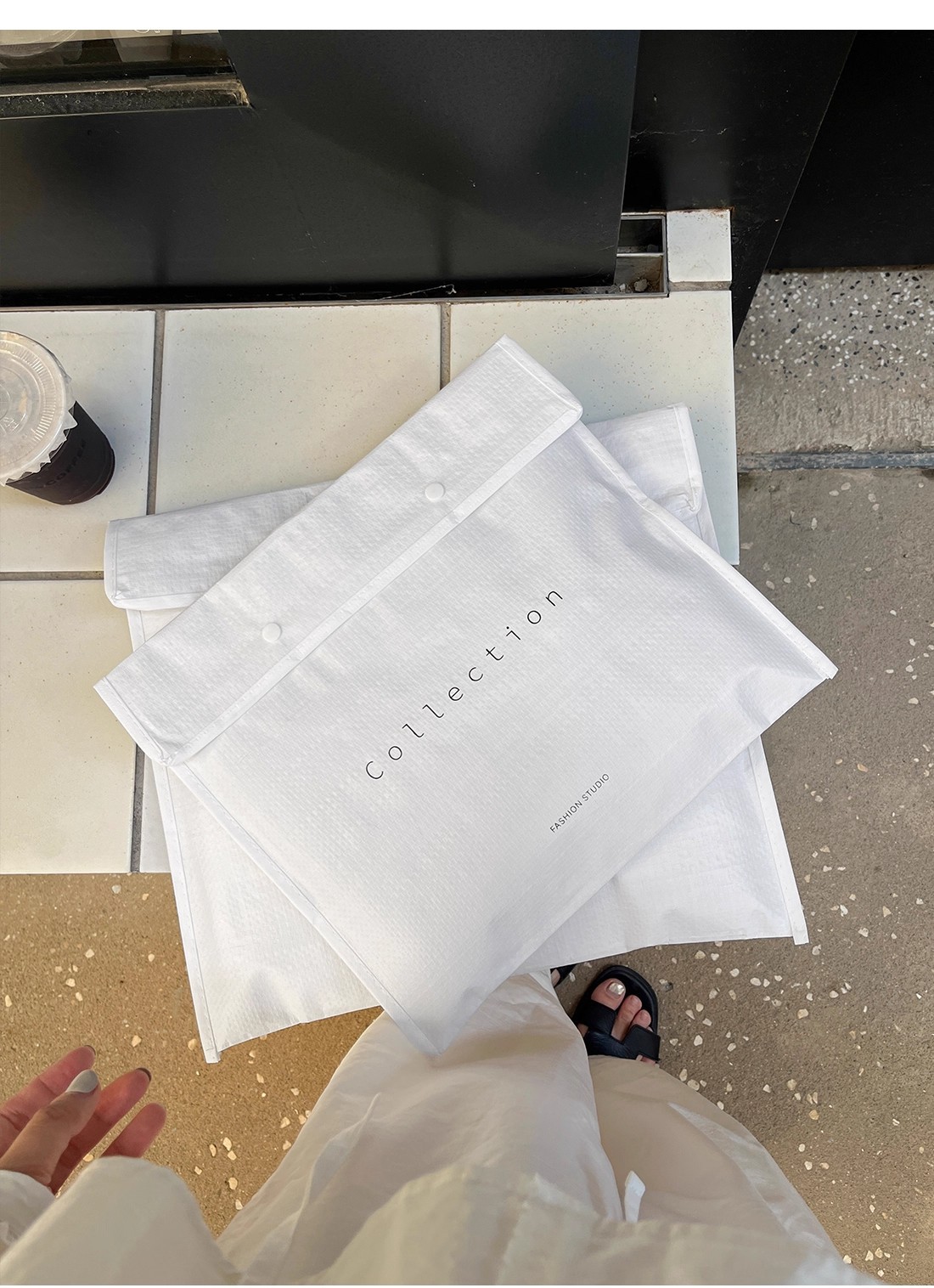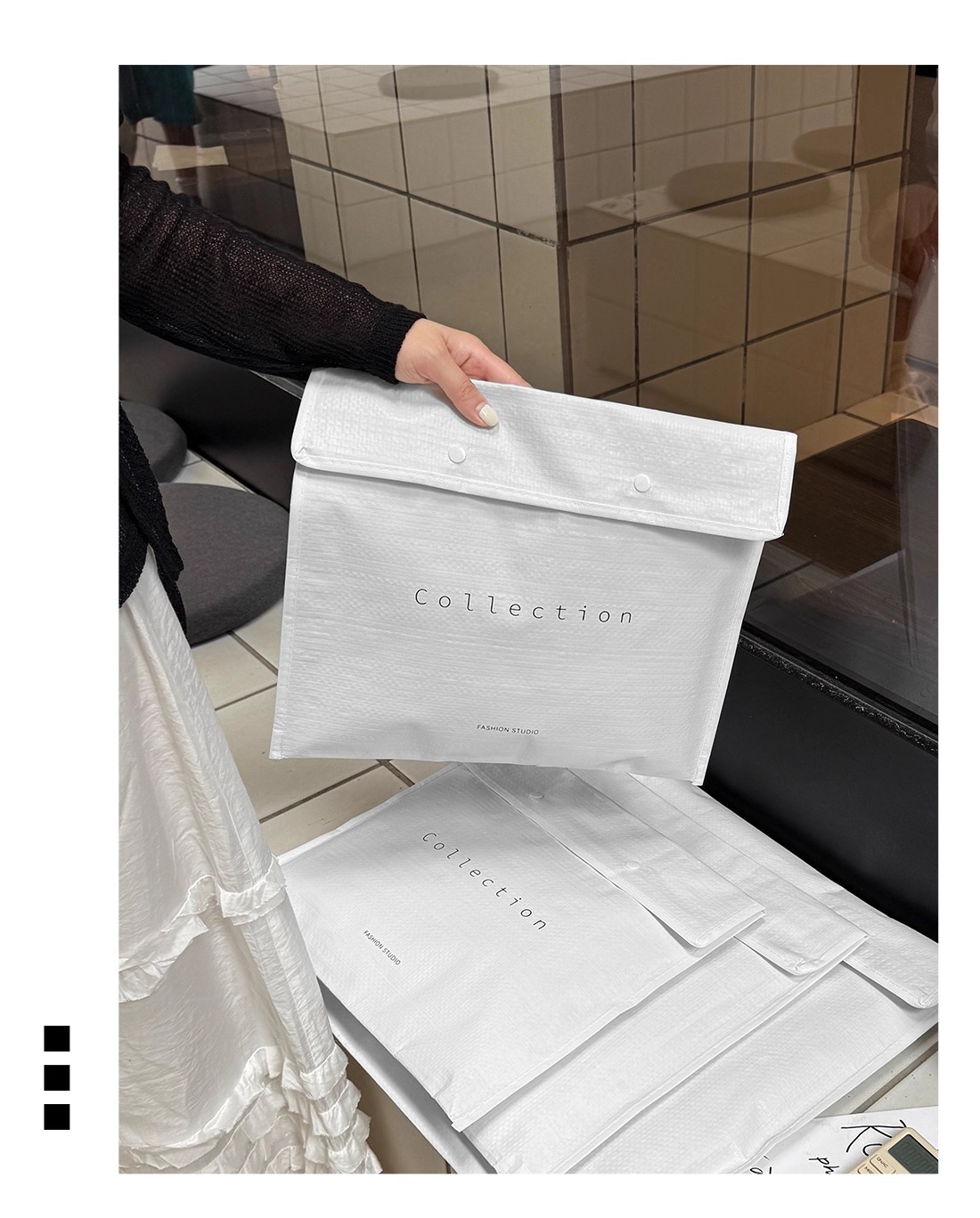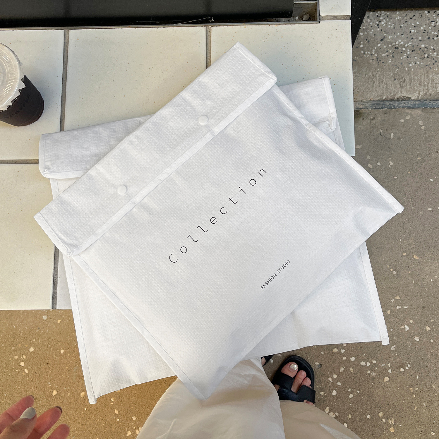 envelope-style woven bag with lettering; medium size: 40*35cm +10cm gusset; 1 piece