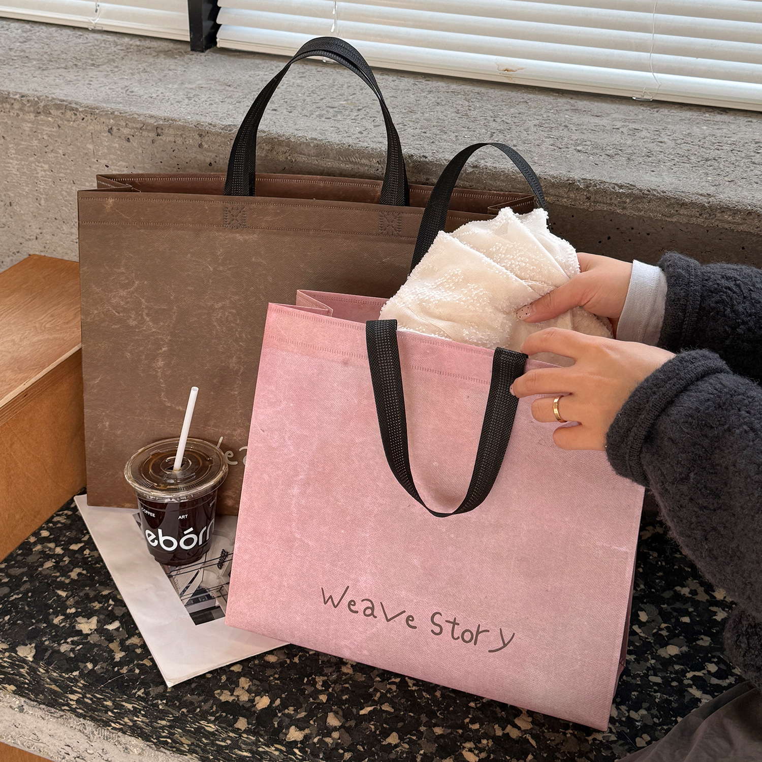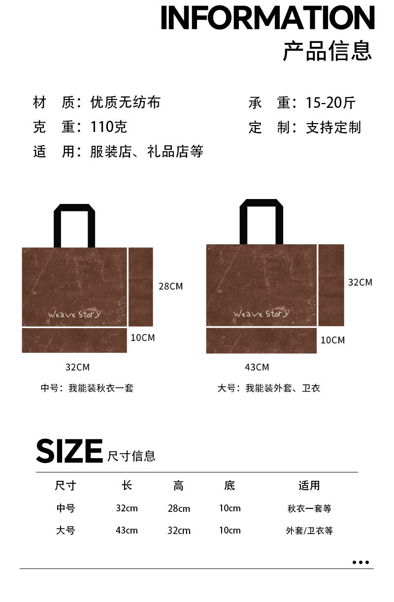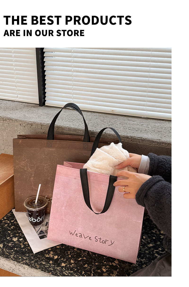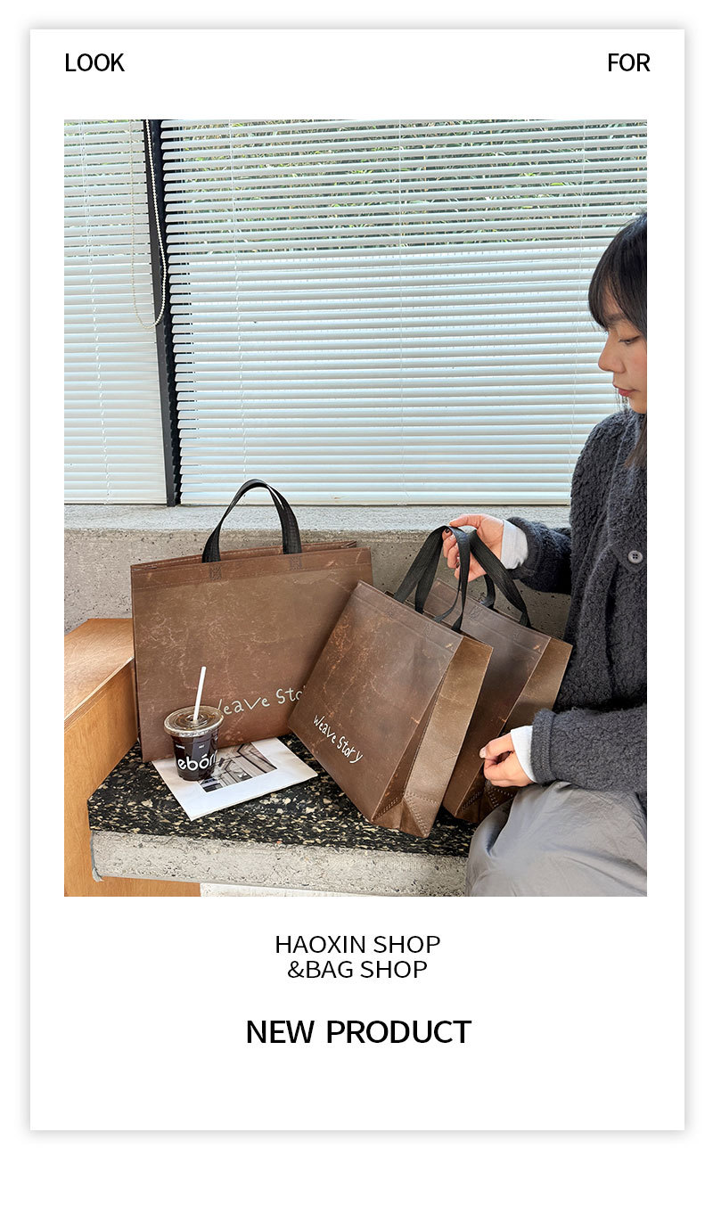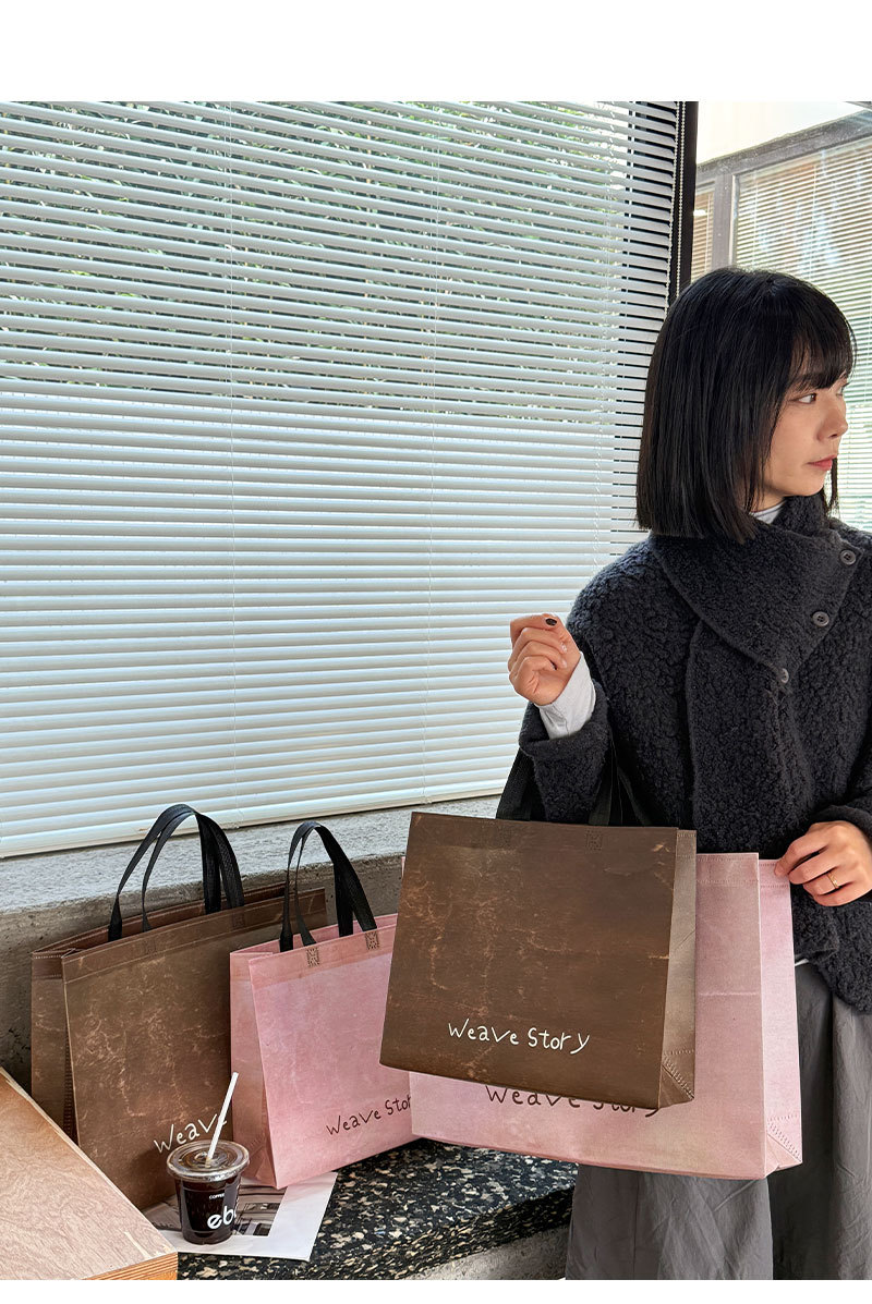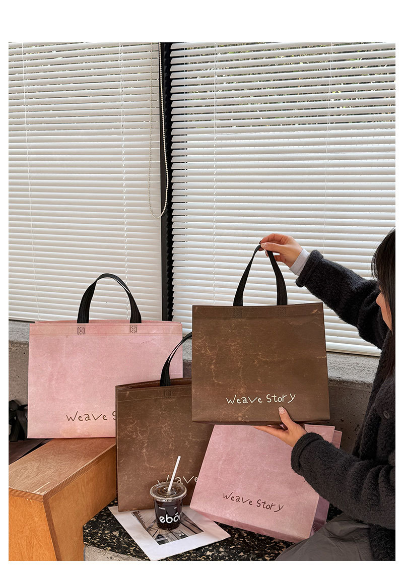 weave vintage brown non-woven tote bag; large size: 43cm long, 32cm high, 10cm wide; 1 piece