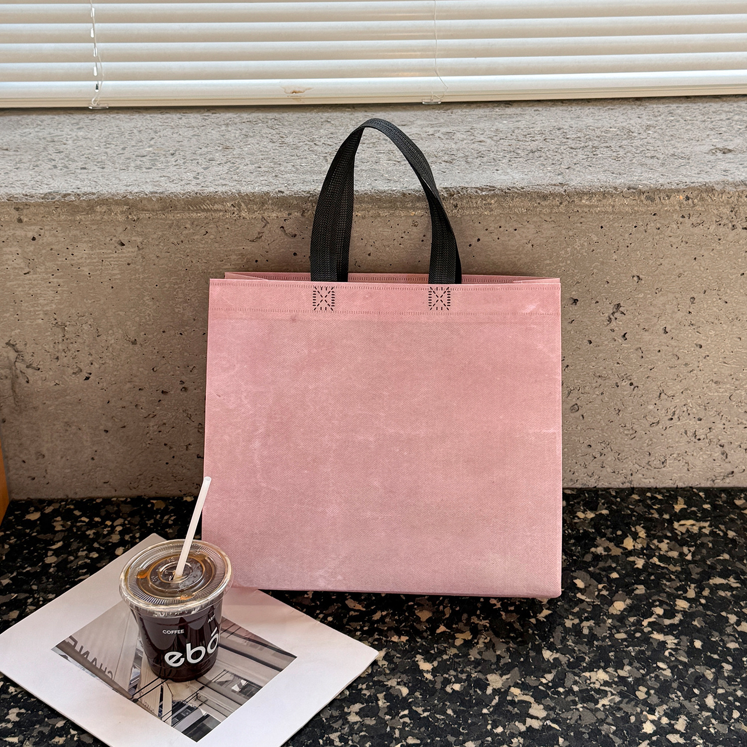 retro pink wordless non-woven tote bag; large size: length 43 cm, height 32 cm, side 10 cm; 1 piece