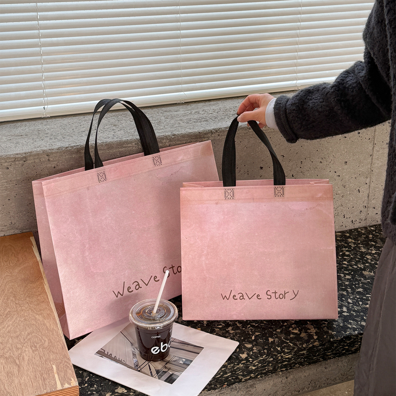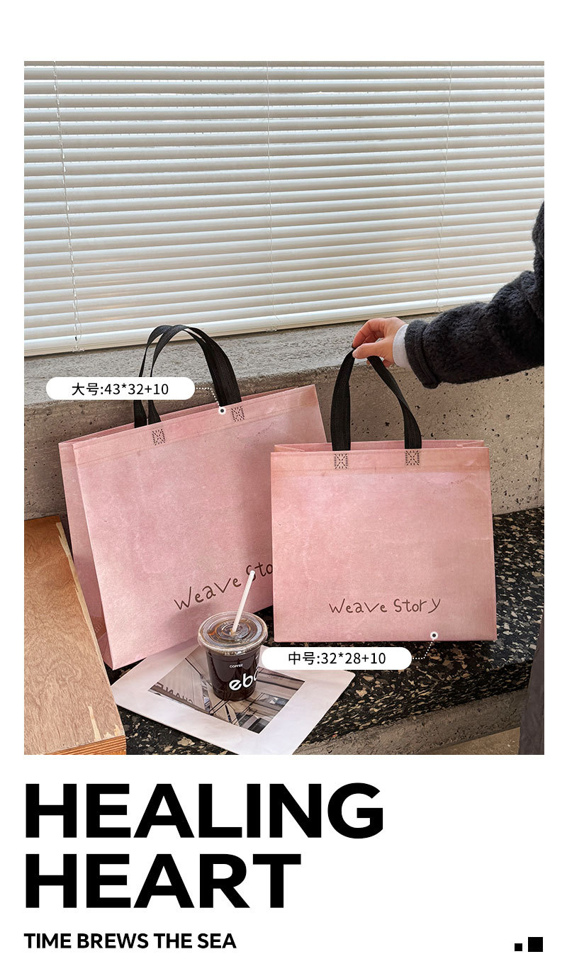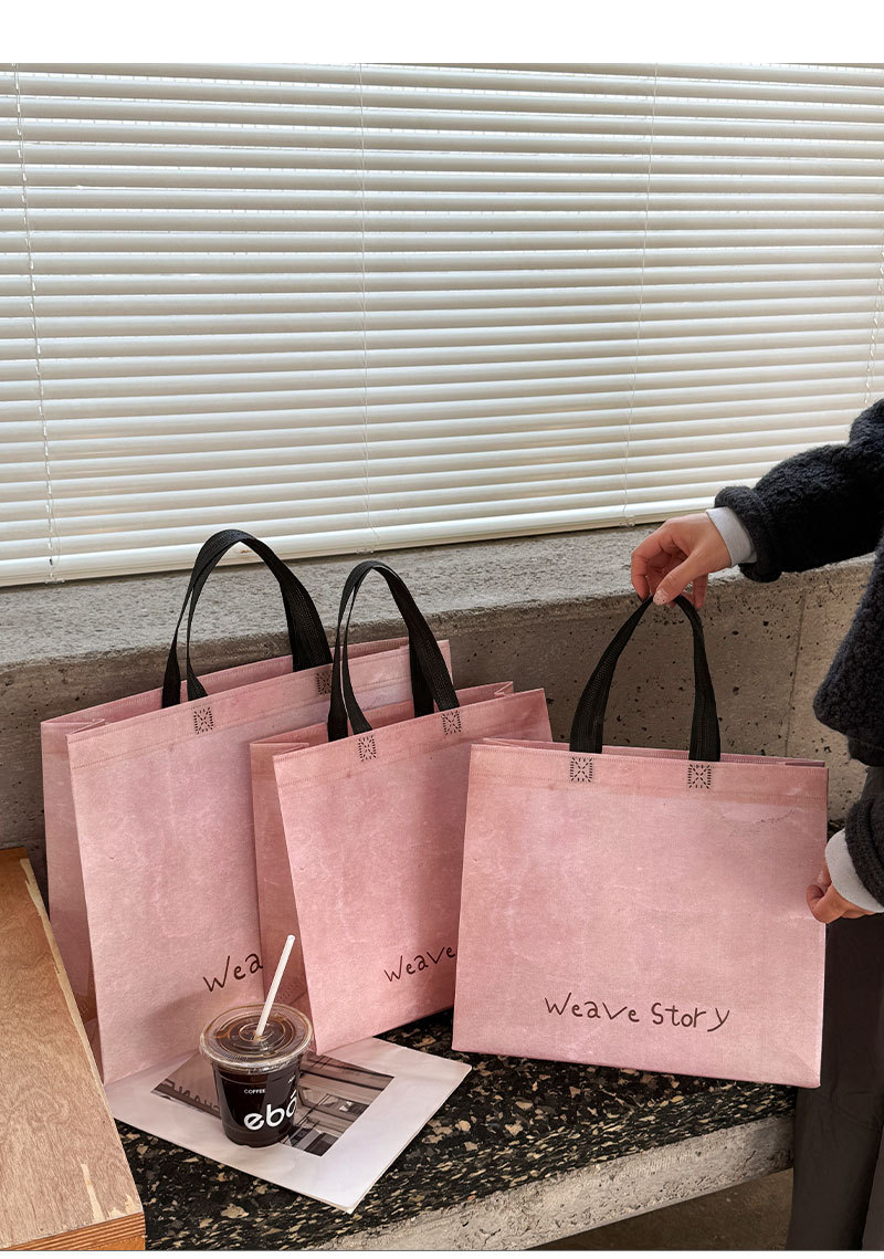 weave retro pink non-woven fabric tote bag; medium size: 32cm long, 28cm high, 10cm wide; 1 piece