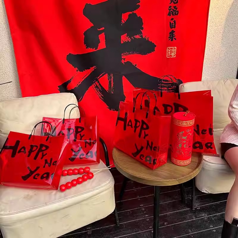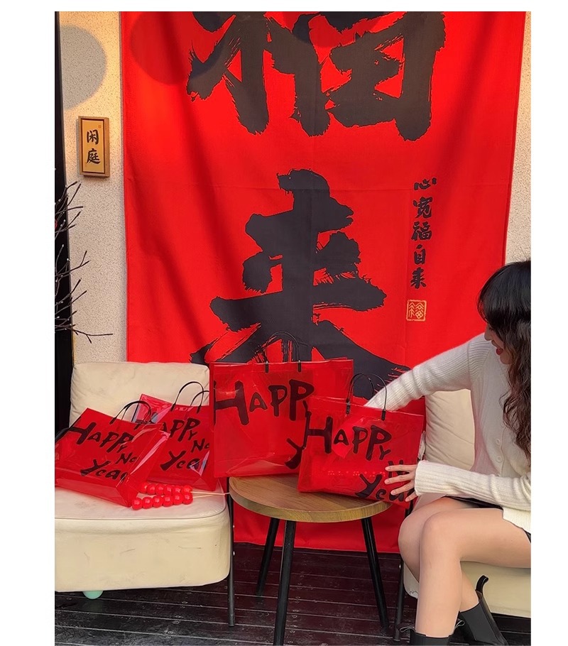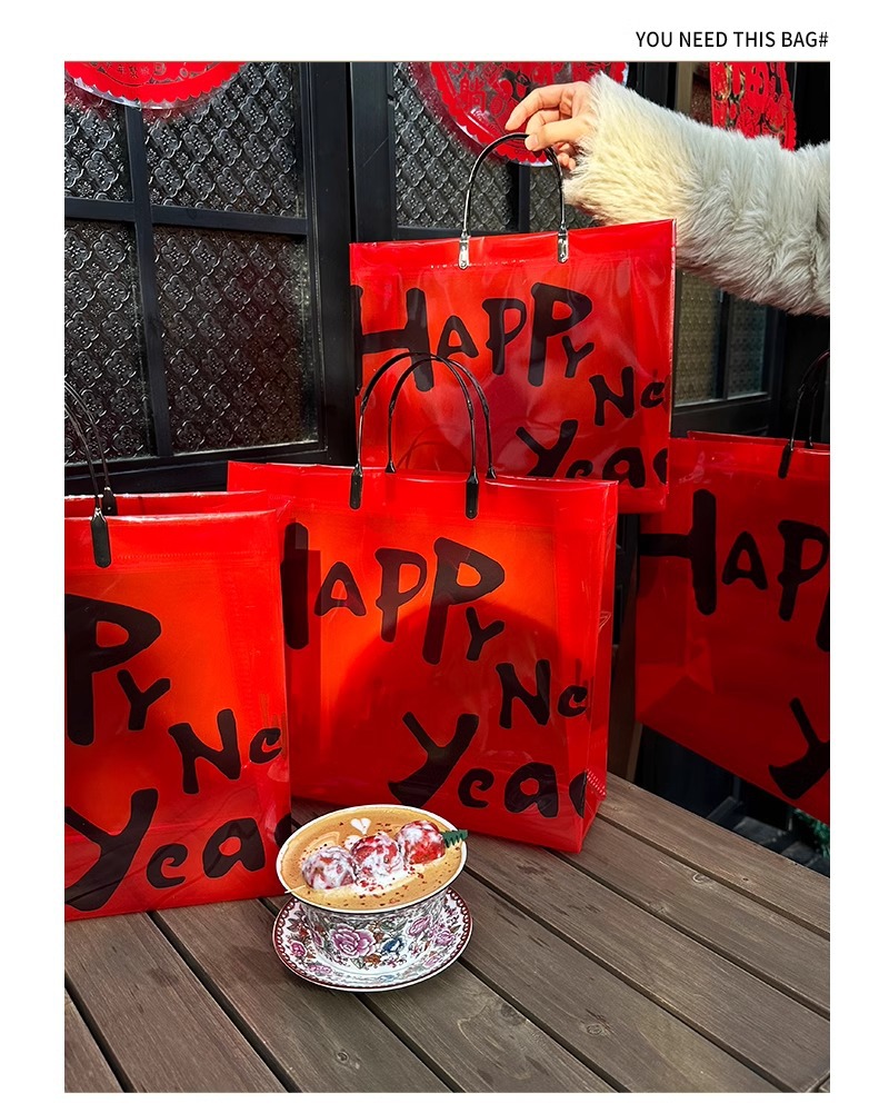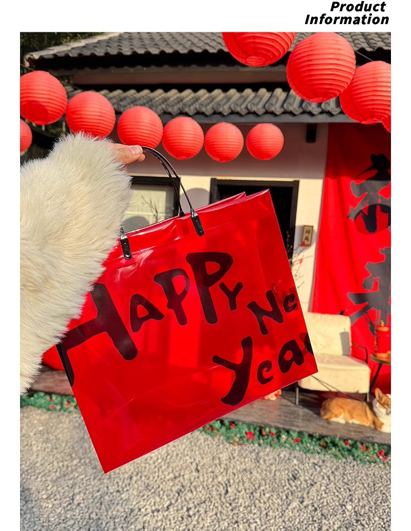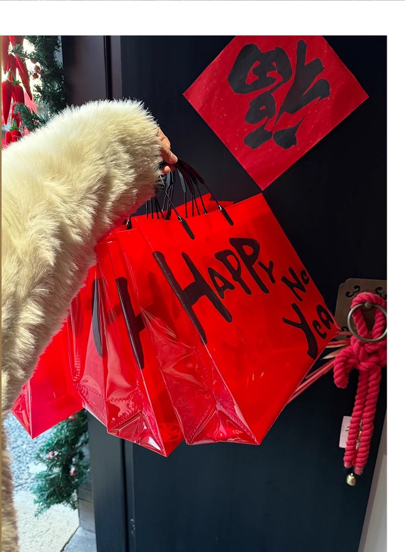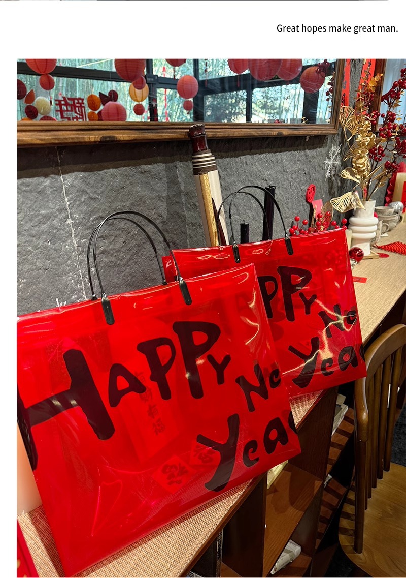 red transparent happy new year; medium size: 32*27*11 cm; 1 piece