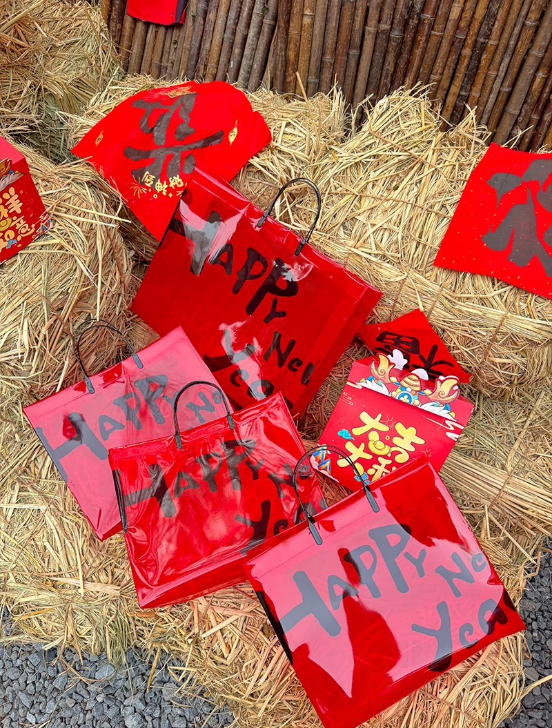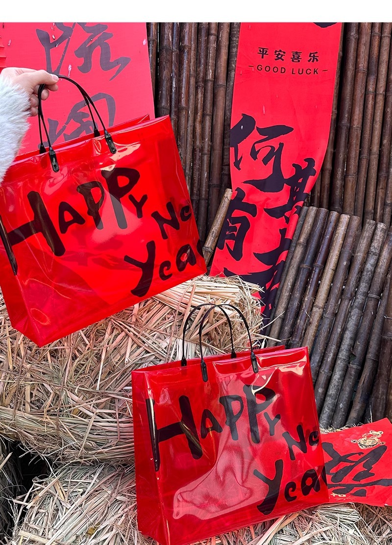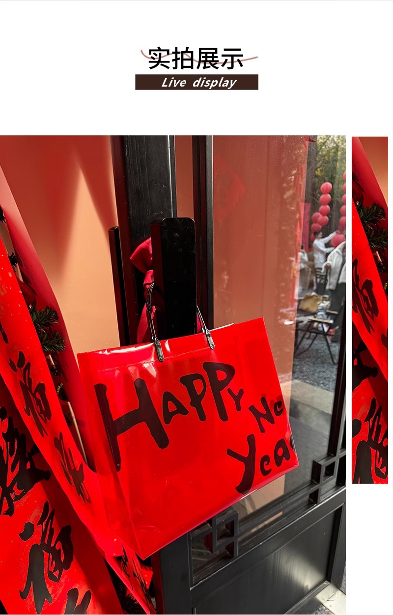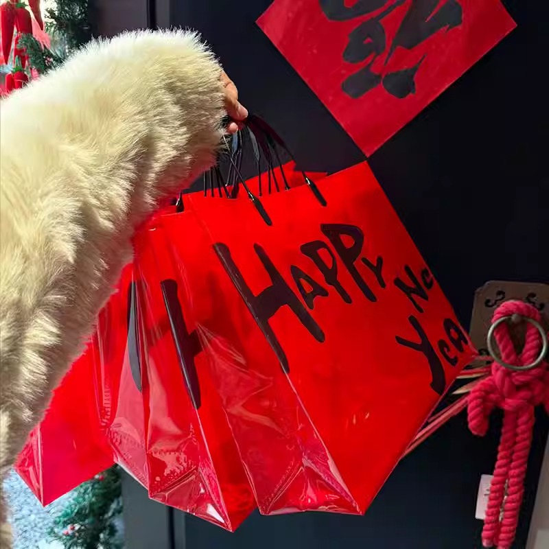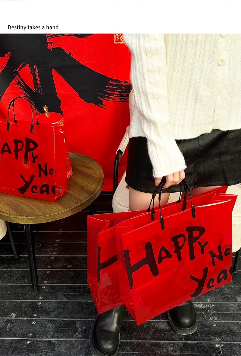 red transparent happy new year; medium size: 32*27*11 cm; 1 piece