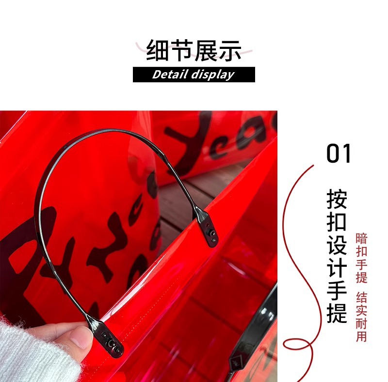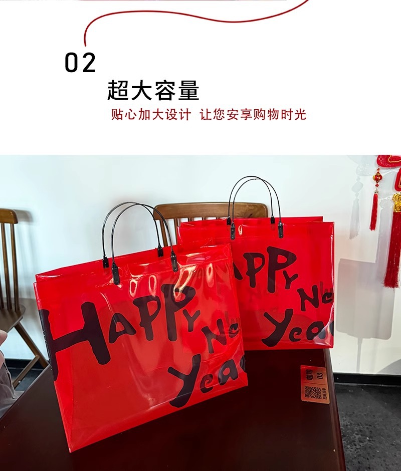 red transparent happy new year; large size: 44*33.5*12 cm; 1 piece
