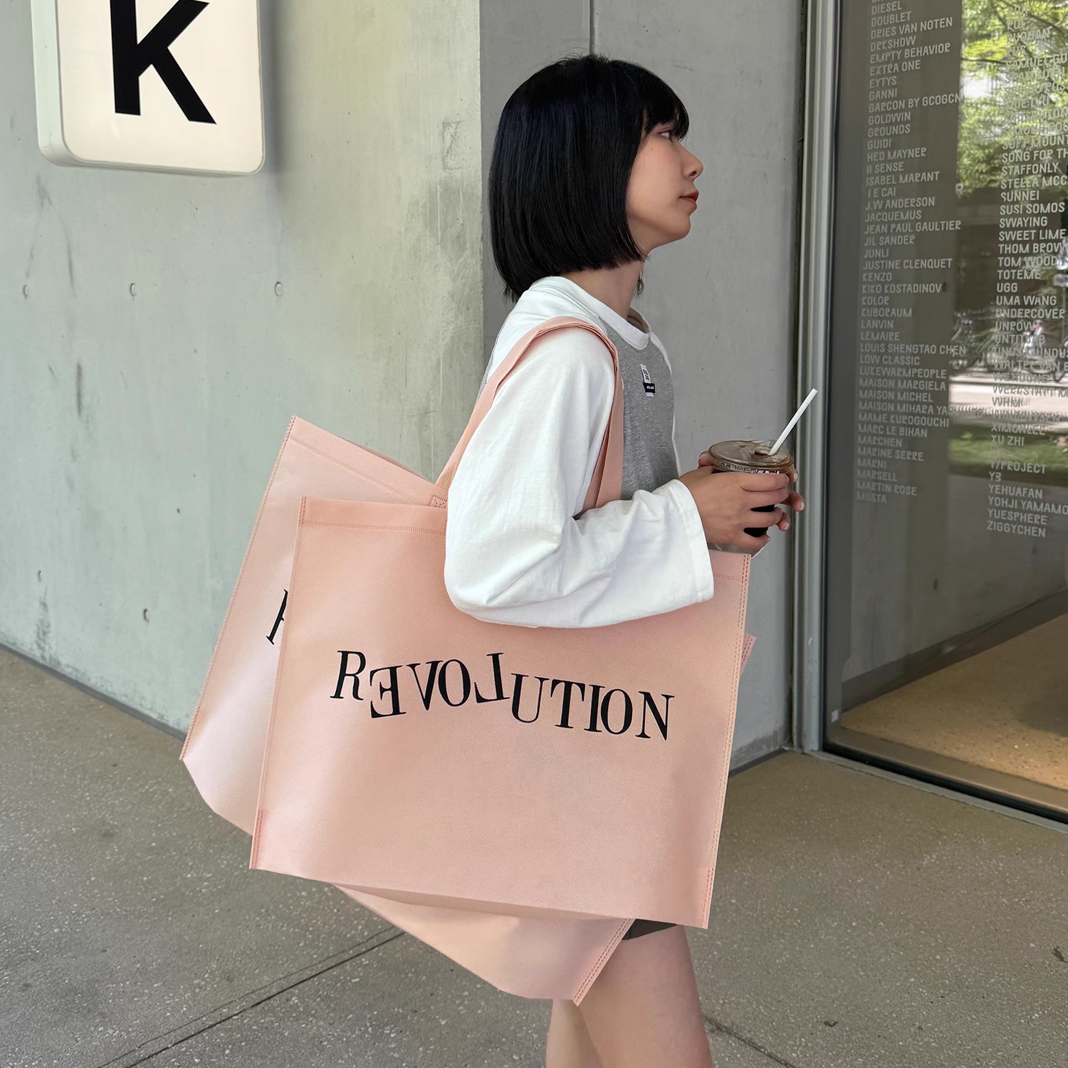 light pink love nonwoven fabric bag; extra large 60*45*14cm; 10 pieces