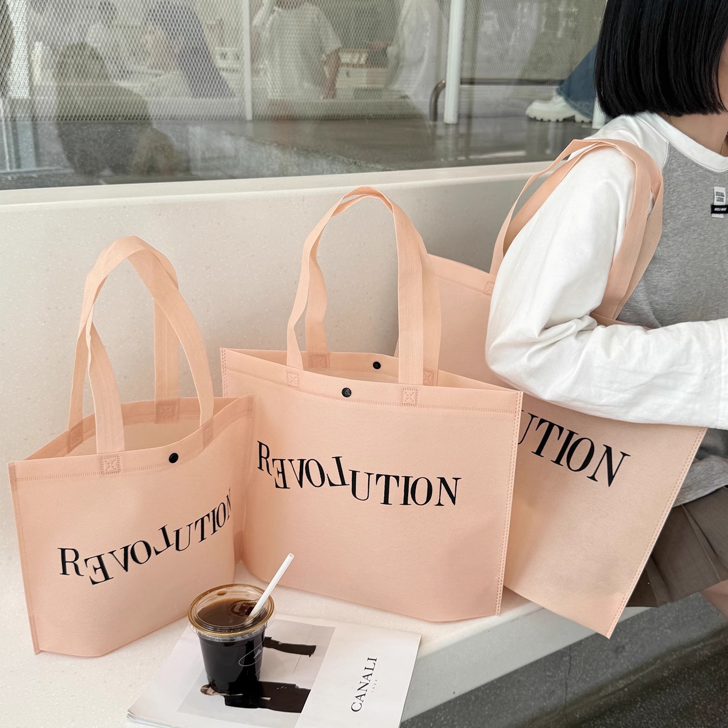 light pink blank nonwoven fabric bag; extra large 60*45*14cm; 10 pieces