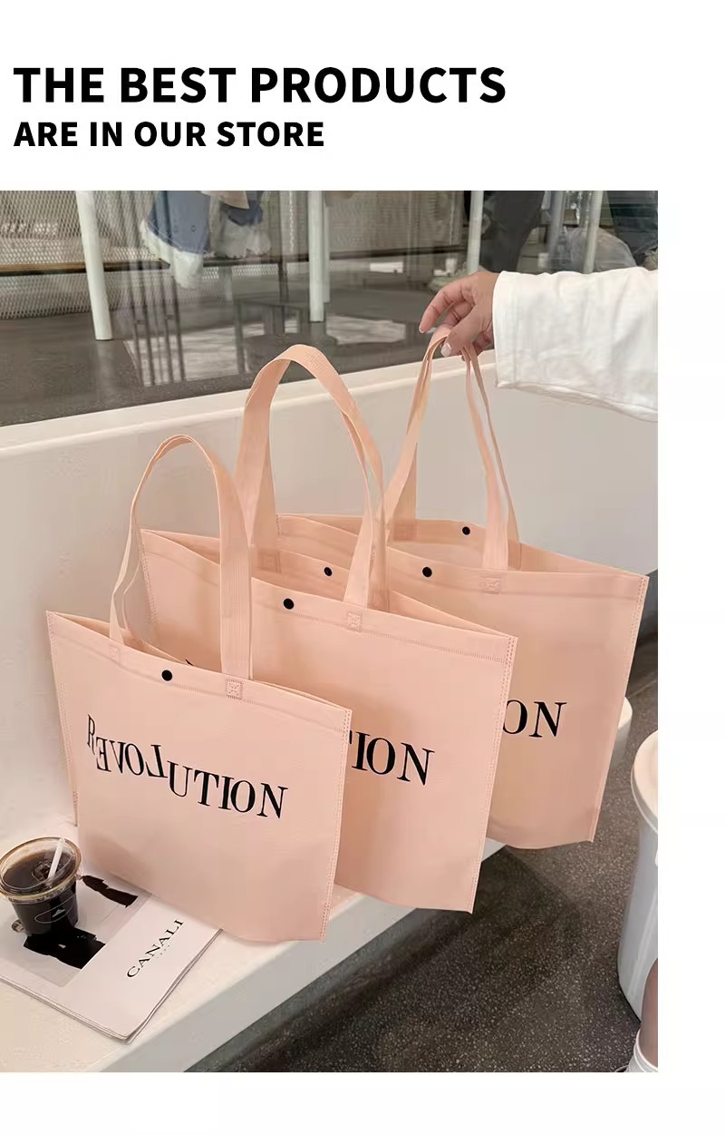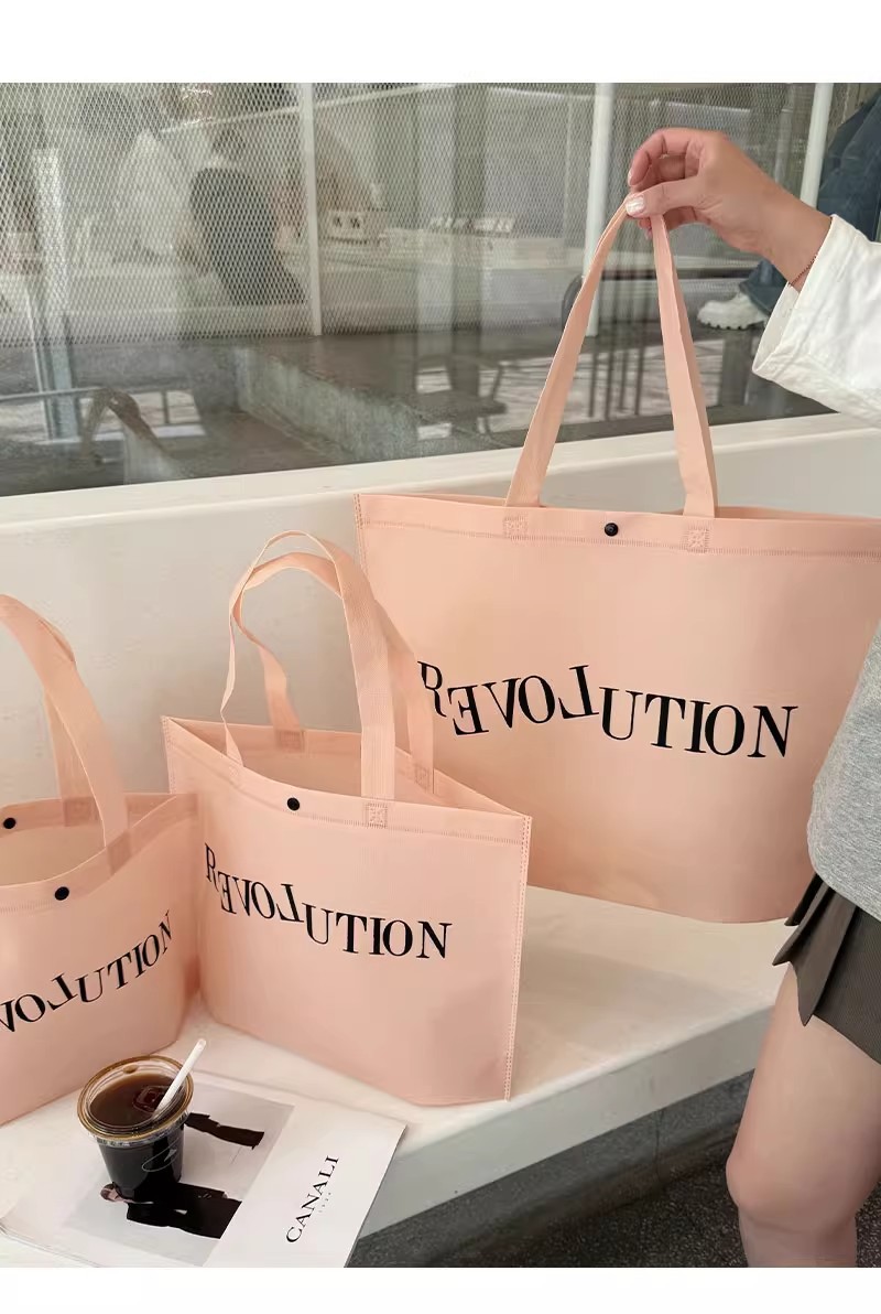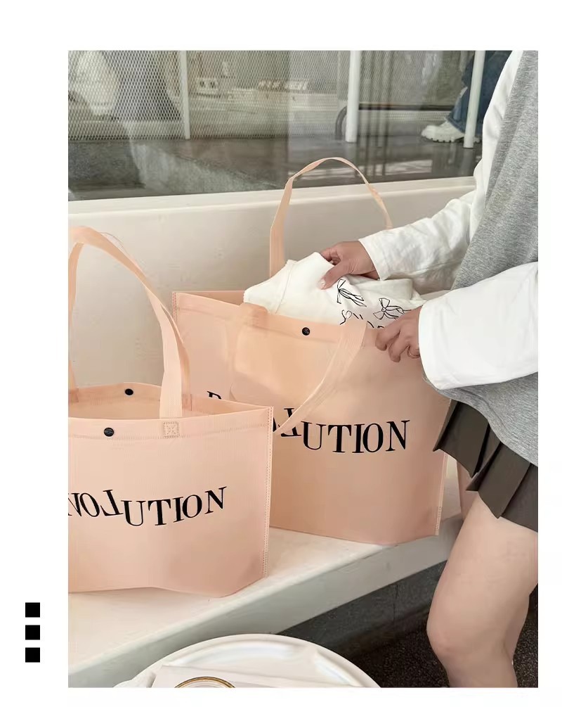 light pink blank nonwoven fabric bag; medium size 34*26*10cm; 50 pieces