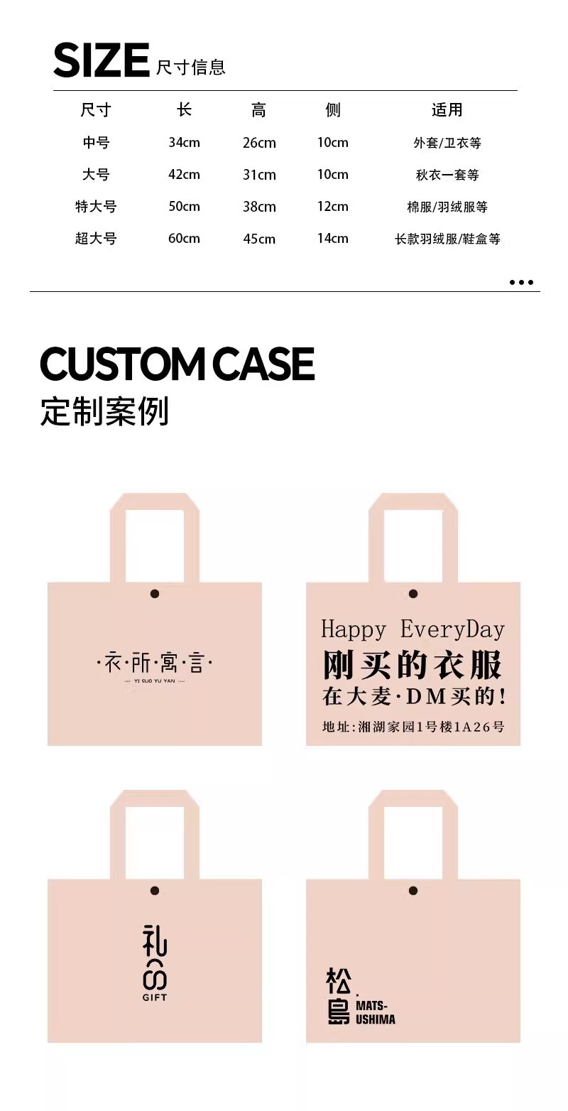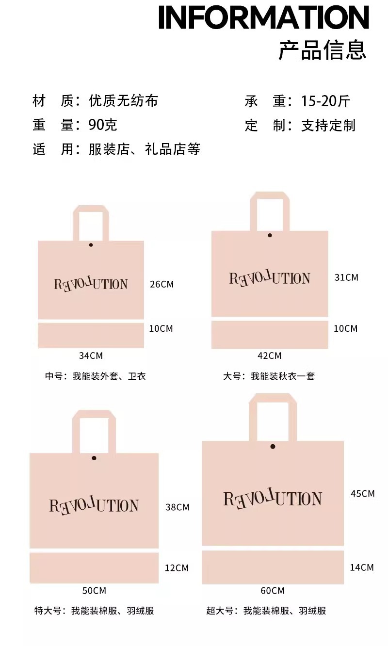 light pink blank nonwoven fabric bag; extra large 50*38*12cm; 50 pieces