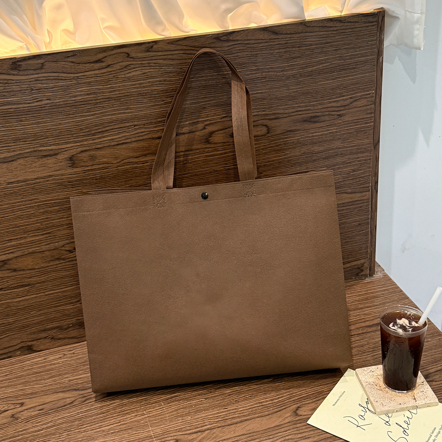 brown blank non-woven bag; large size 43*32*10cm; 1 piece