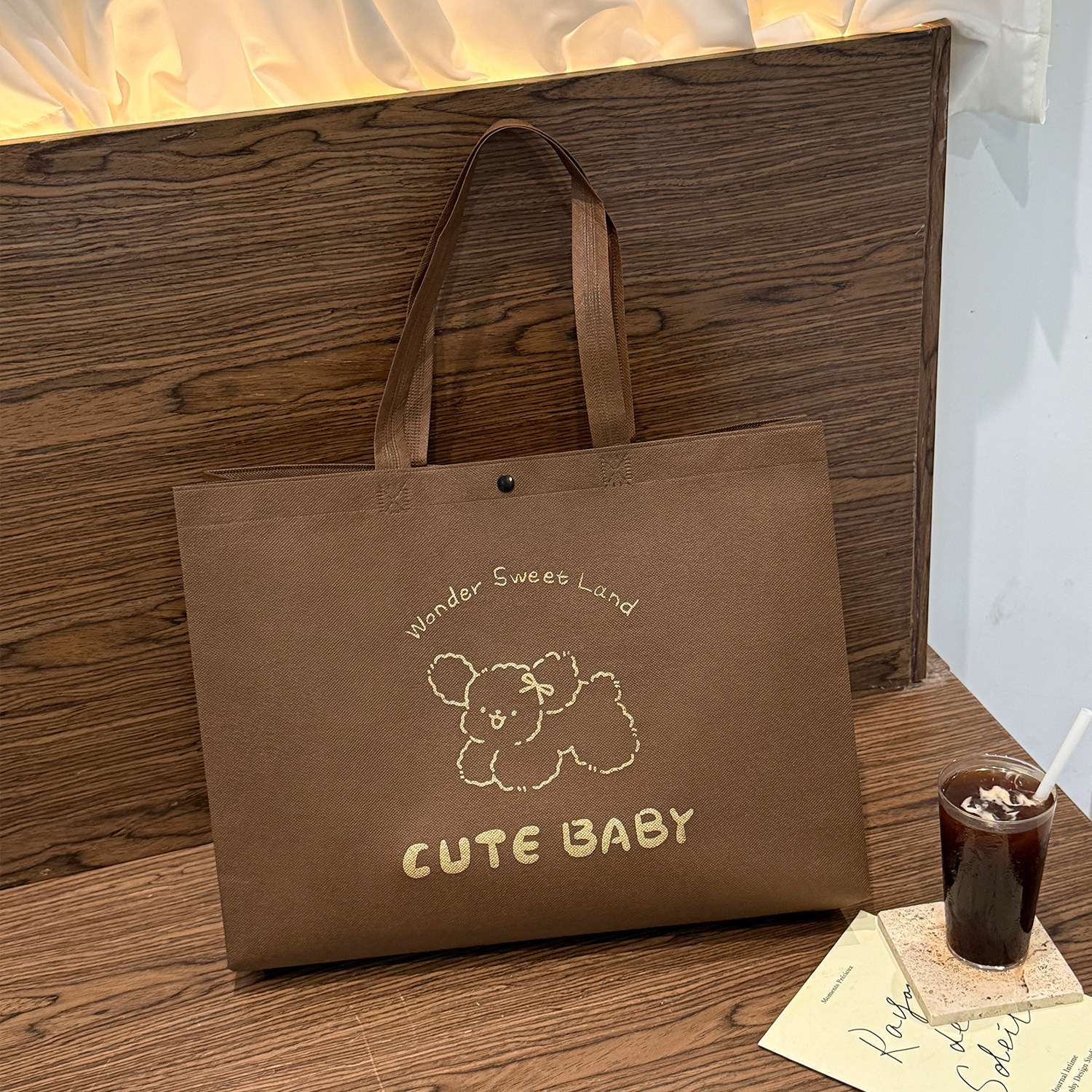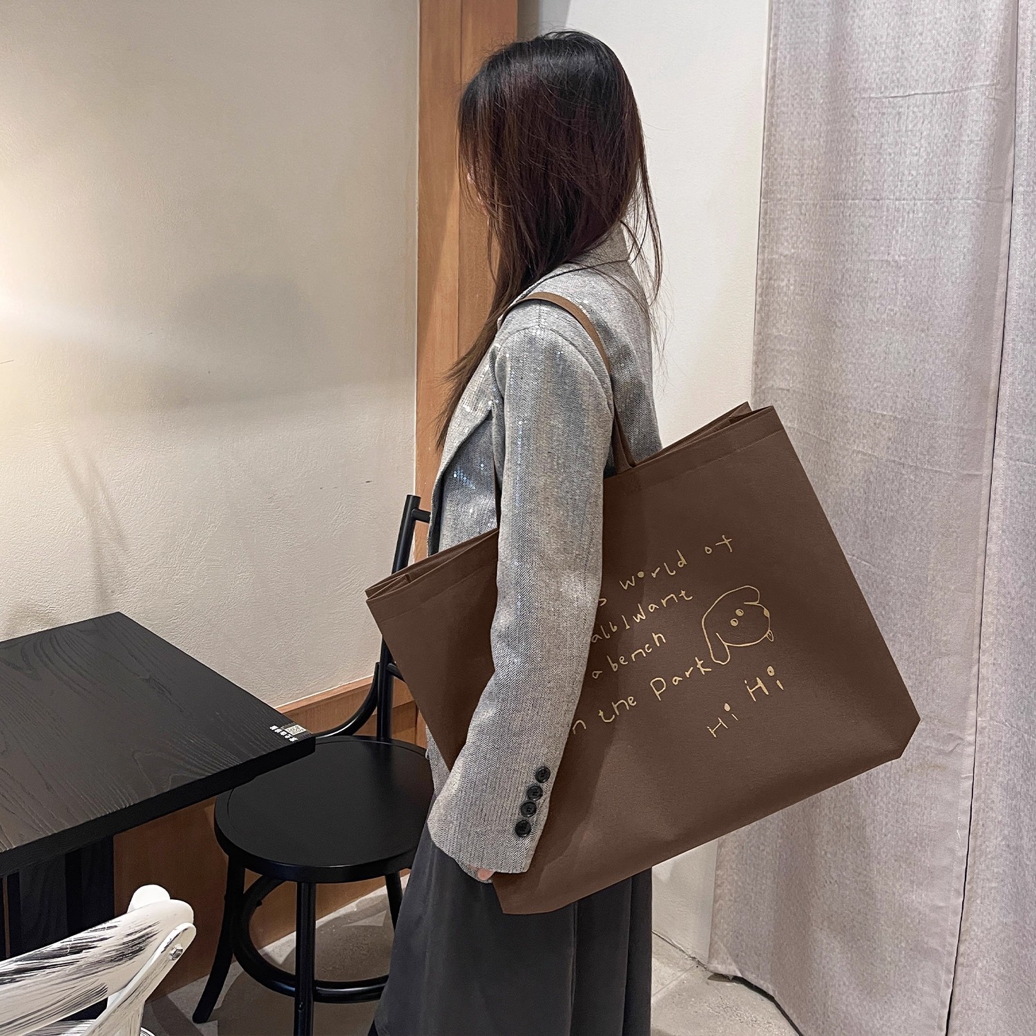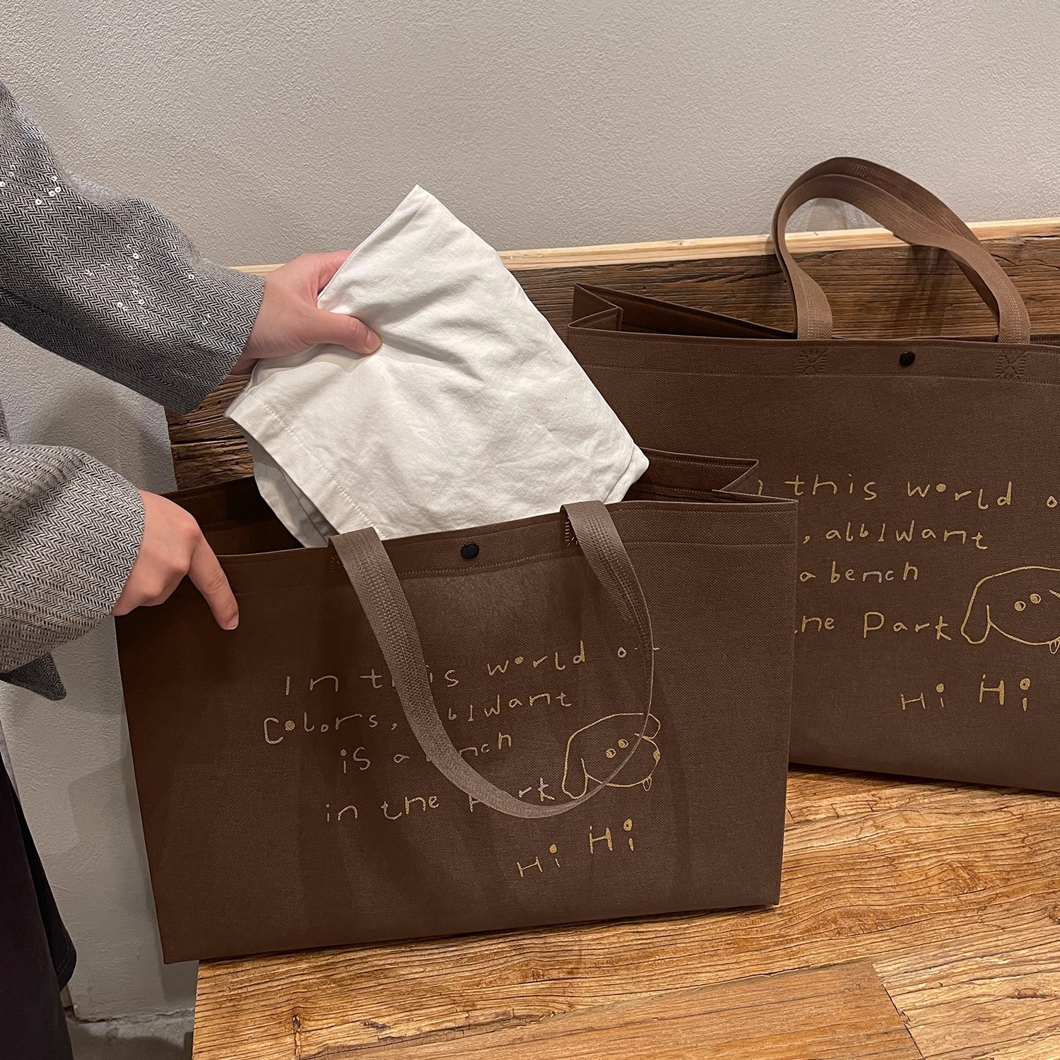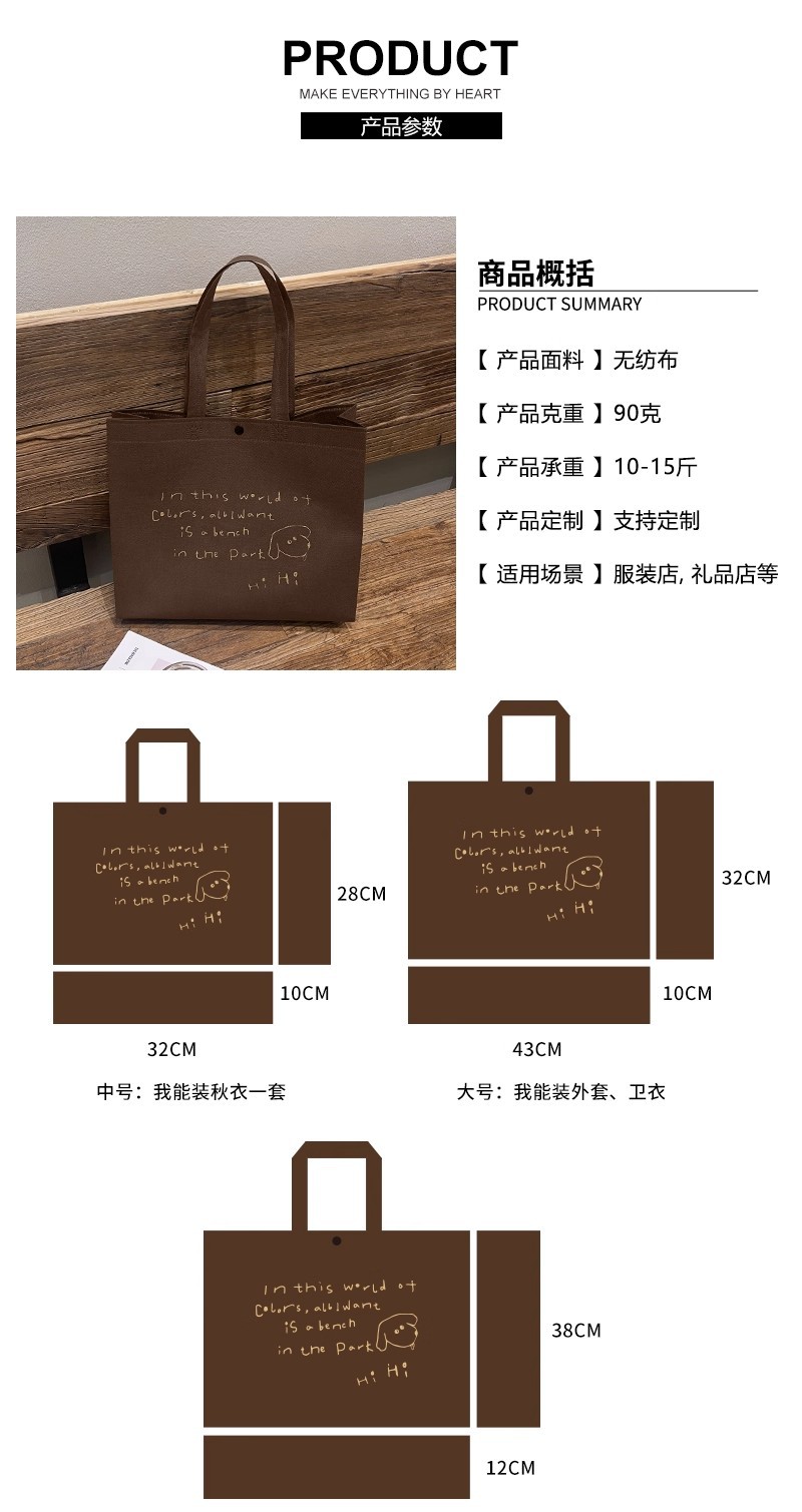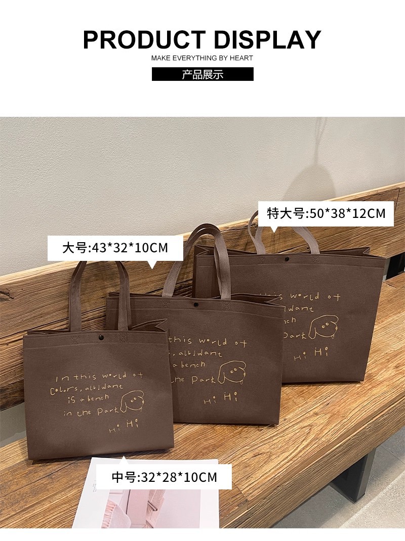 brown hihi non-woven bag; large size 43*32*10cm; 1 piece