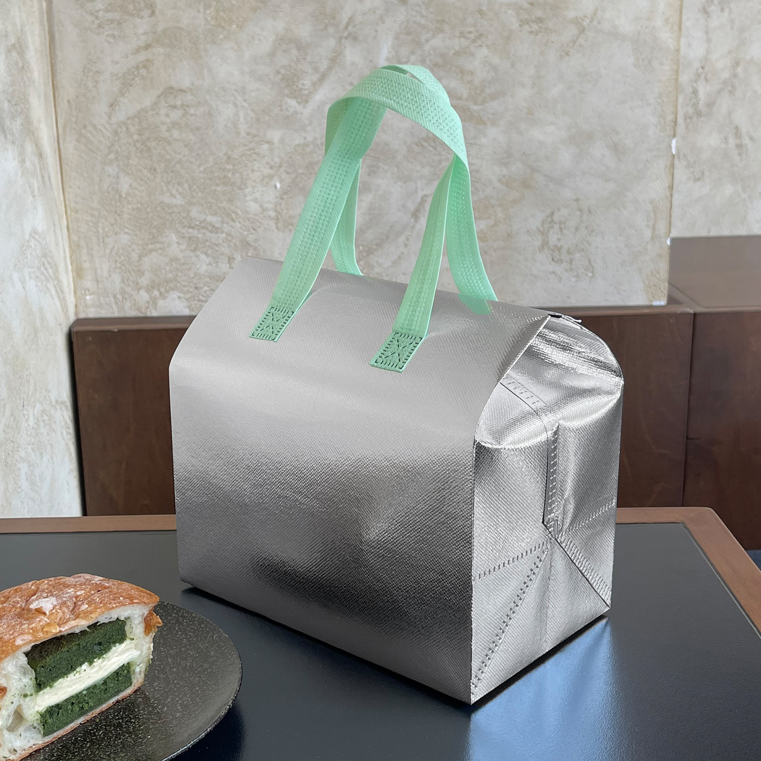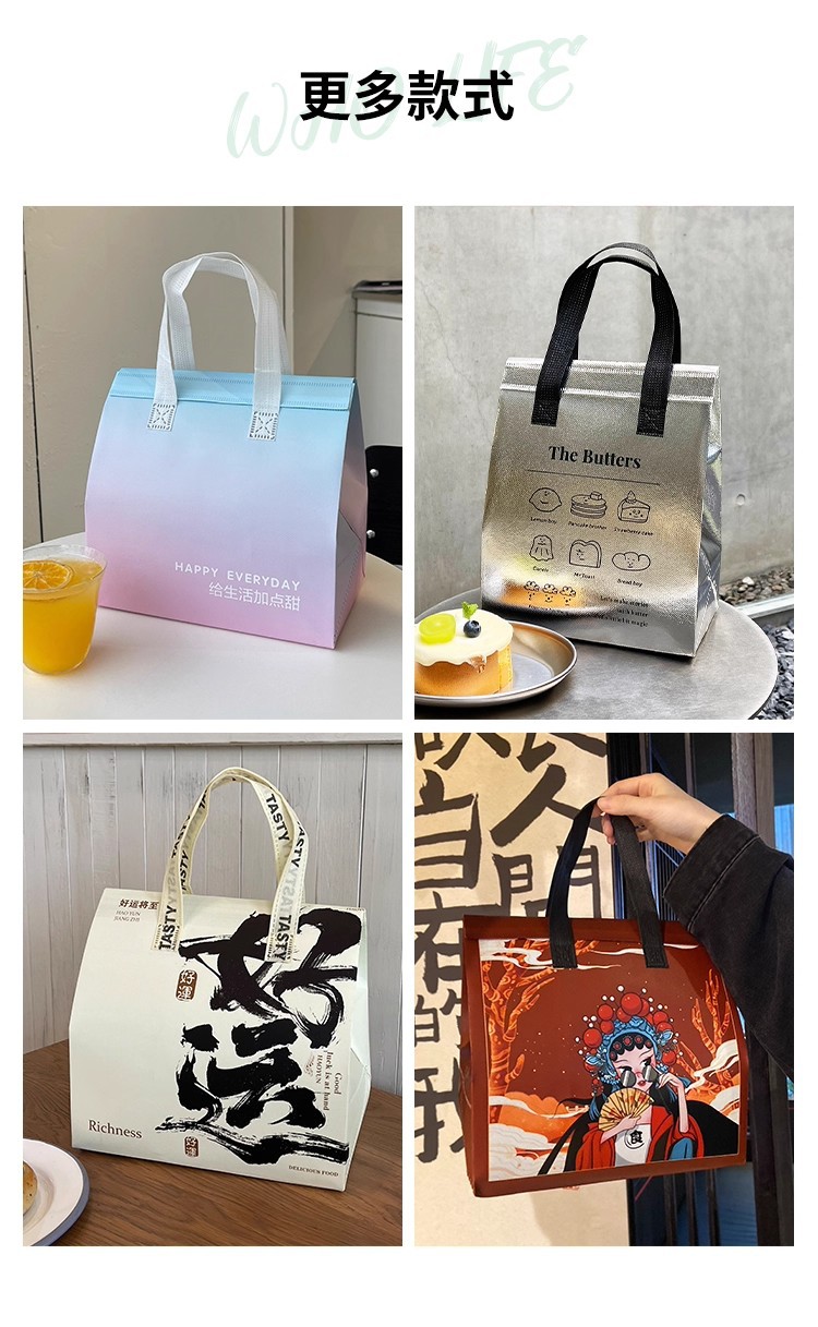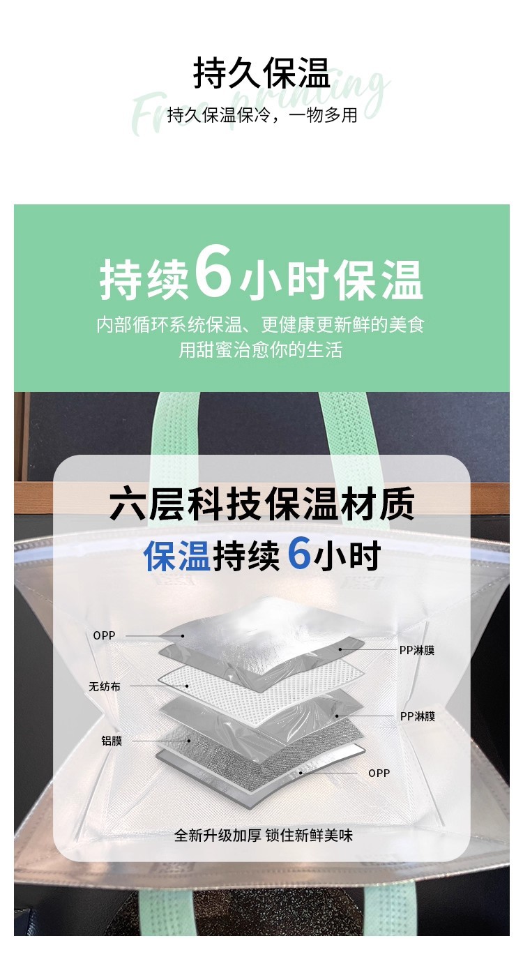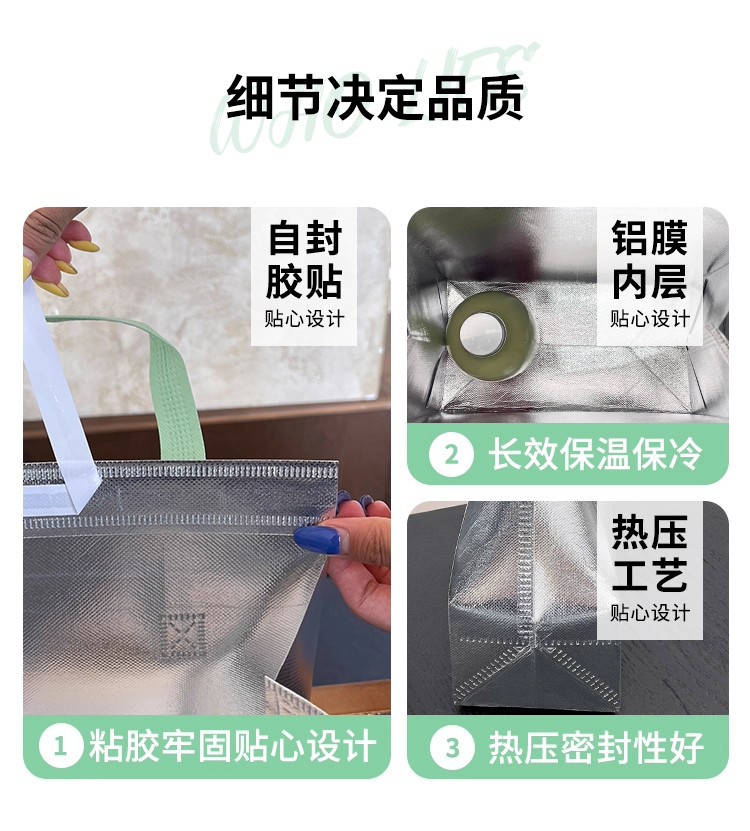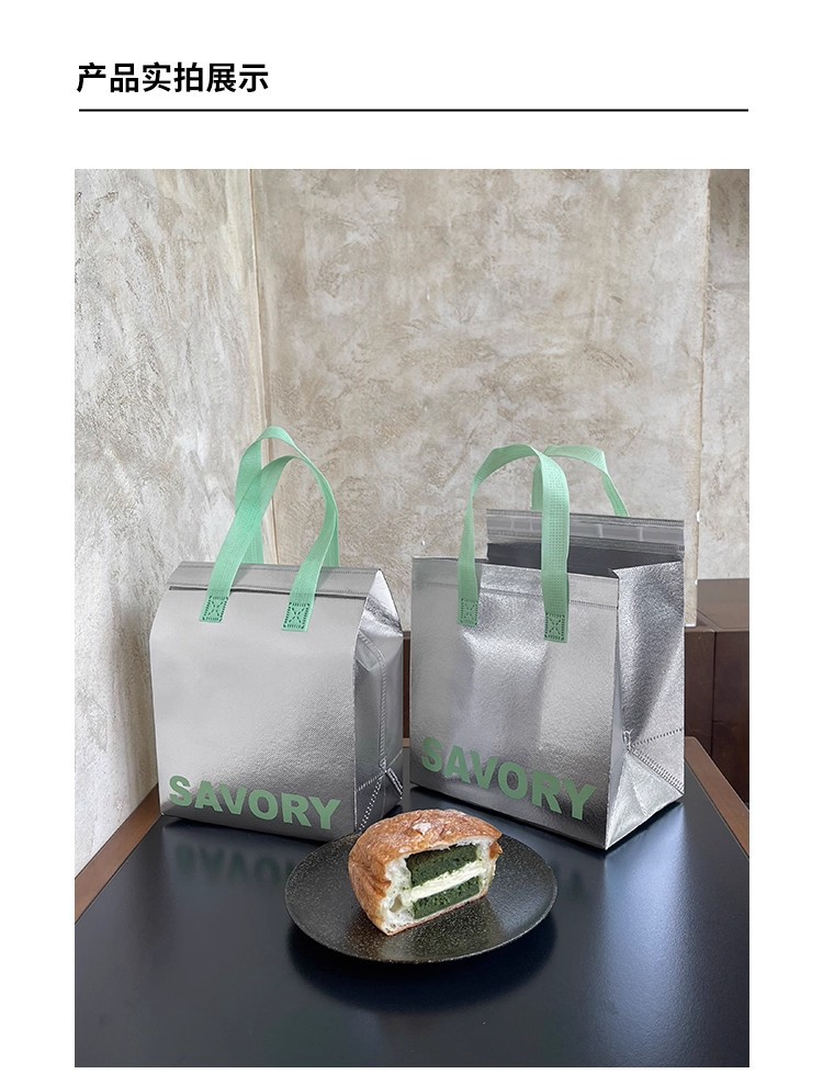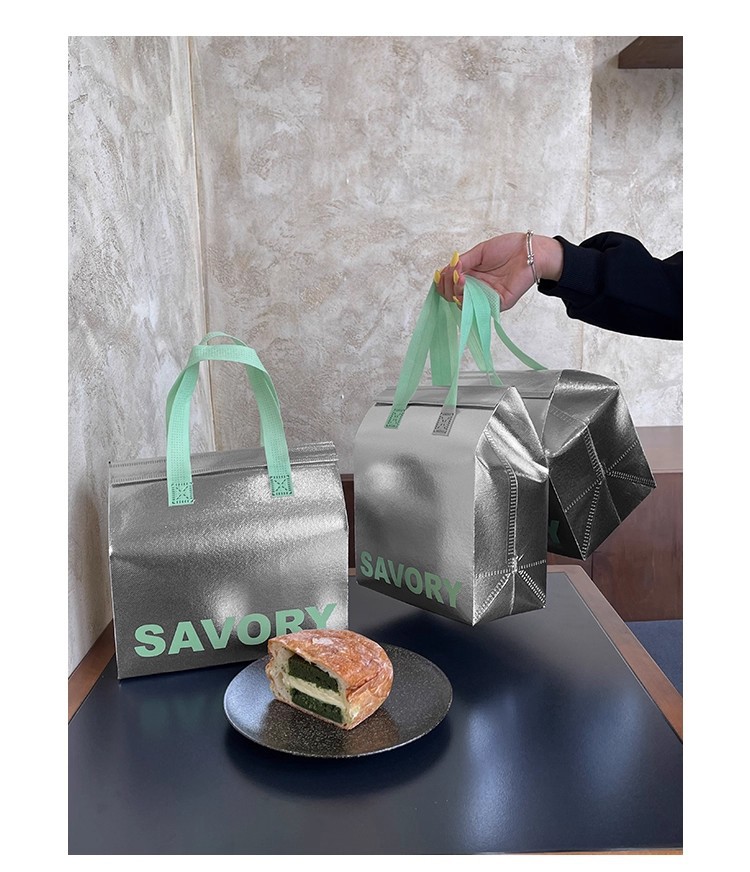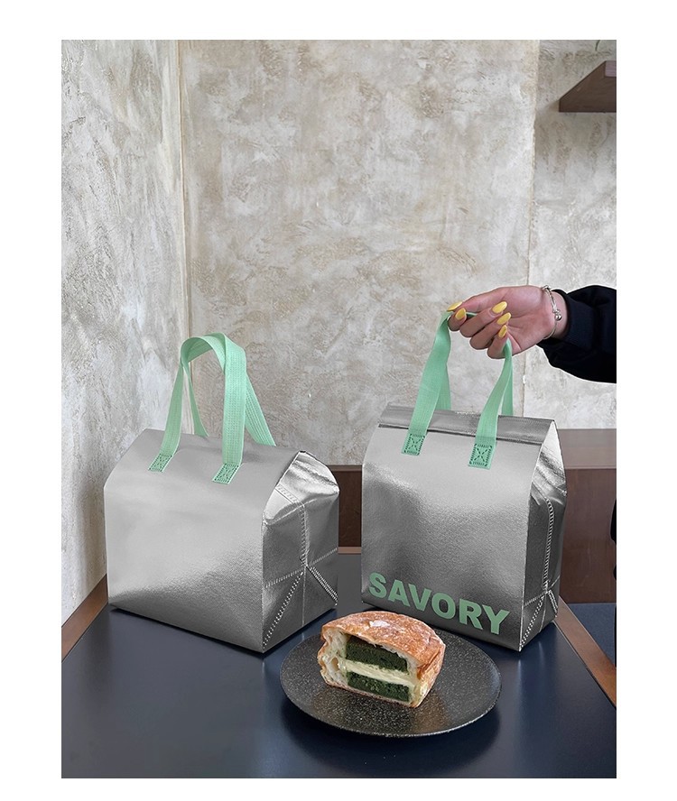 green portable silver polyester glossy film thermal bag; medium size: 24*24*15cm; 1 piece