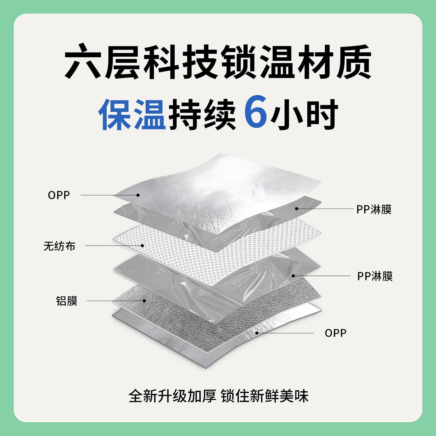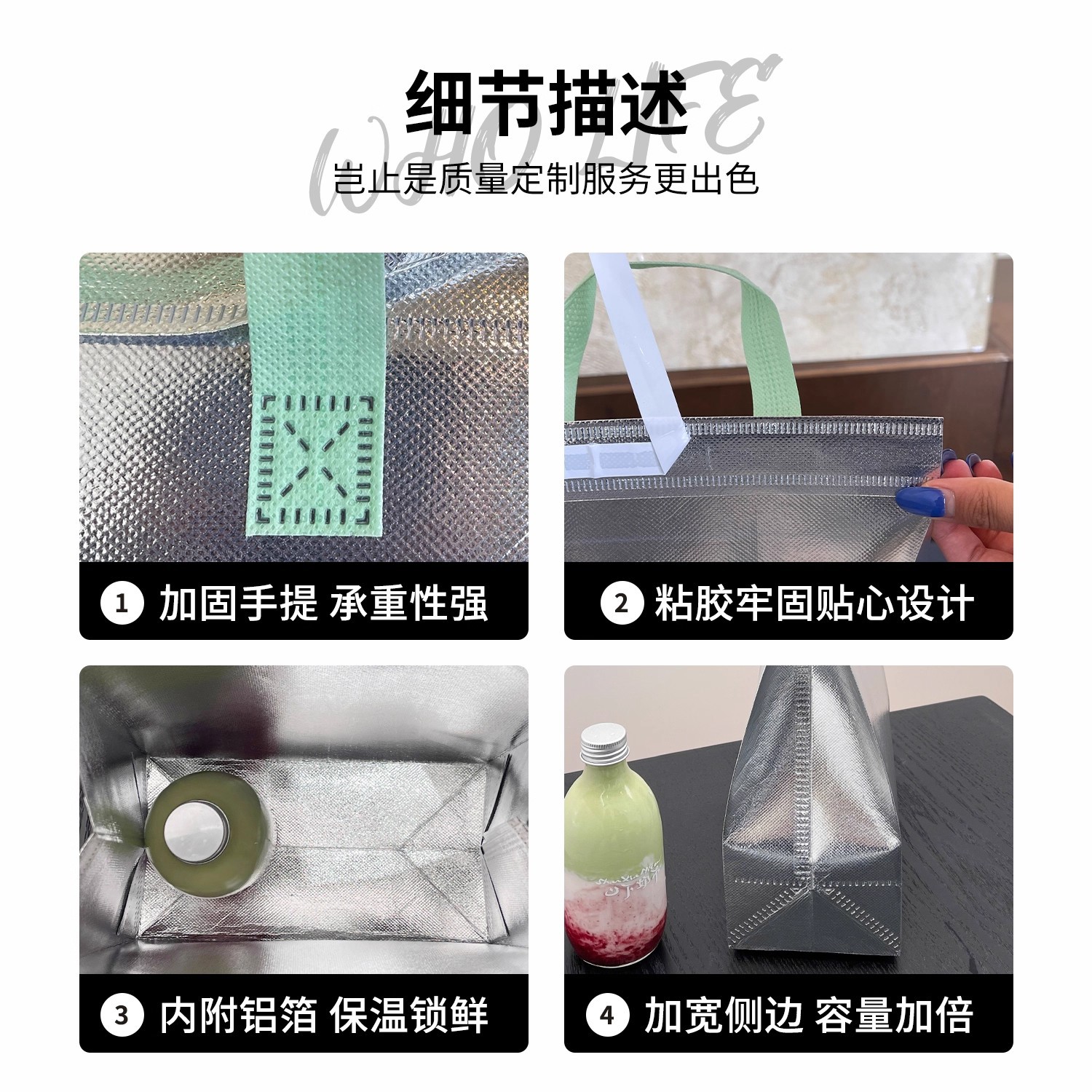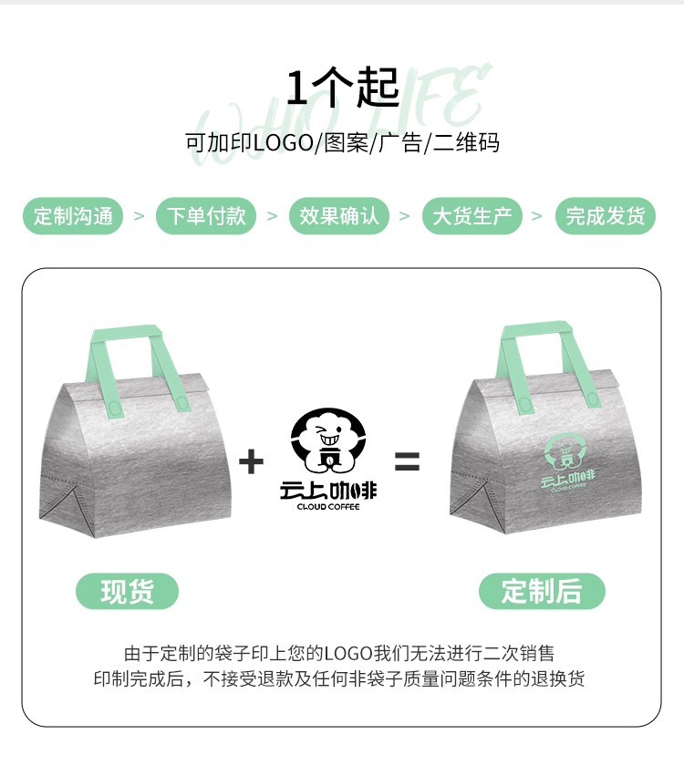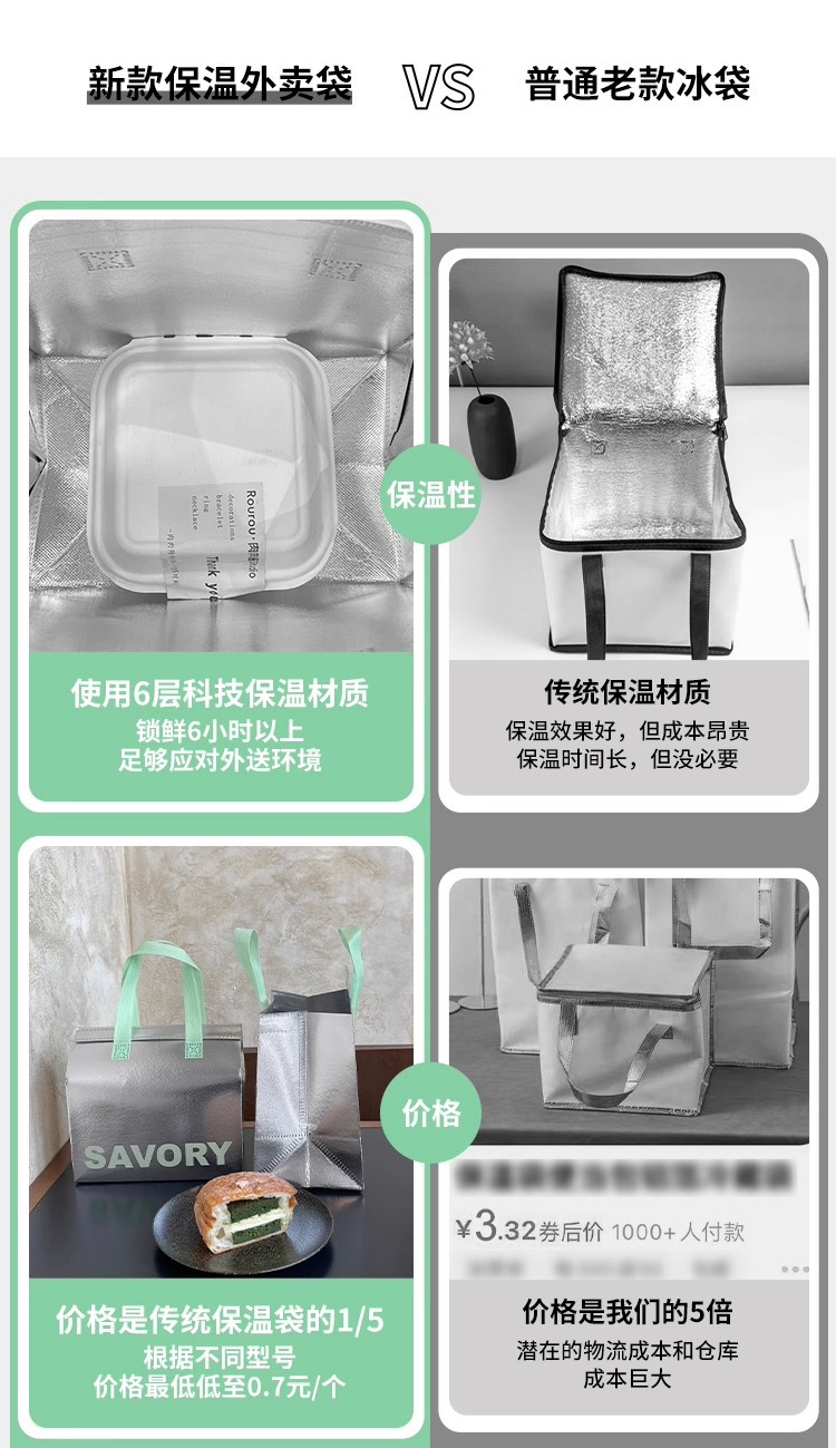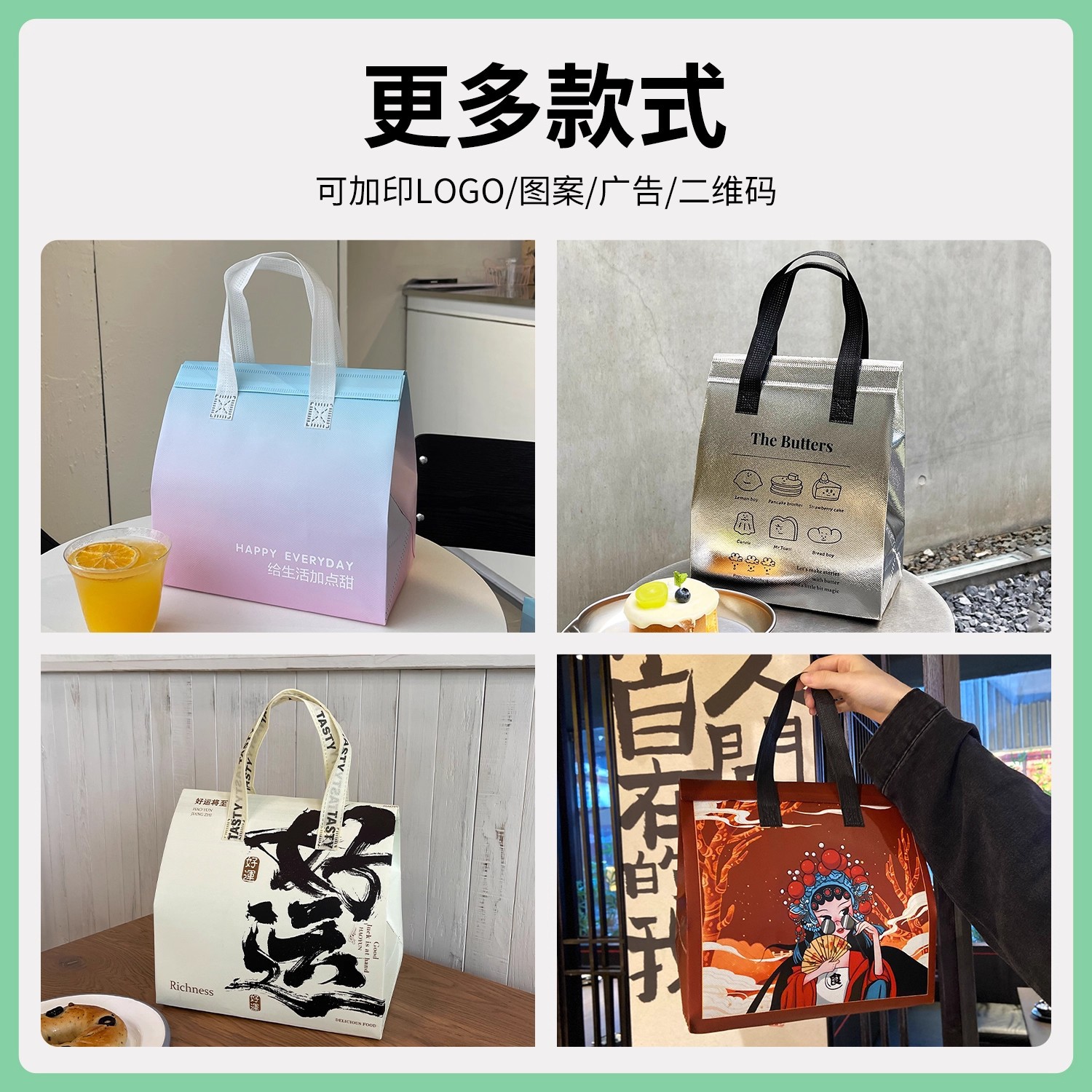green portable silver polyester glossy film thermal bag; medium size: 24*24*15cm; 1 piece