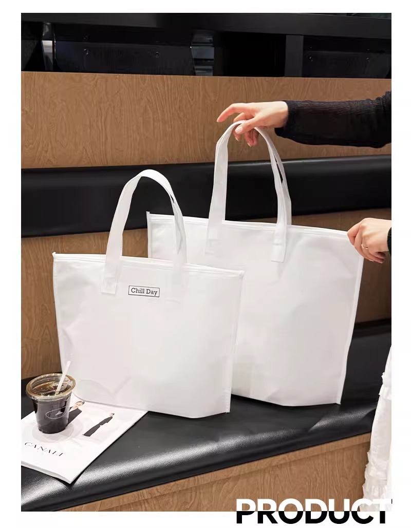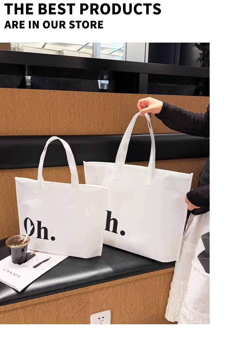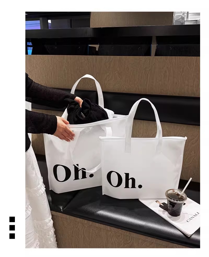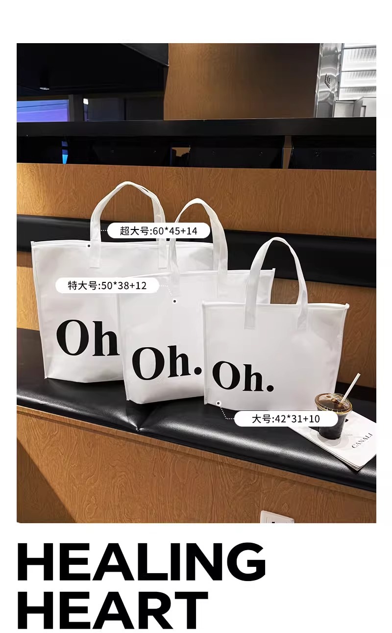 white oh zippered tote bag; large size 42*31*10 cm; 1 piece