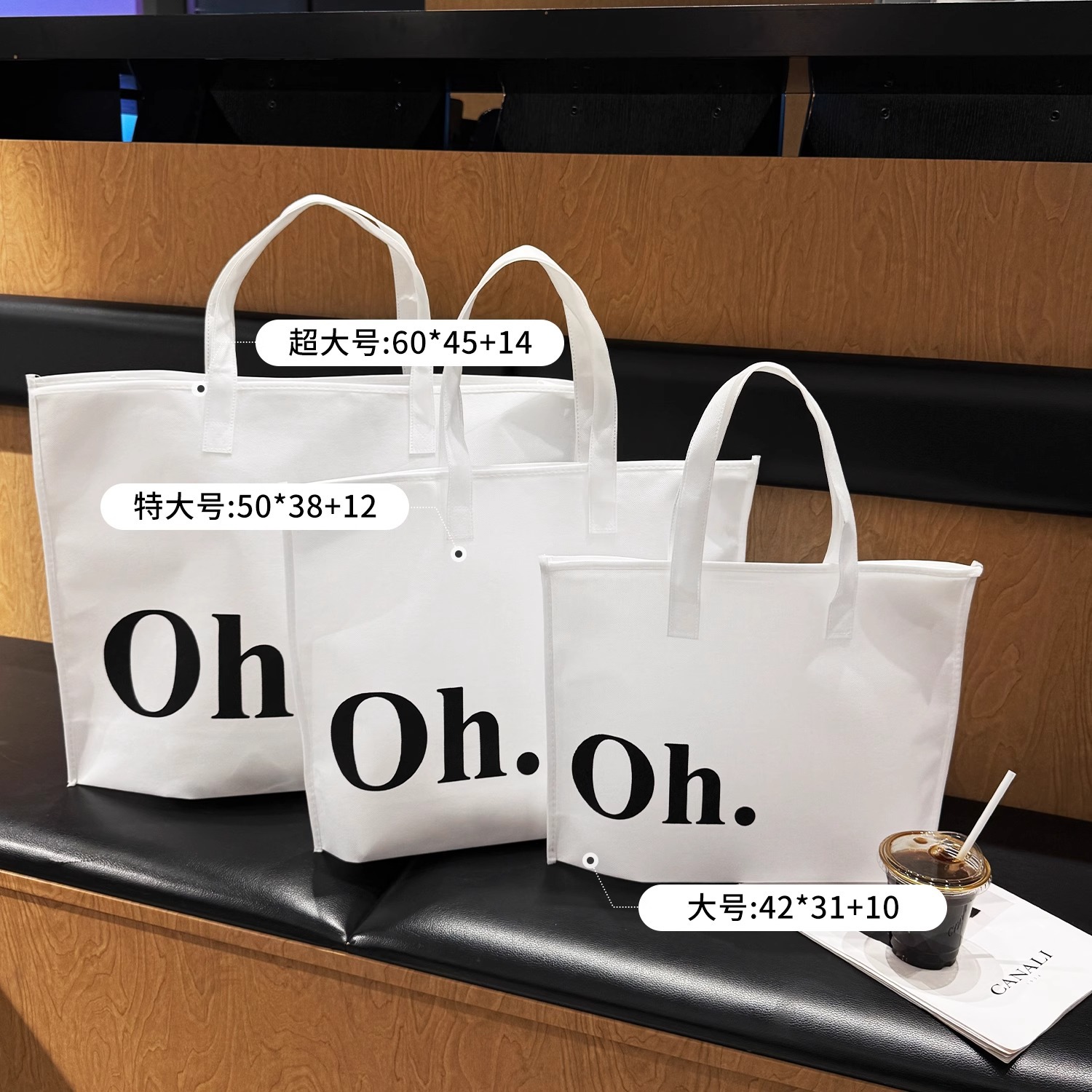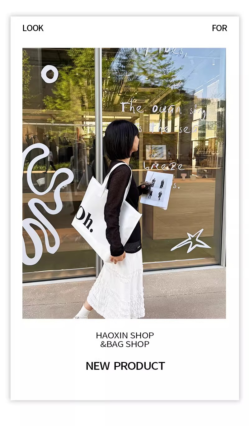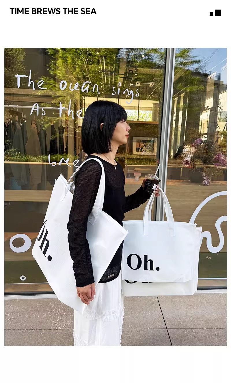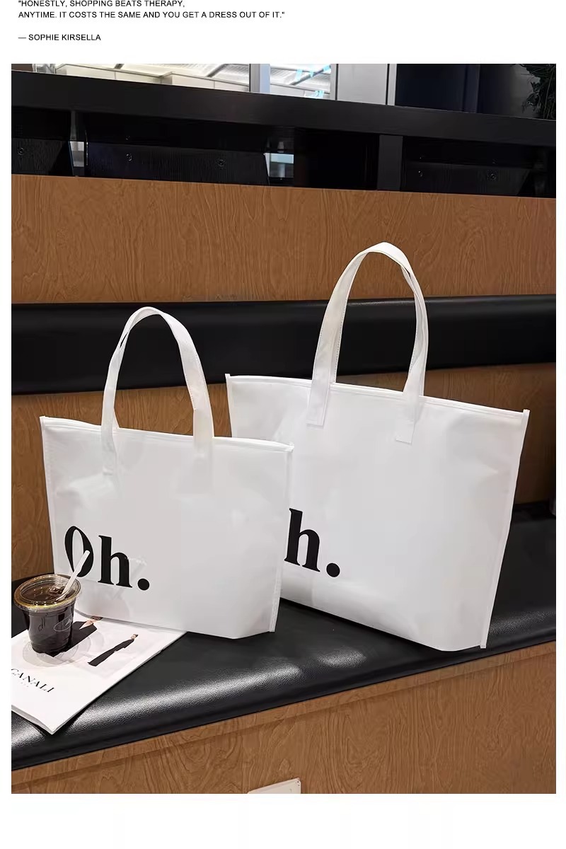 white oh zippered tote bag; large size 42*31*10 cm; 1 piece
