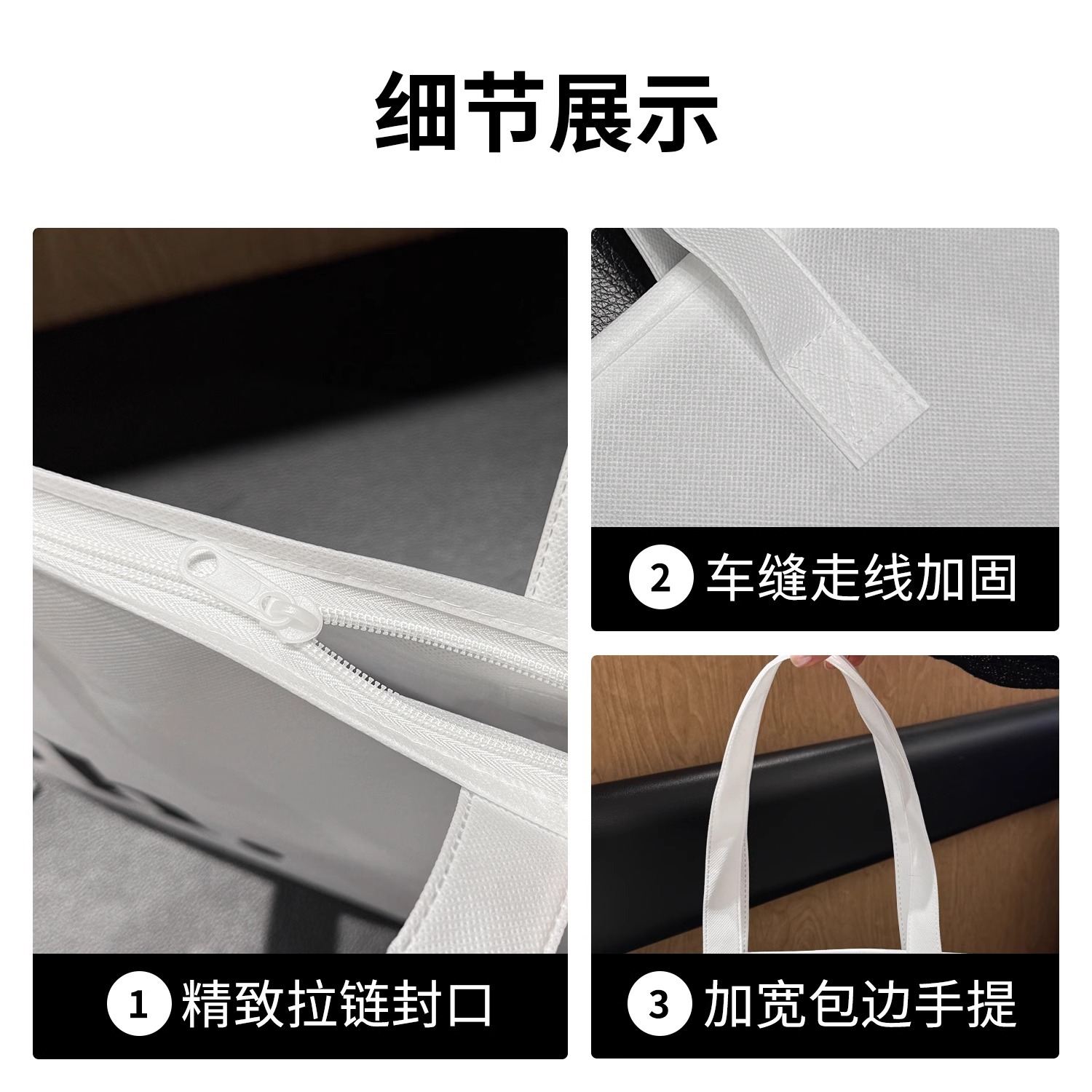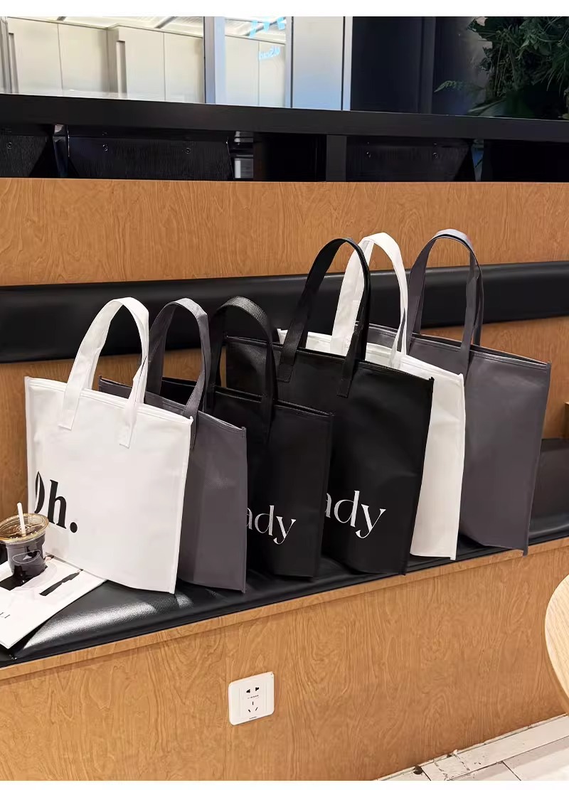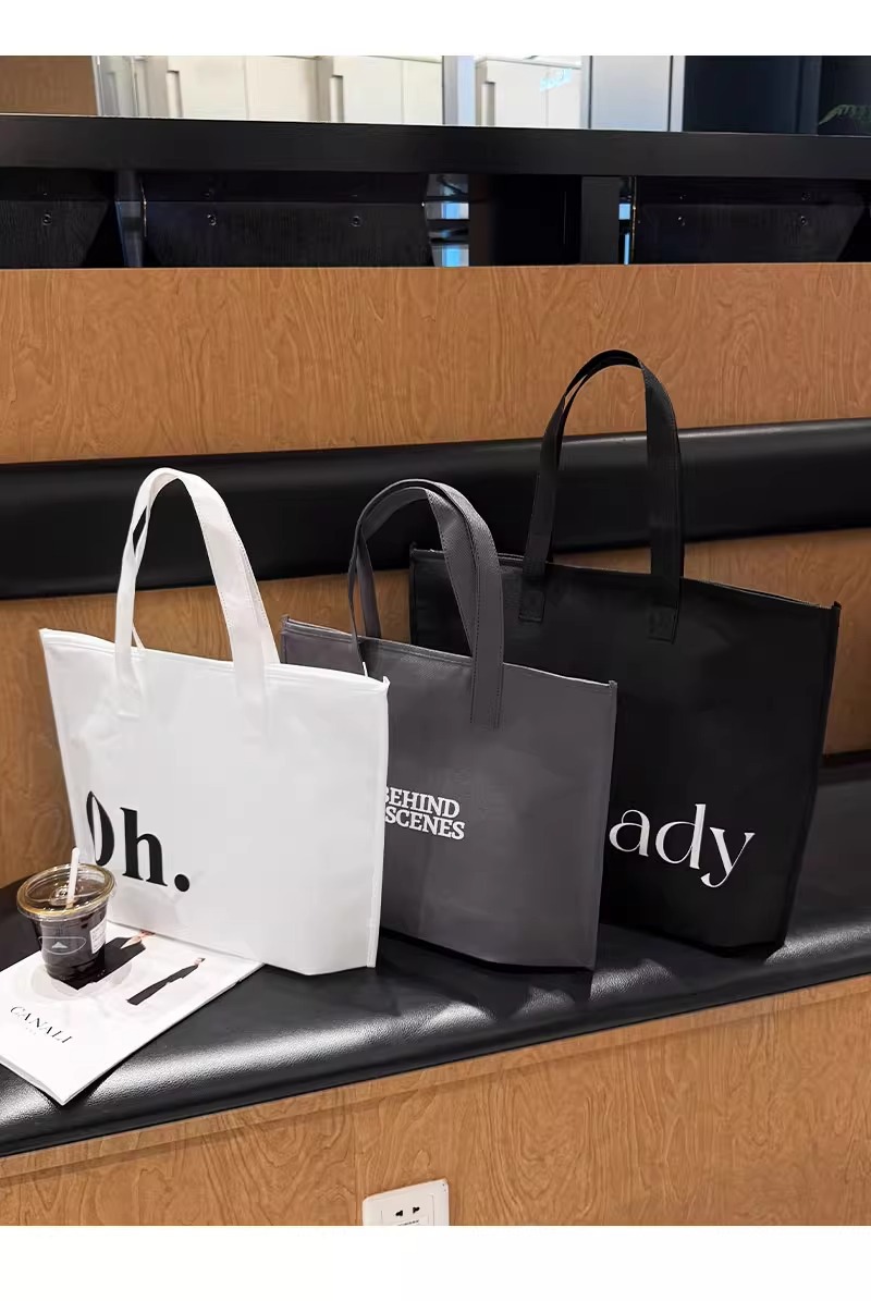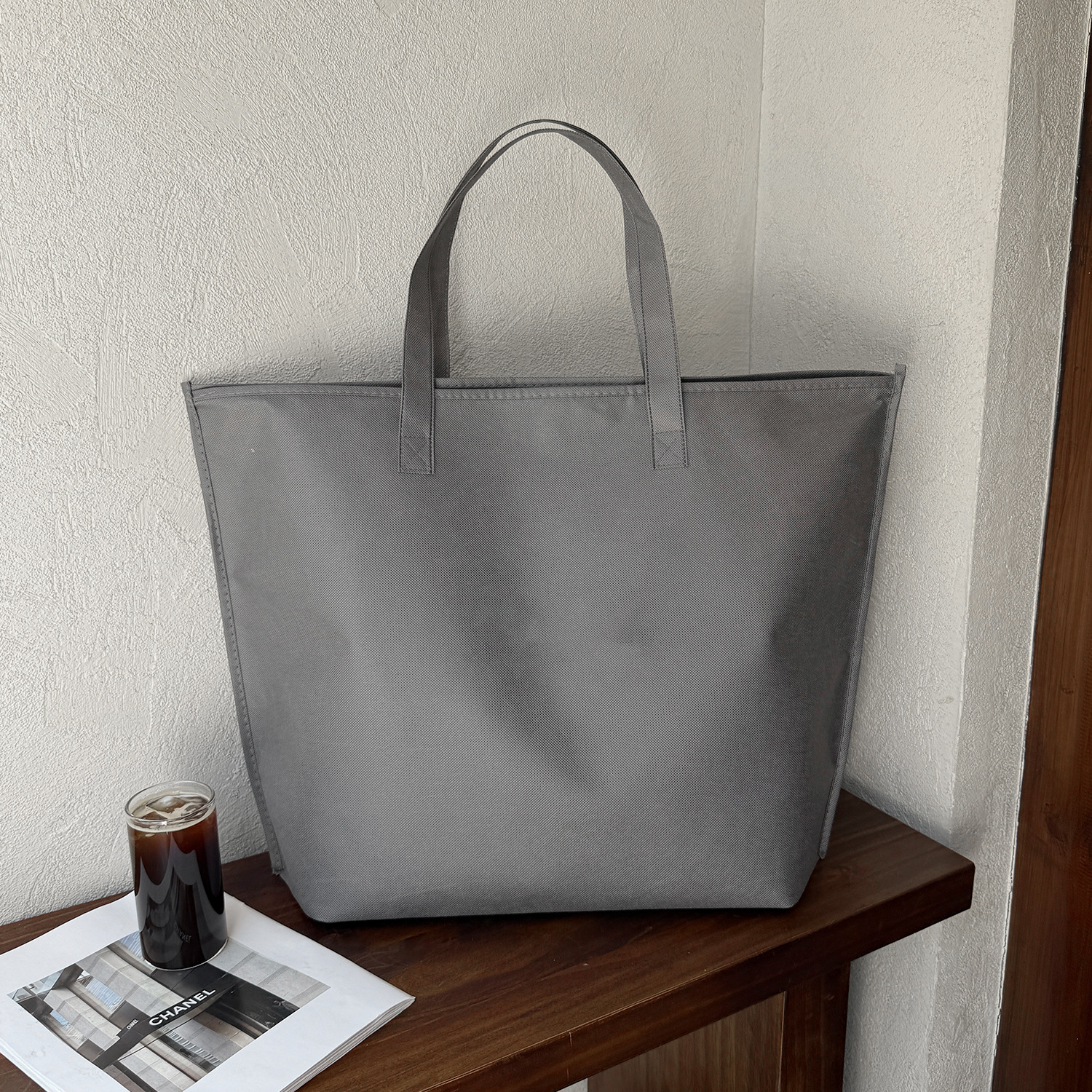 gray non-woven tote bag with a zipper; large size, 42 x 31 x 10 cm; 1 piece