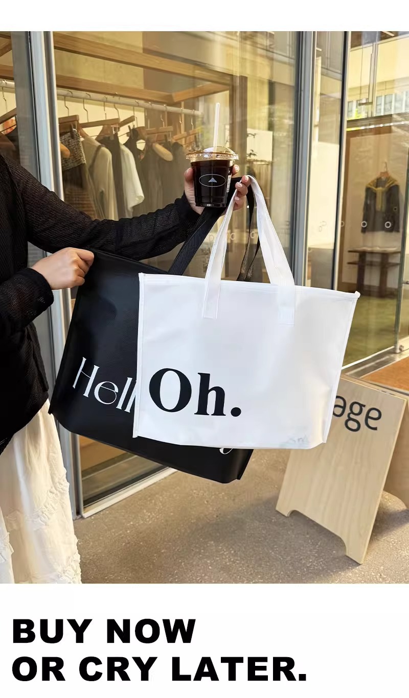 black hello zippered tote bag; extra-large size 60*45*14 cm; 1 piece
