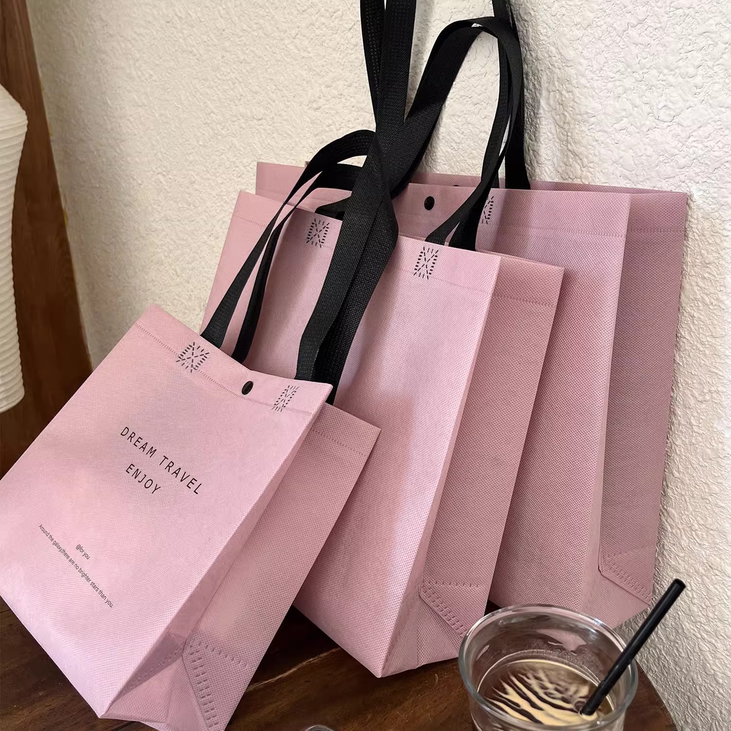 pink-purple non-woven shoulder bag style; small size 25*23*10; 50 pieces