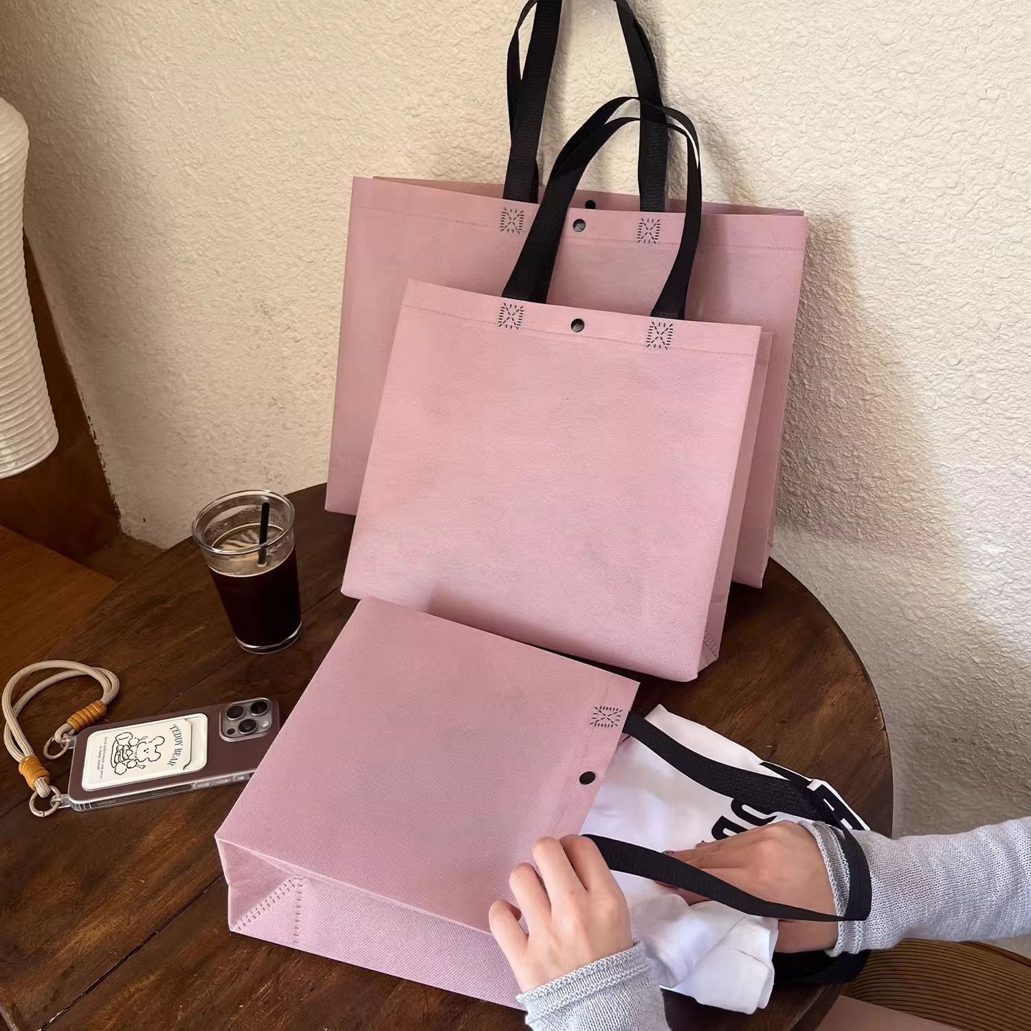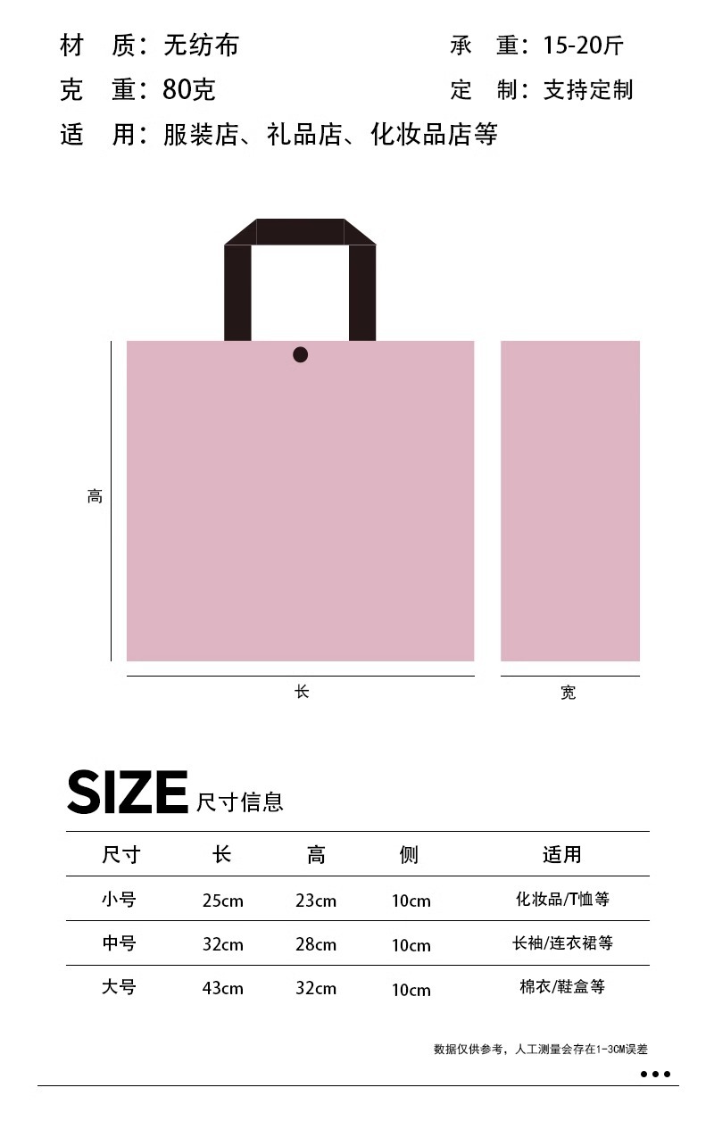 pink-purple non-woven shoulder bag; medium size 32*28*10; 50 pieces