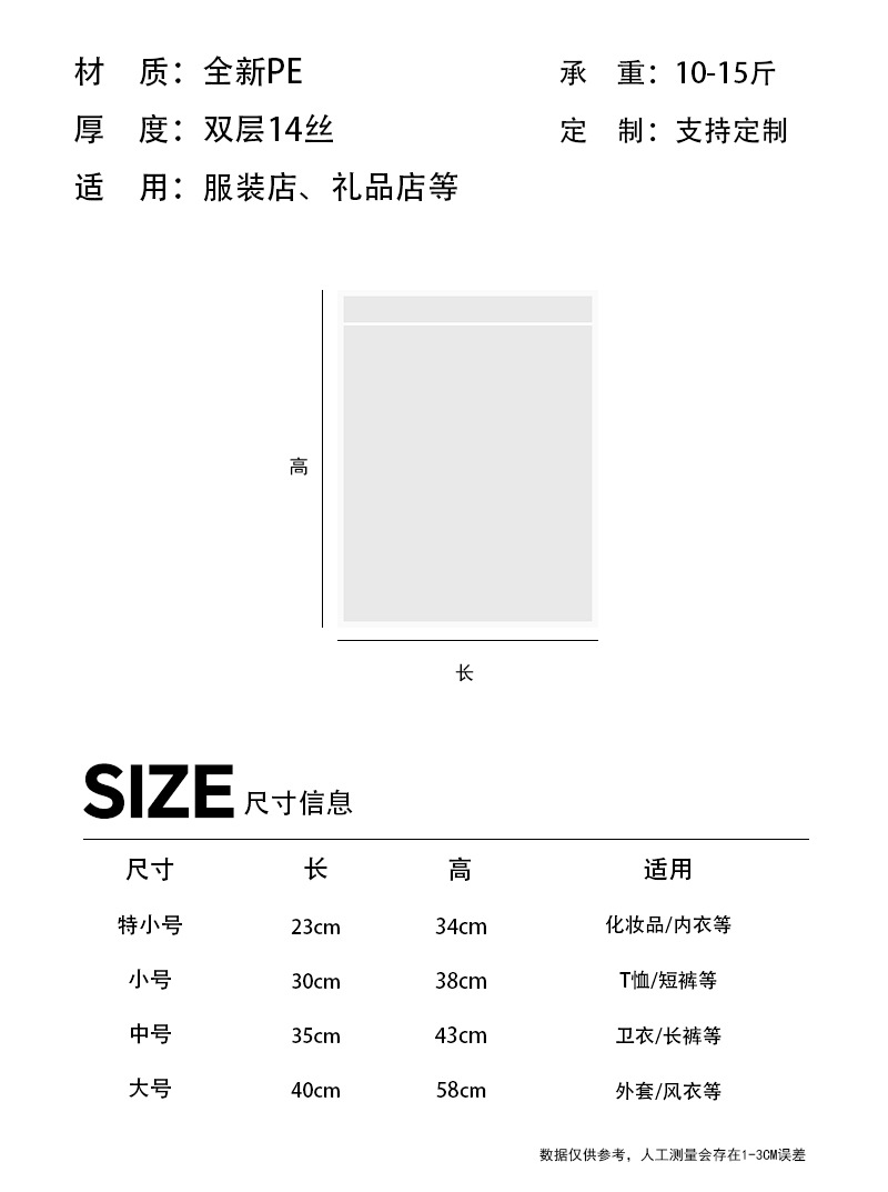 frosted semi-transparent; extra small 23*34 cm; 50 pieces
