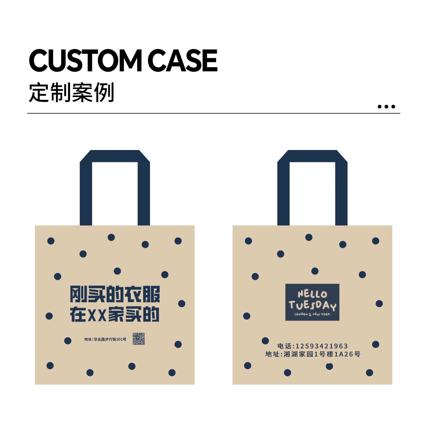 linen-colored matte plastic bags with polka dots; medium size 32 x 32 x 10 cm; 50 pieces