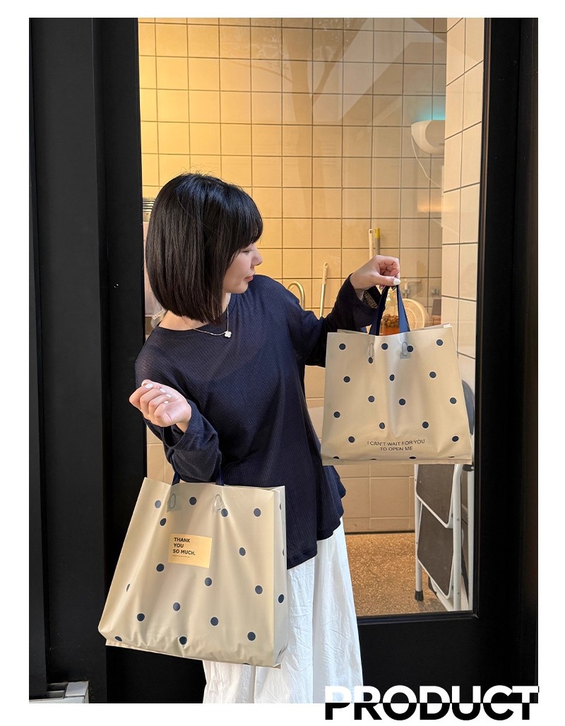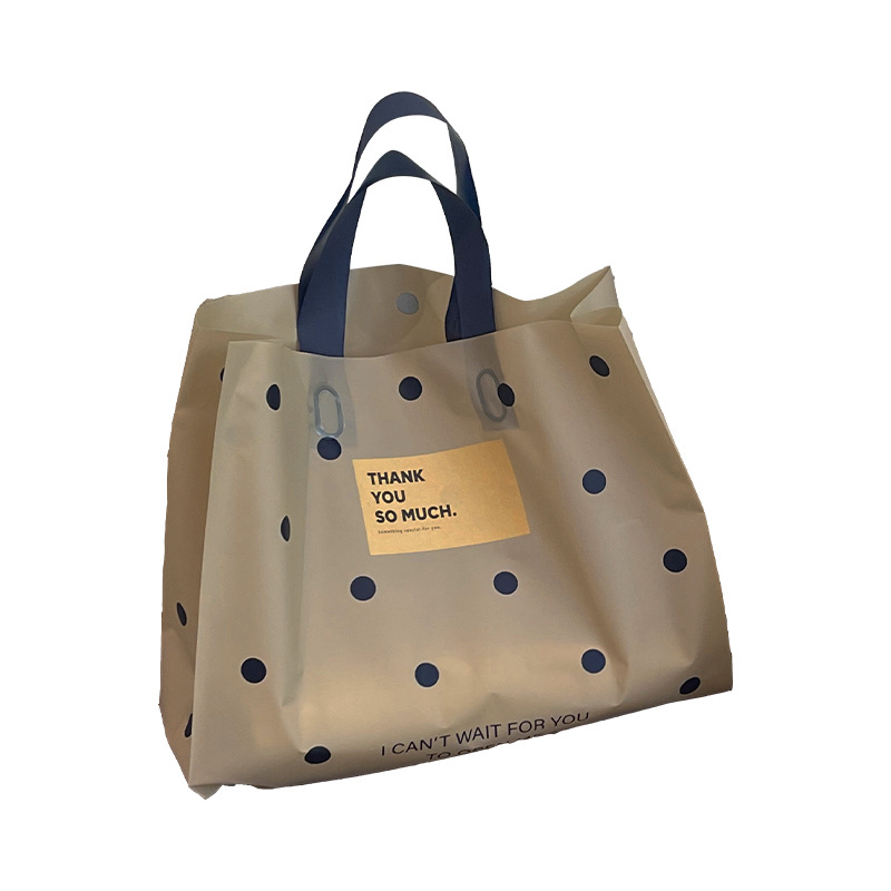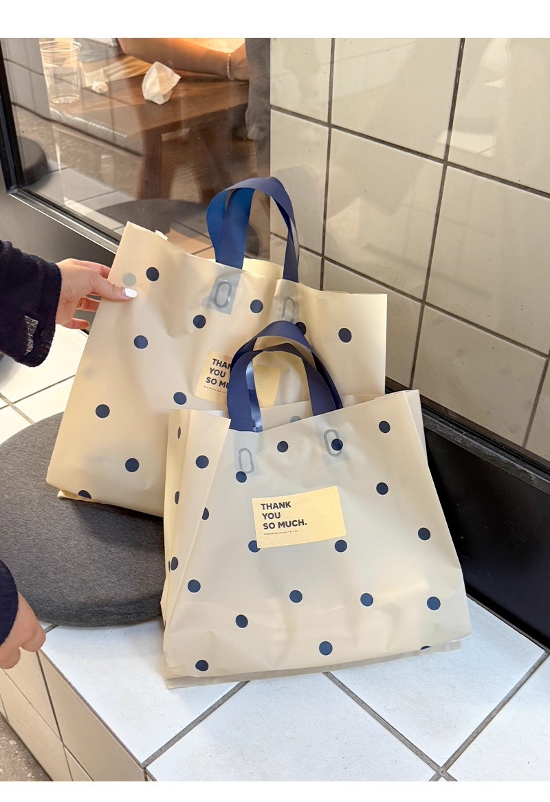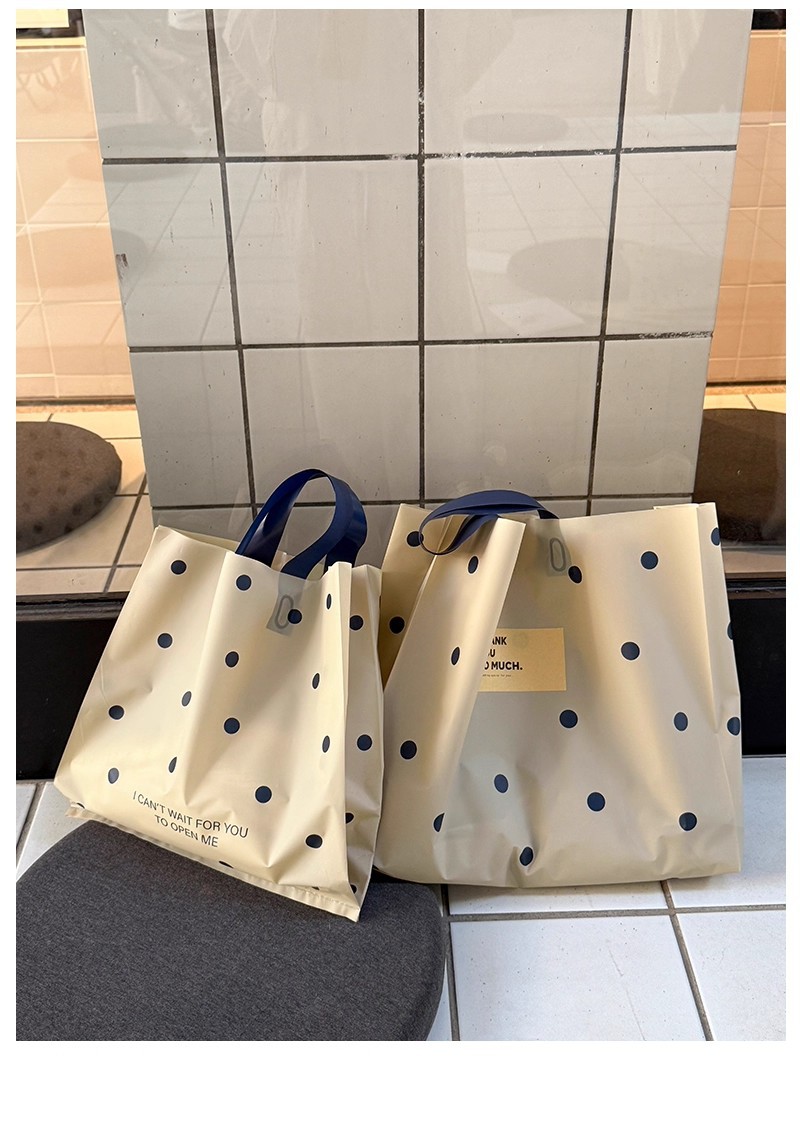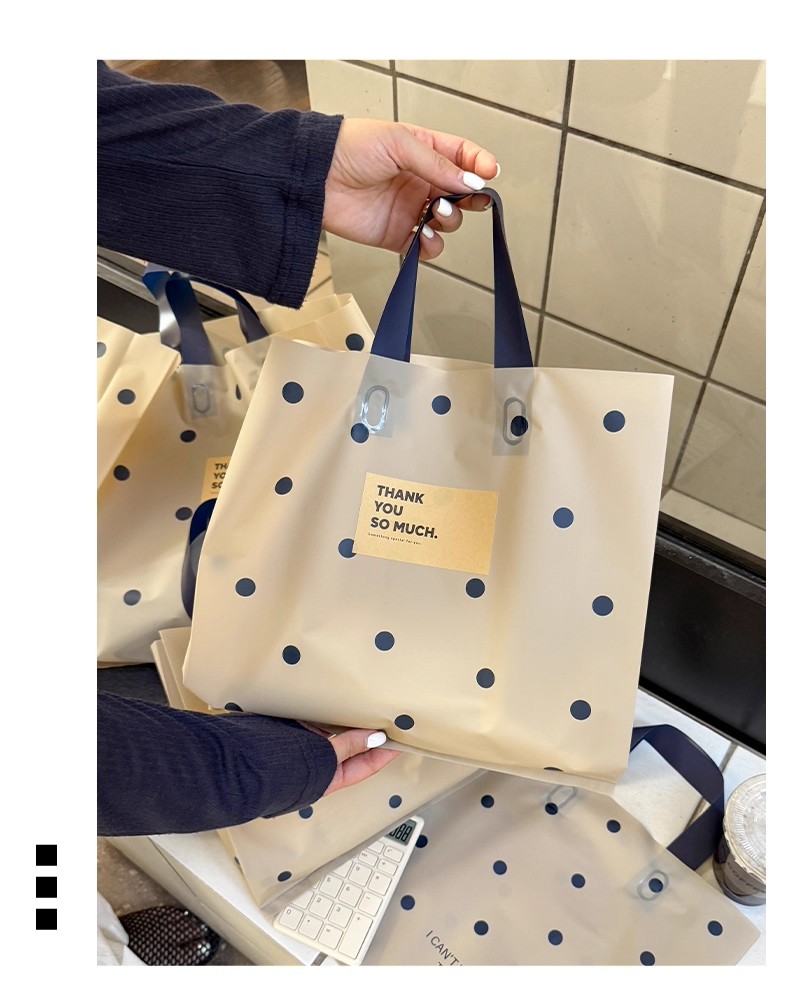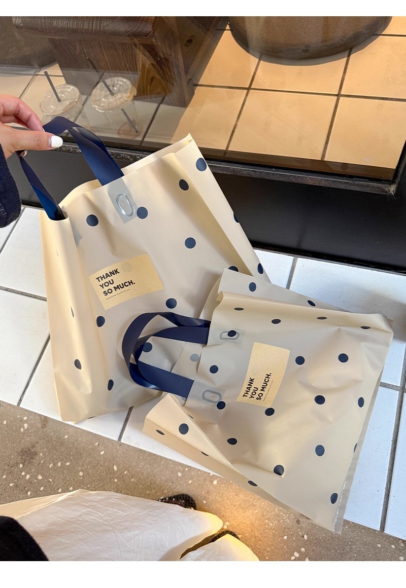 linen-colored matte plastic bags with polka dots; large size, 39 x 39 x 10 cm; 50 pieces
