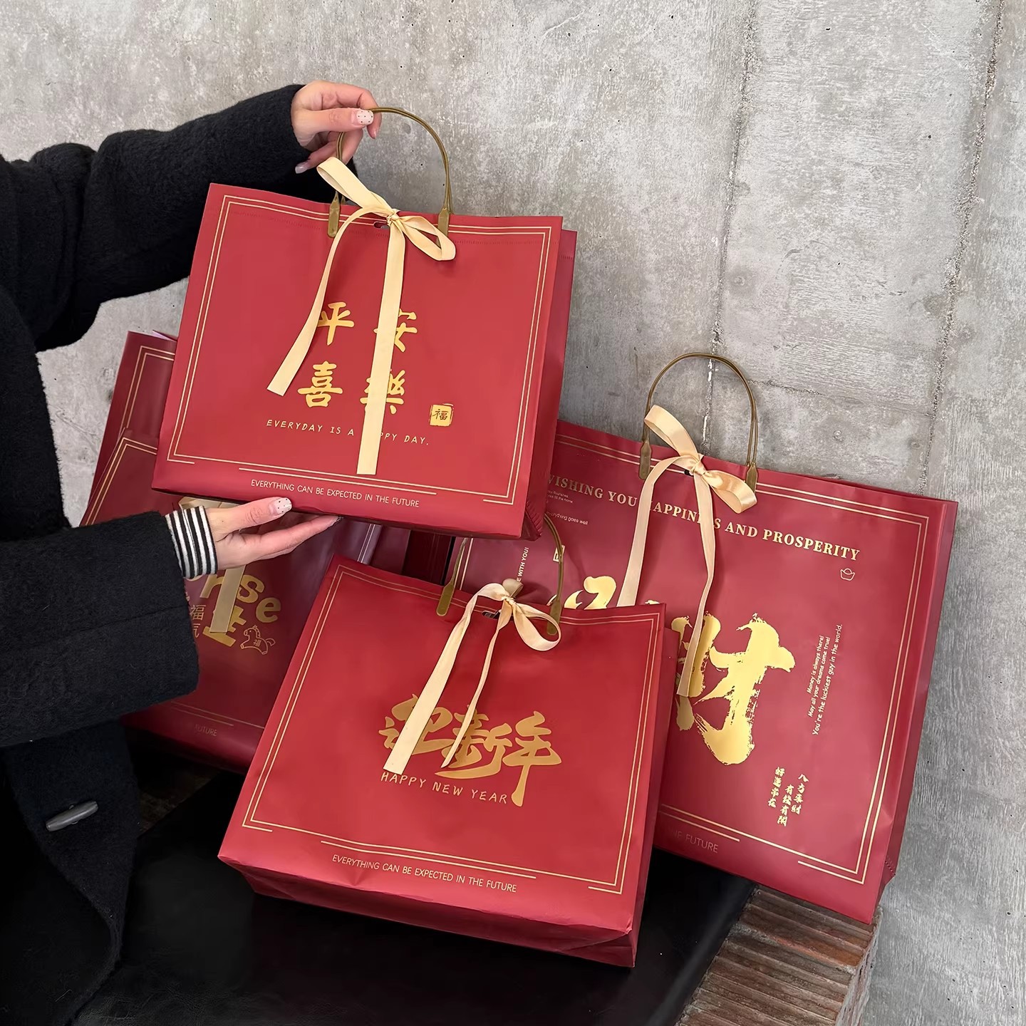 chinese red-happy new year; pp bag large size 44*33*12cm; 1 piece
