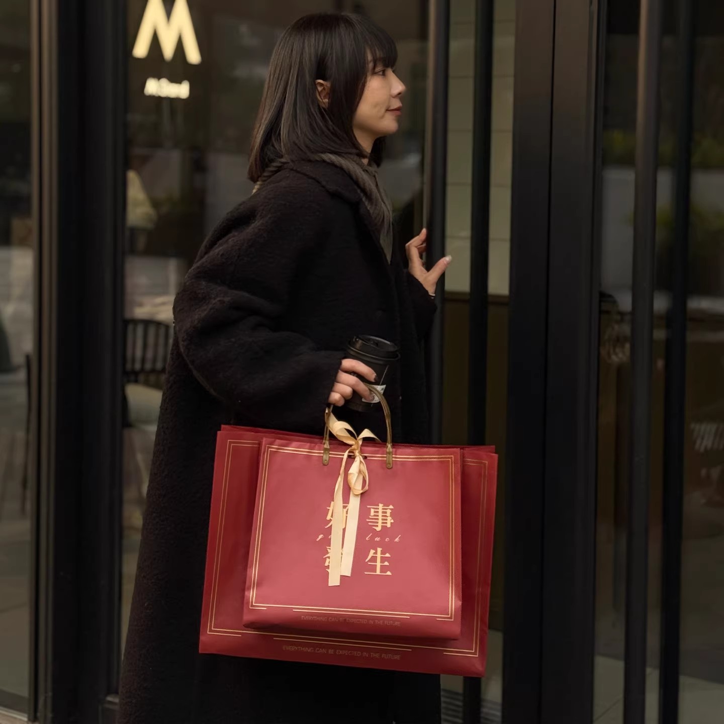 chinese red-good things happen; medium-sized pp bag 32*27*11cm; 1 piece