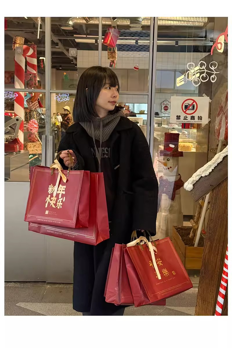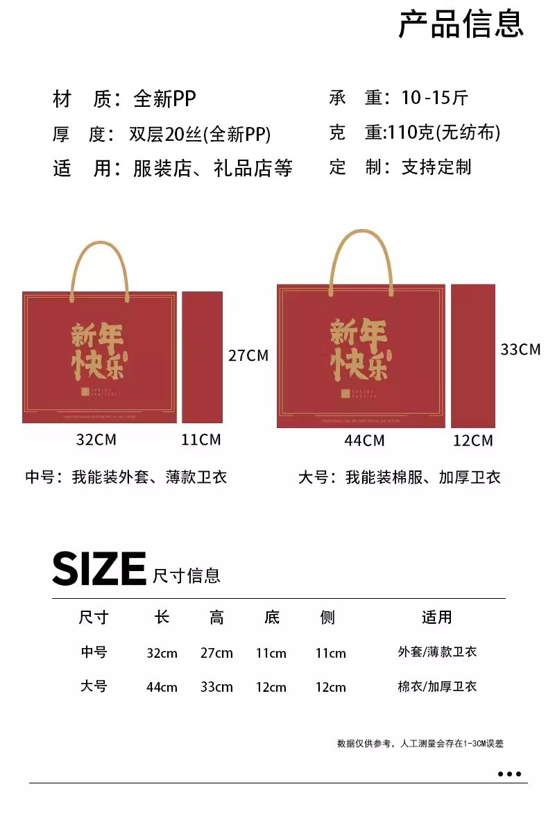 chinese red-happy new year; pp bag medium size 32*27*11cm; 1 piece