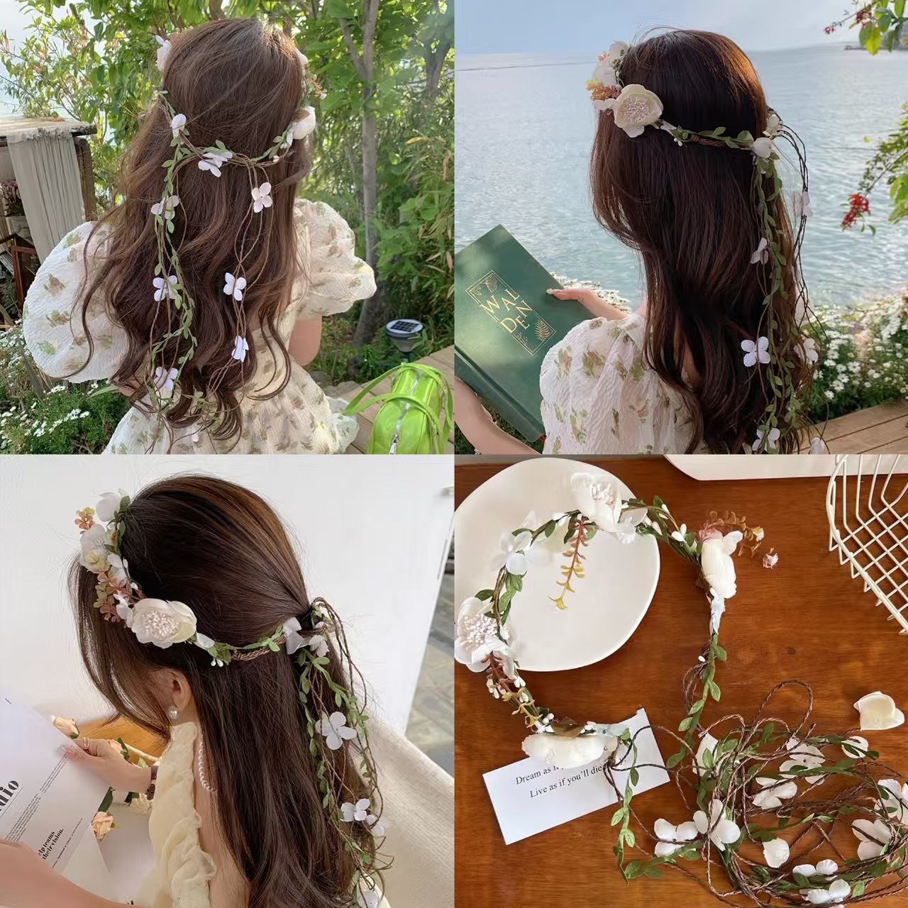 green leaf white daisy hairband