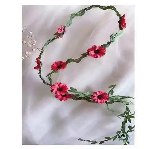 green leaf red daisy hairband