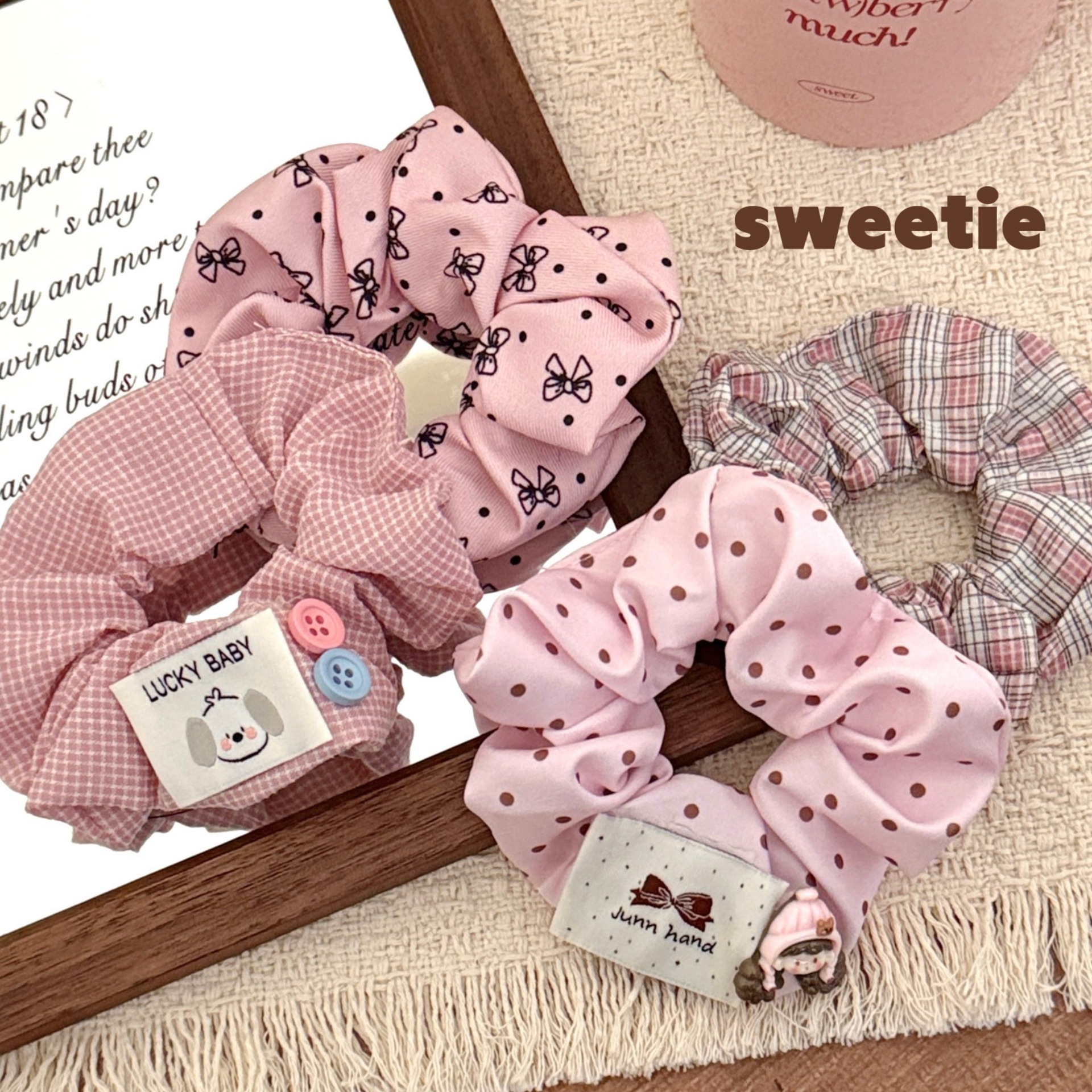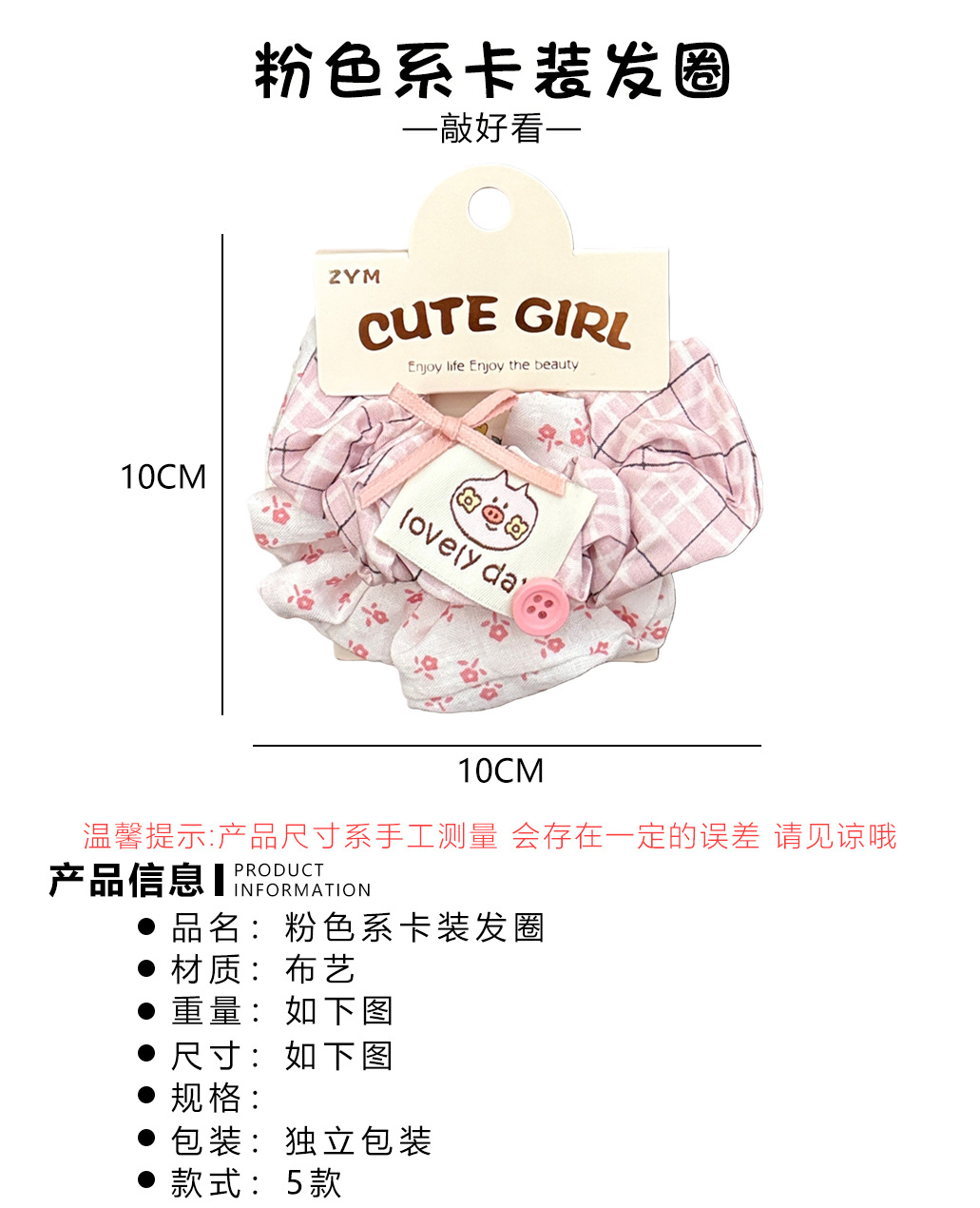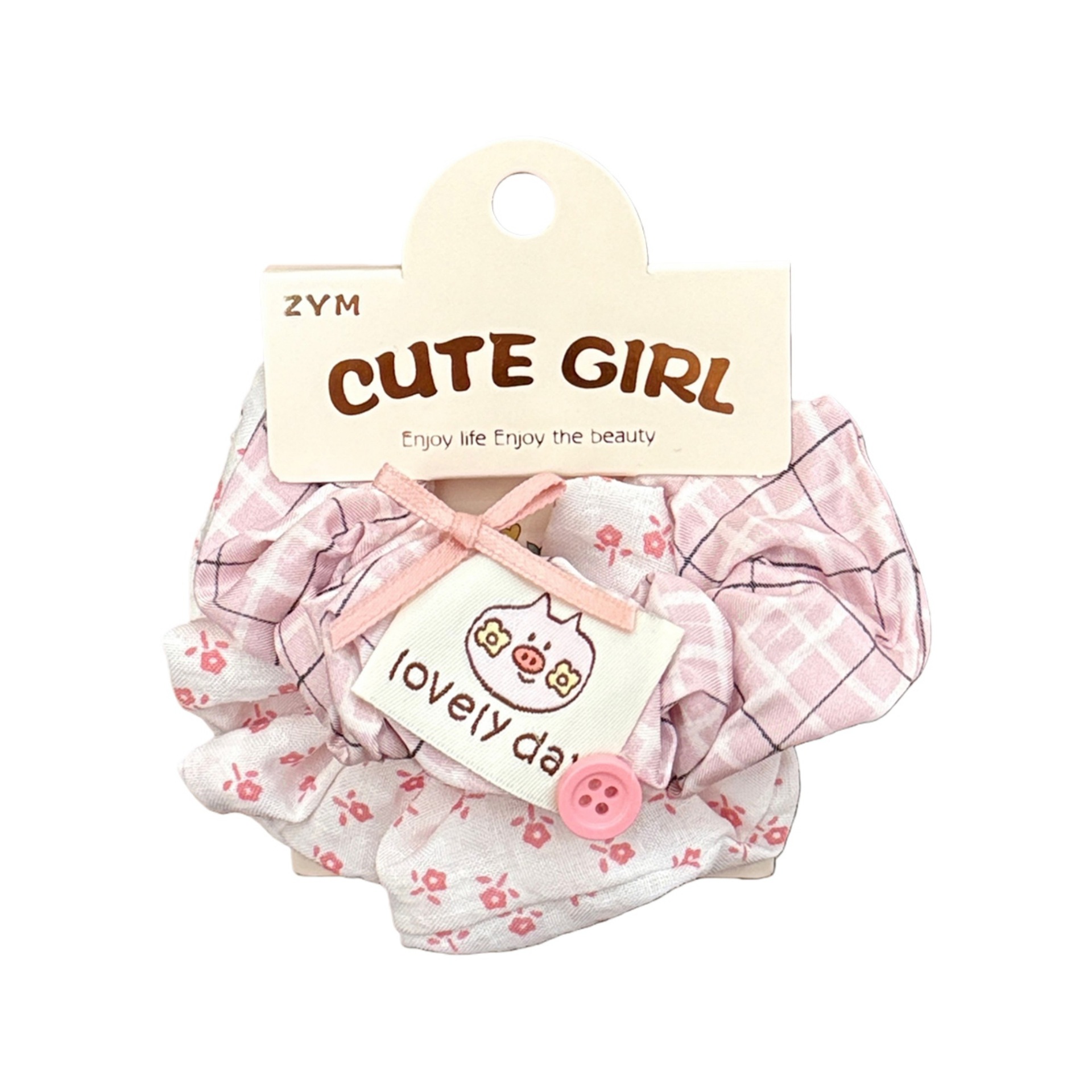 2# pink plaid small pig large intestine ring