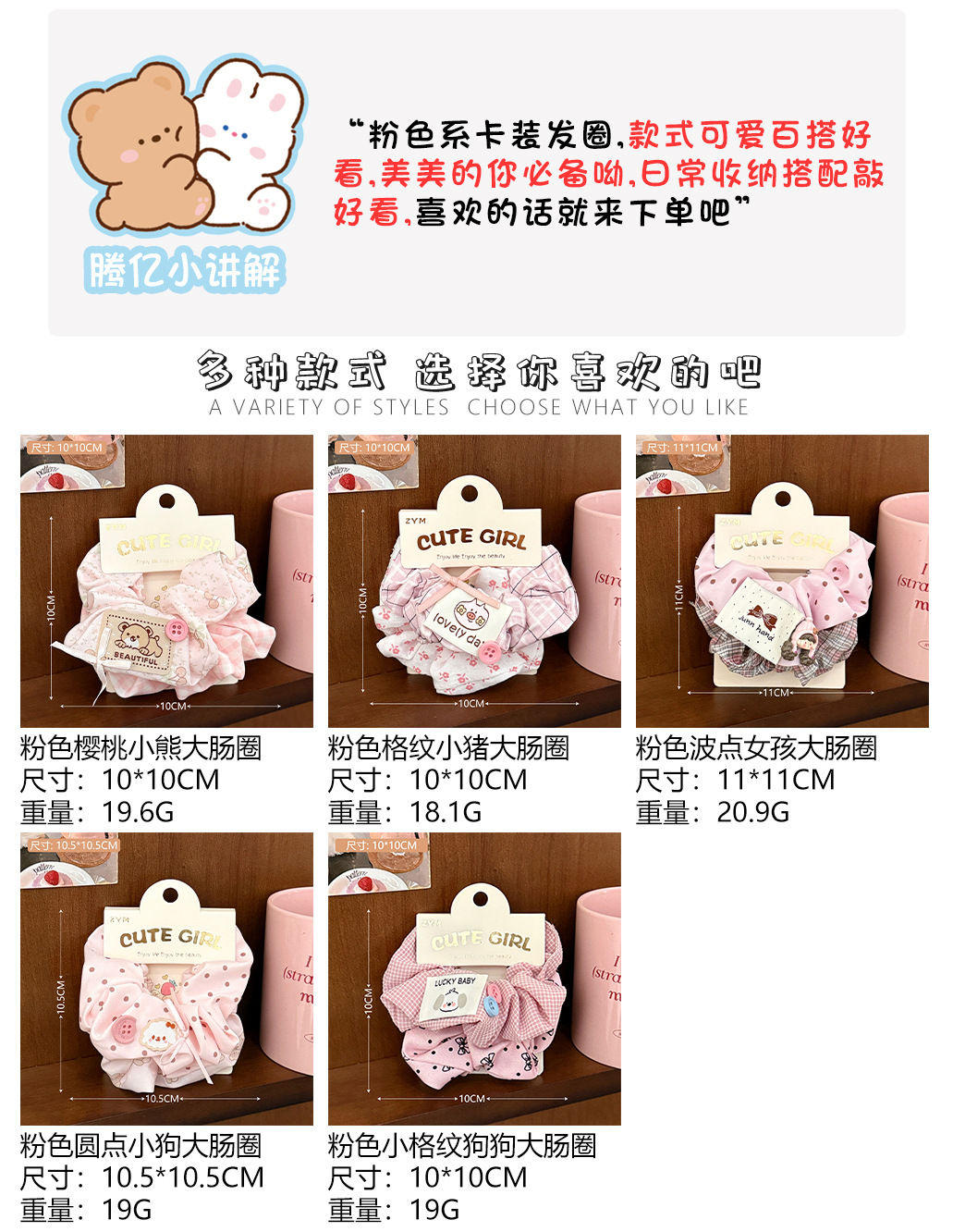 1# pink cherry little bear large intestine ring