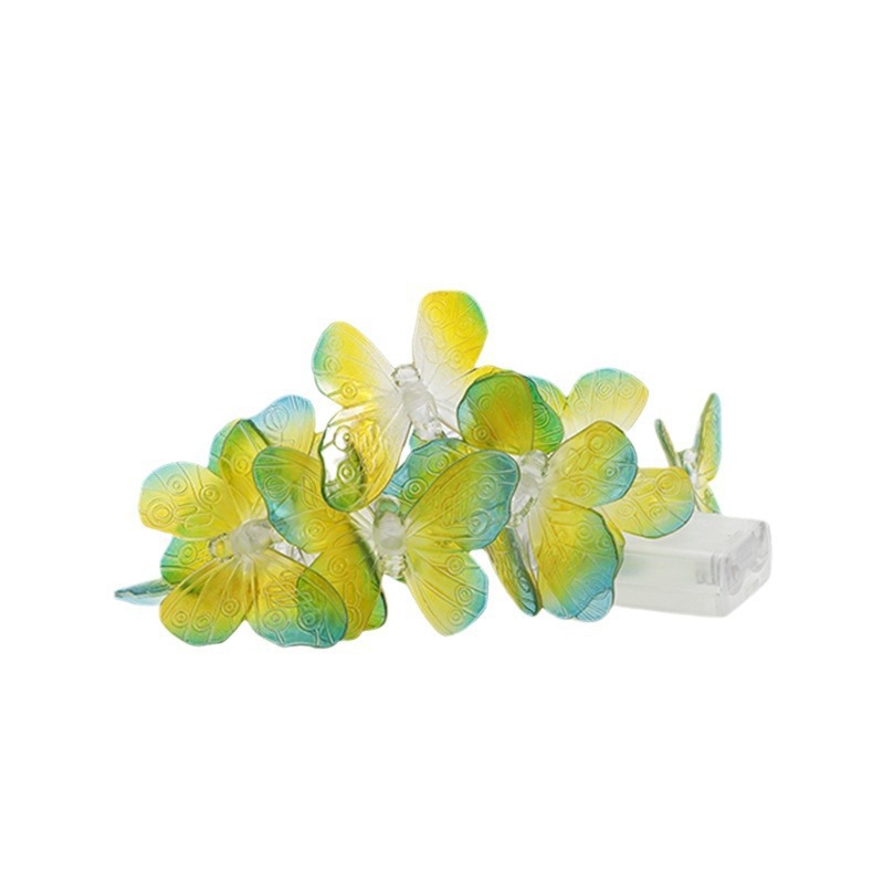 yellow butterfly-shaped string lights, 6 meters long, 40 bulbs, warm white light, battery-operated.