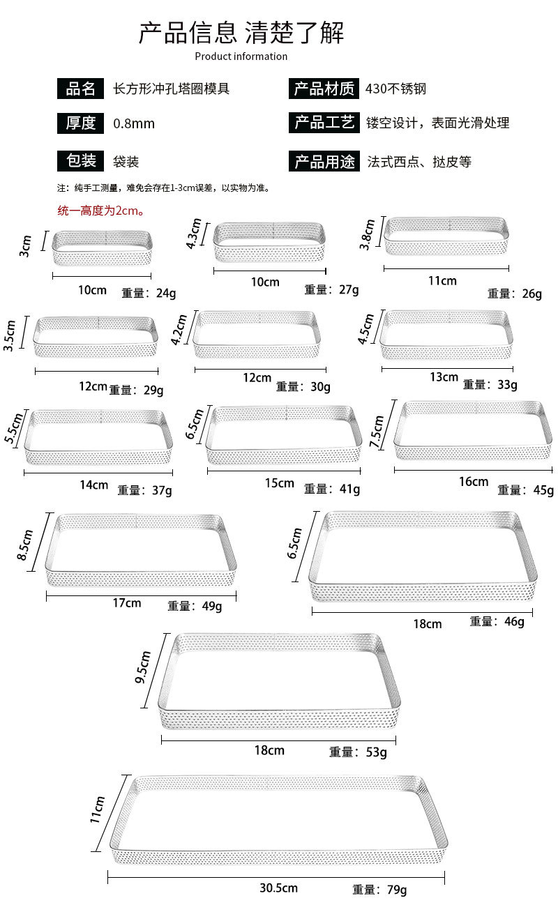 specifications: 430 rectangular punching 2.0 high-10 x3cm,