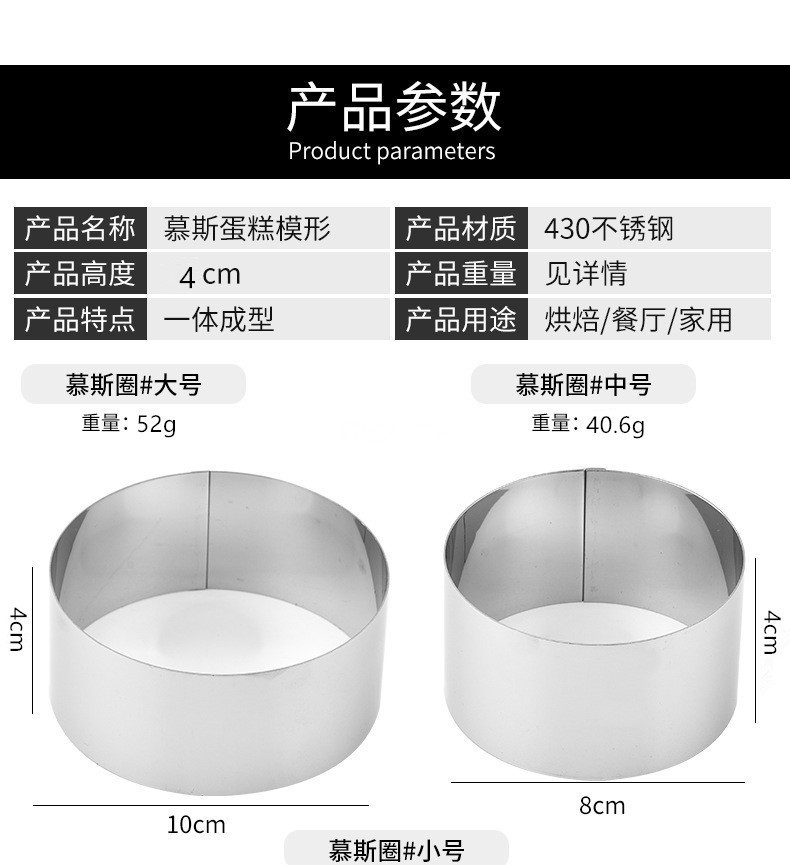 specifications: mousse mold 3-piece set diameter 6/8/10 * height 4cm