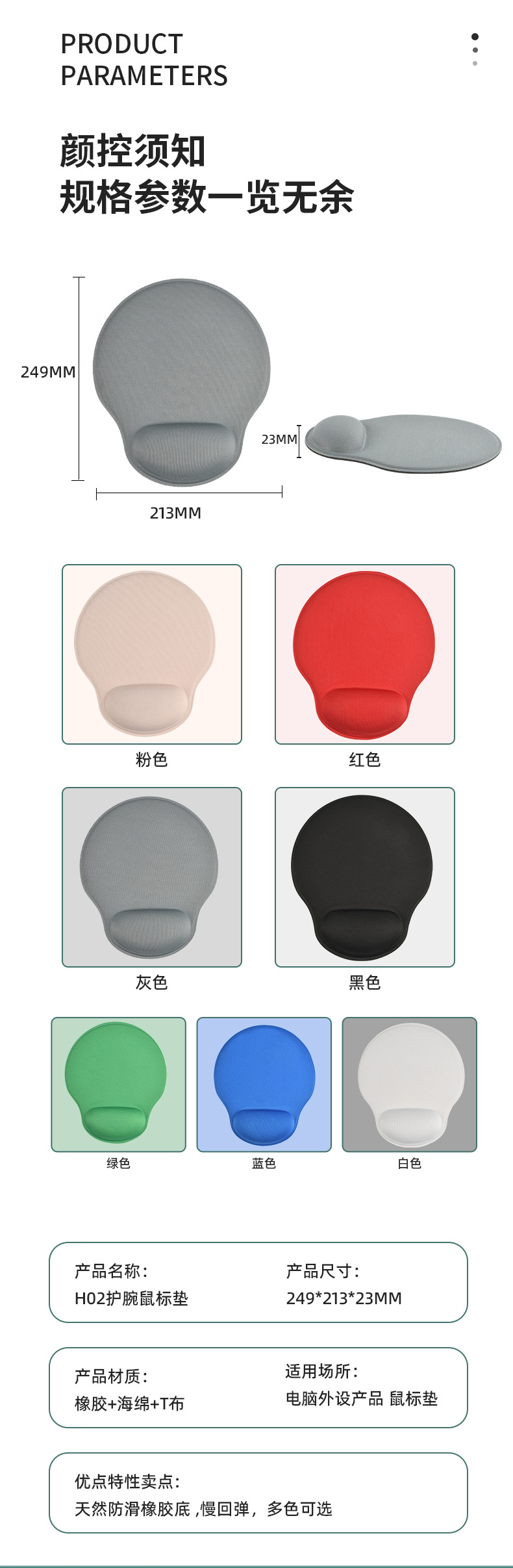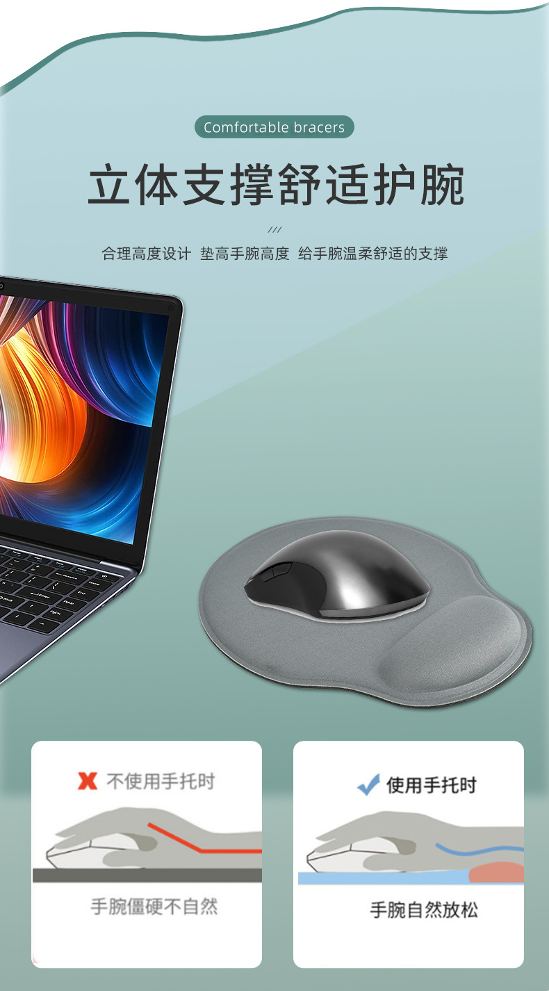 cross-border solid color mouse pad wristband pad rubber non-slip wristband pad sponge slow-rebound keyboard support advertising mouse pad