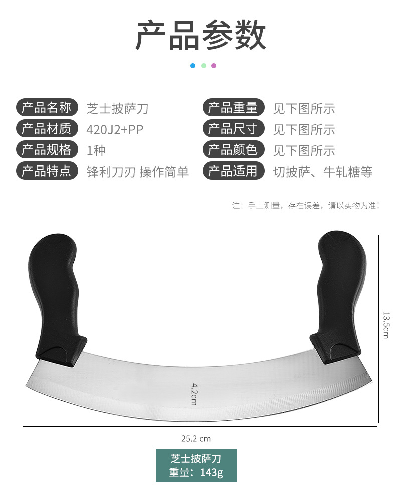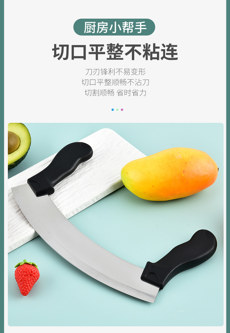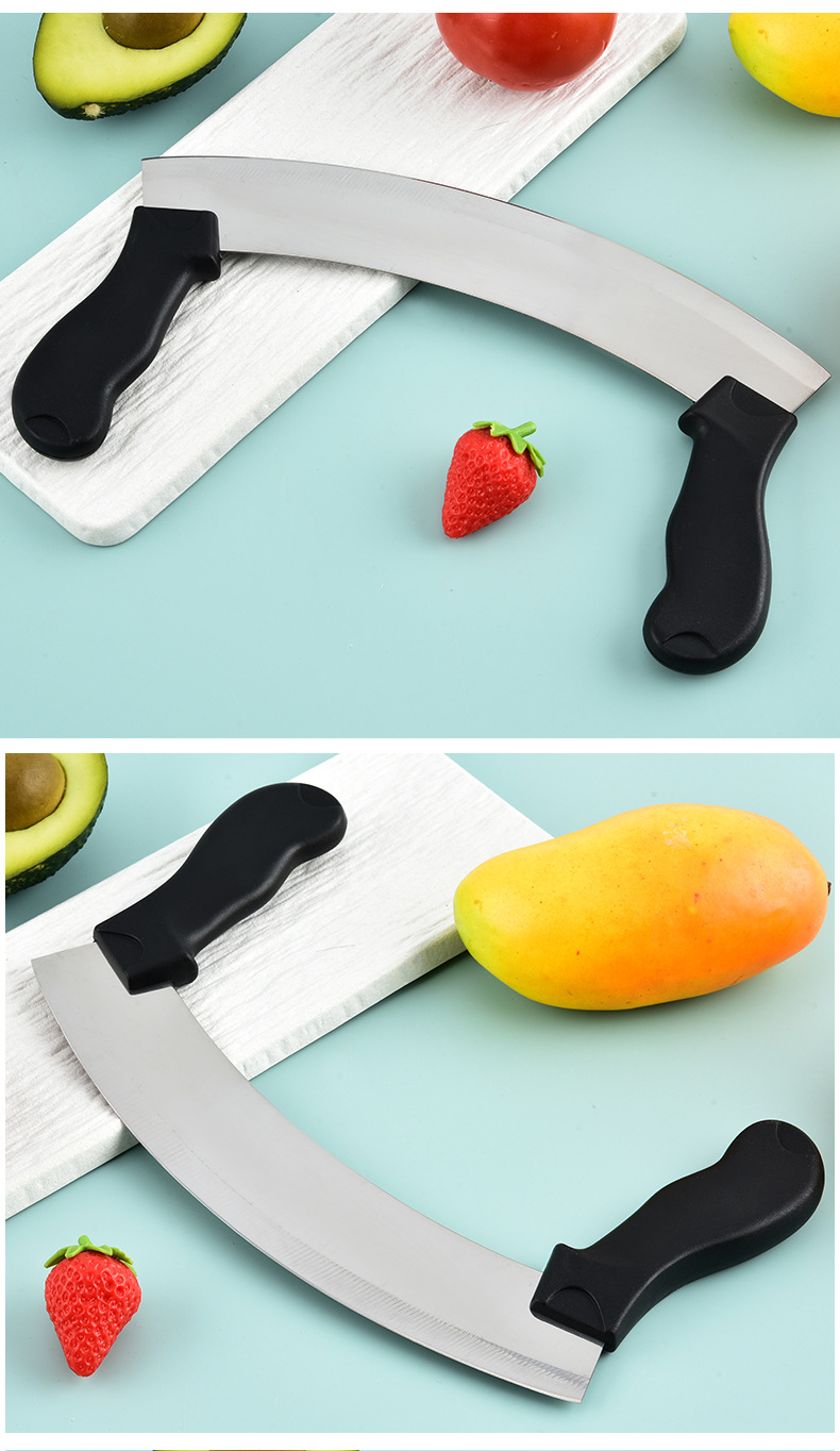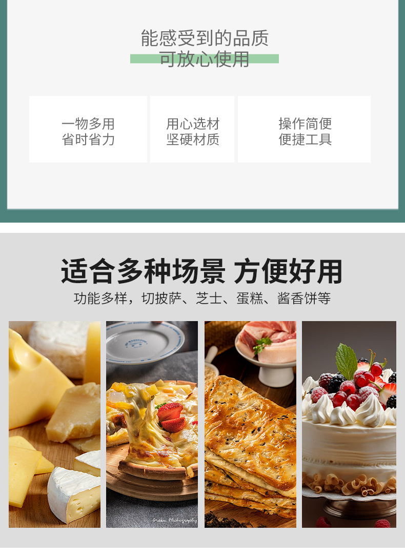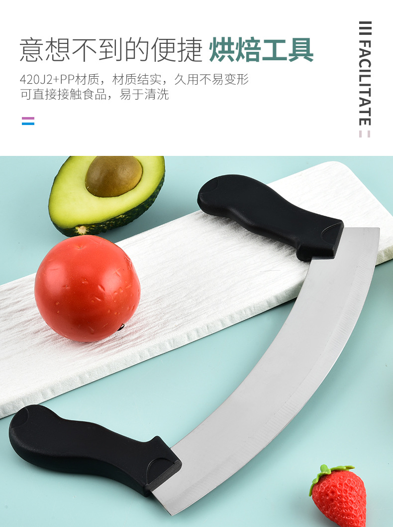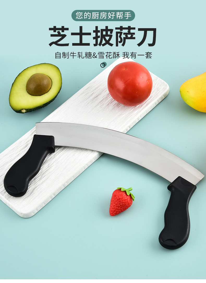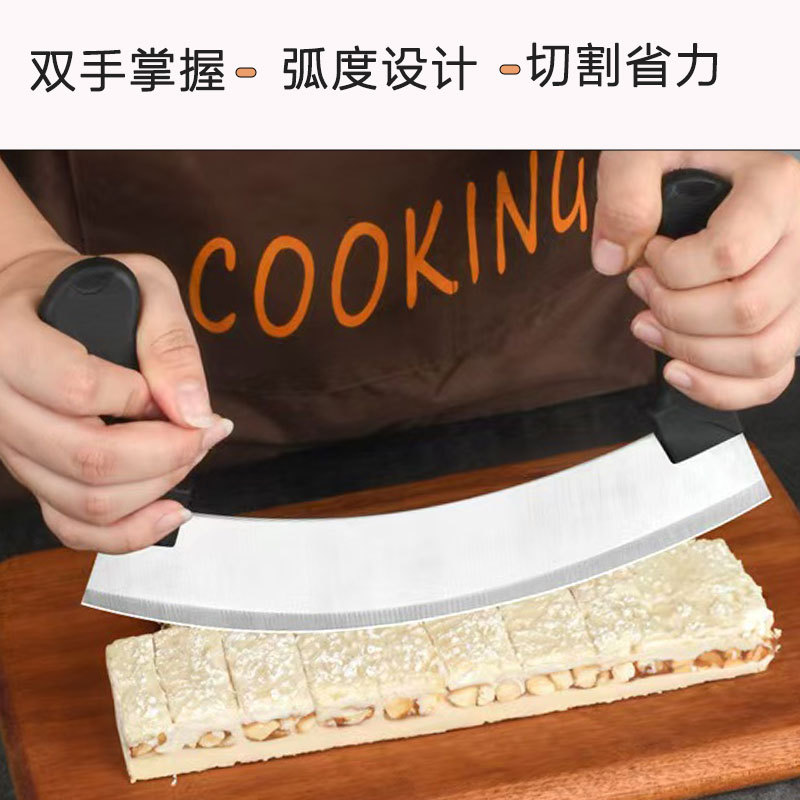 stainless-steel bread knife, cheese pizza cutter, nougat cutter, vanilla cutter, dough scraper, double-handled oscillating slicing knife