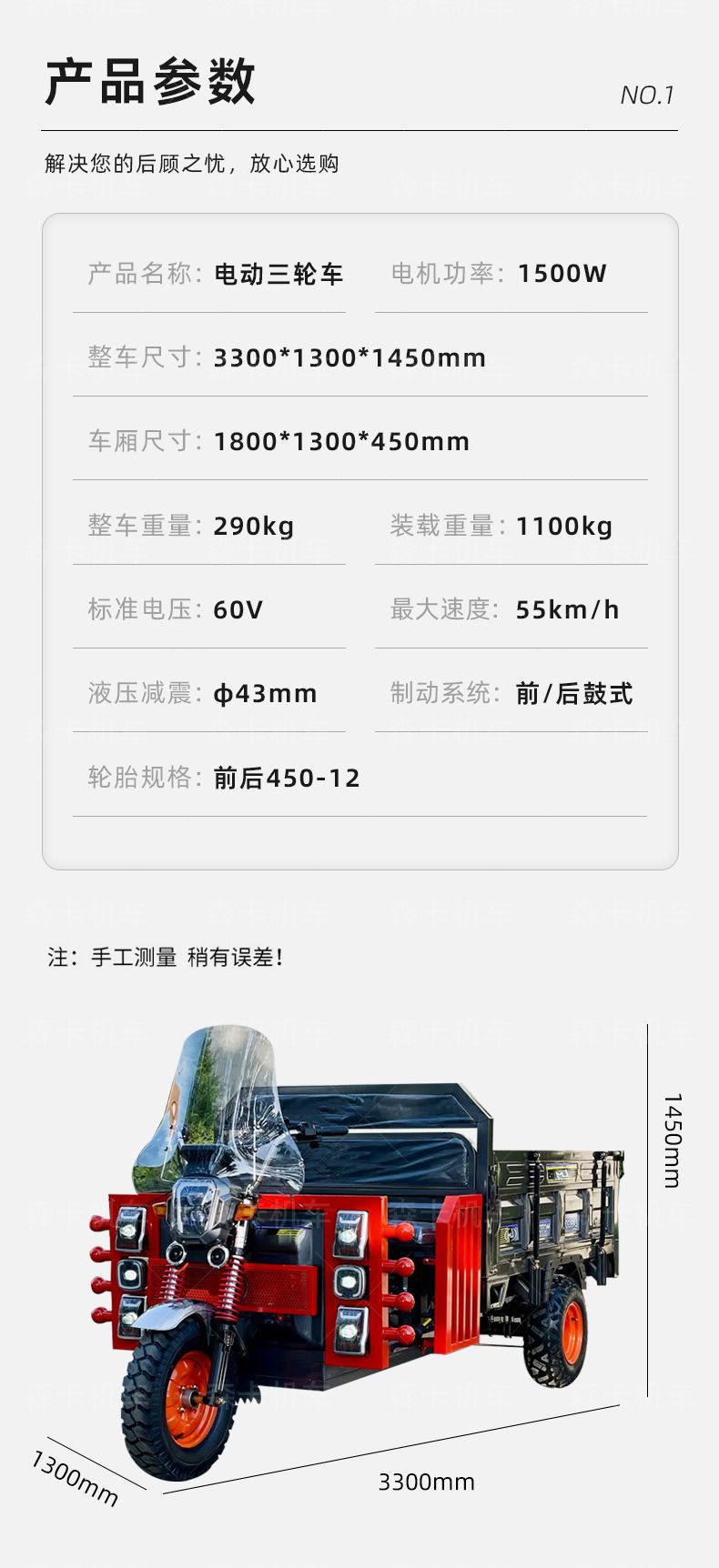 electric tricycle for cargo transport, agricultural and household use, hill-climbing heavy-duty truck – drawing deposit/letter of intent