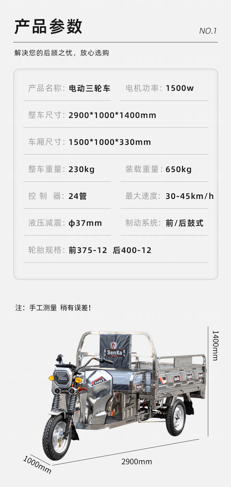 vehicle size: 2900*1000 * 1400mm