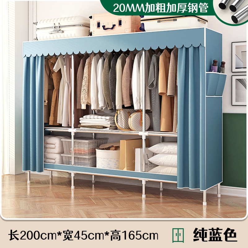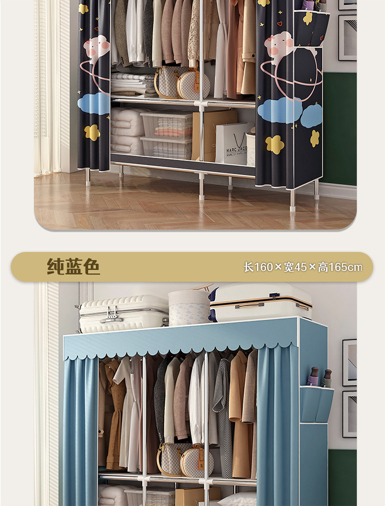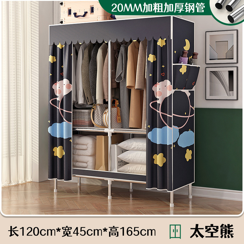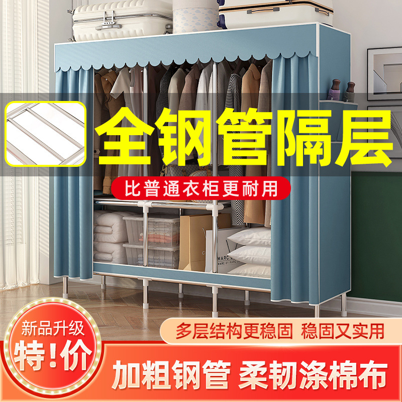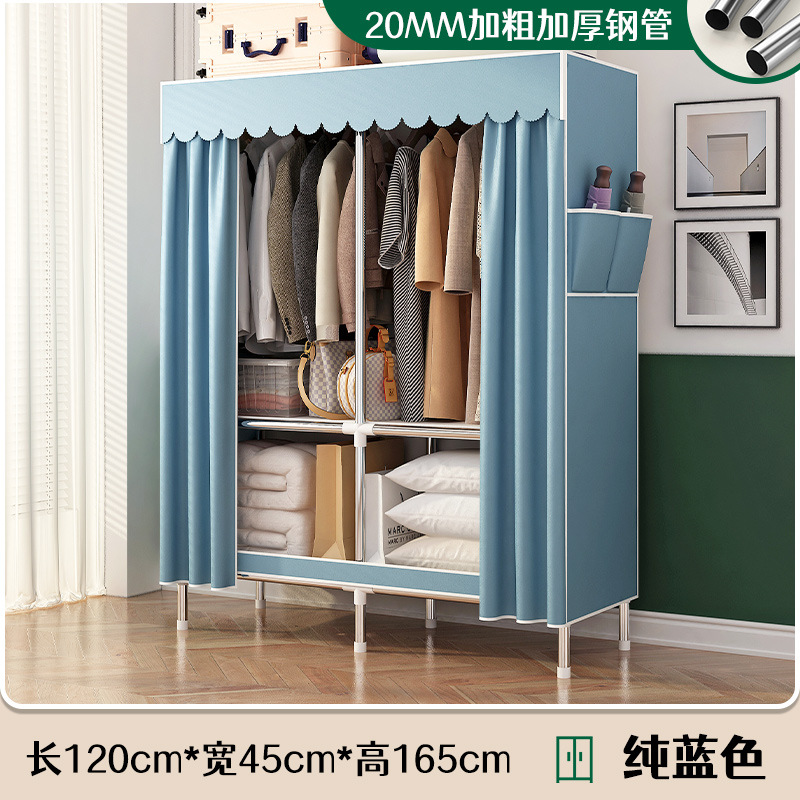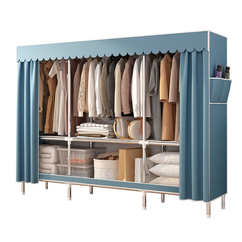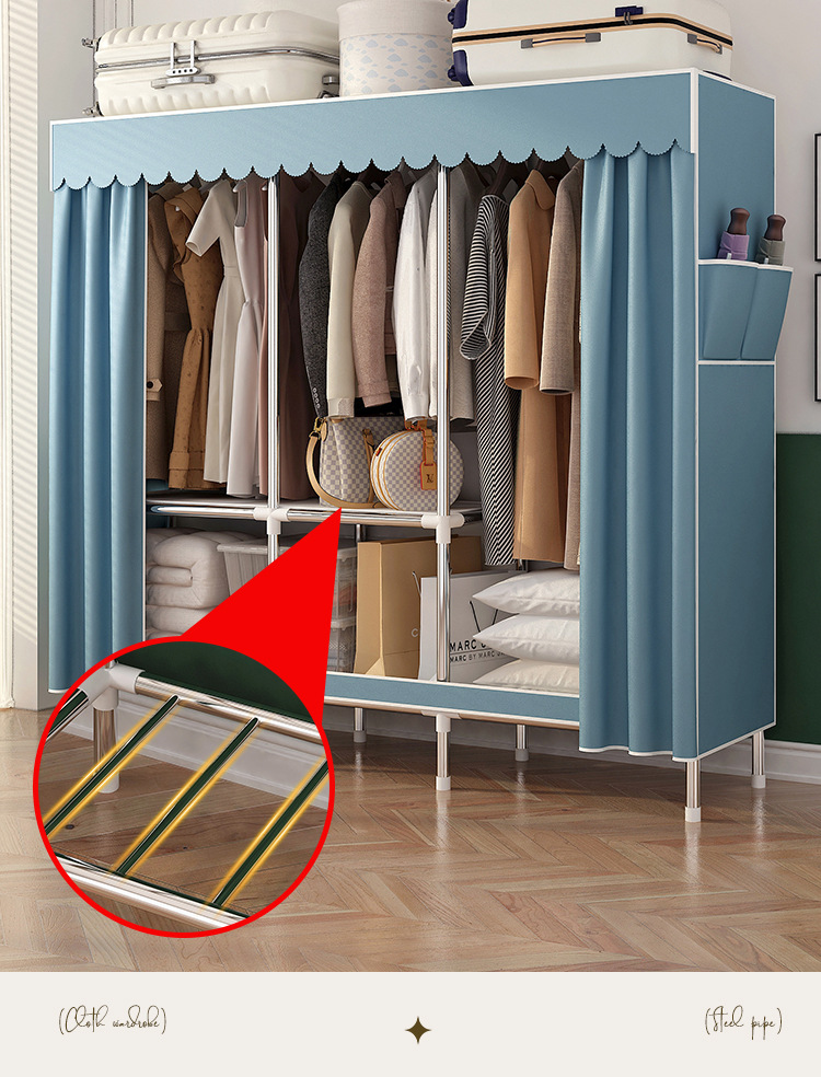 simple wardrobe metal steel pipe polyester fabrics cloth wardrobe bold economical assembly storage dormitory household wardrobe