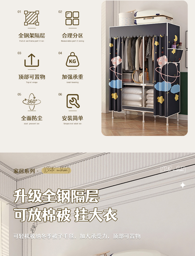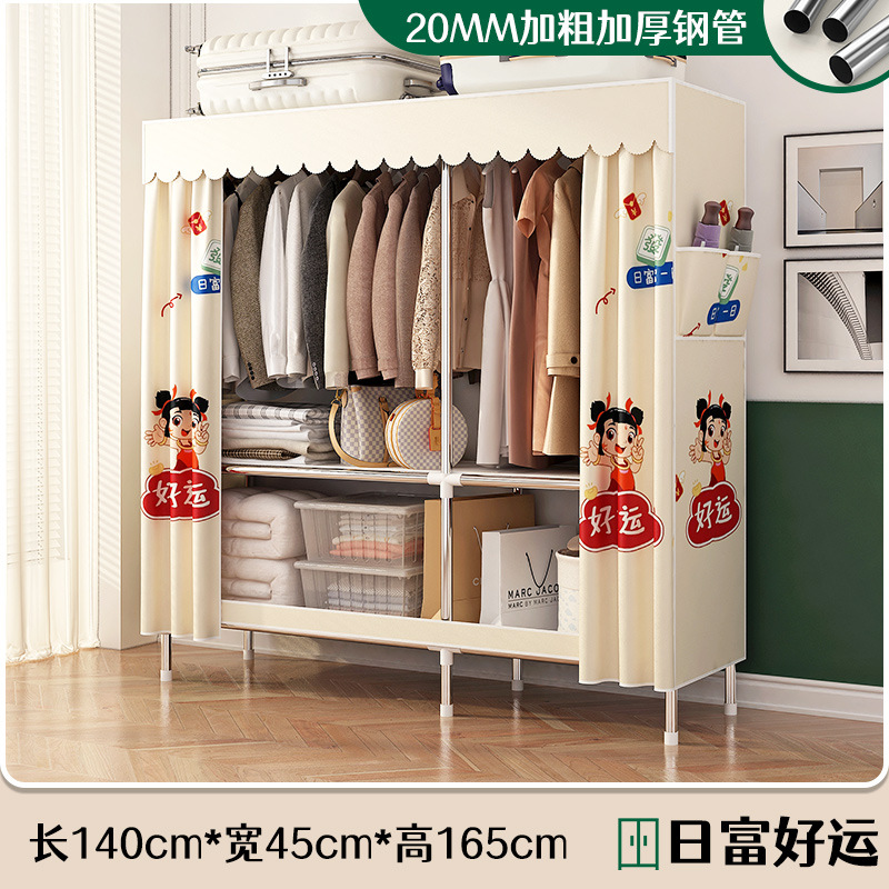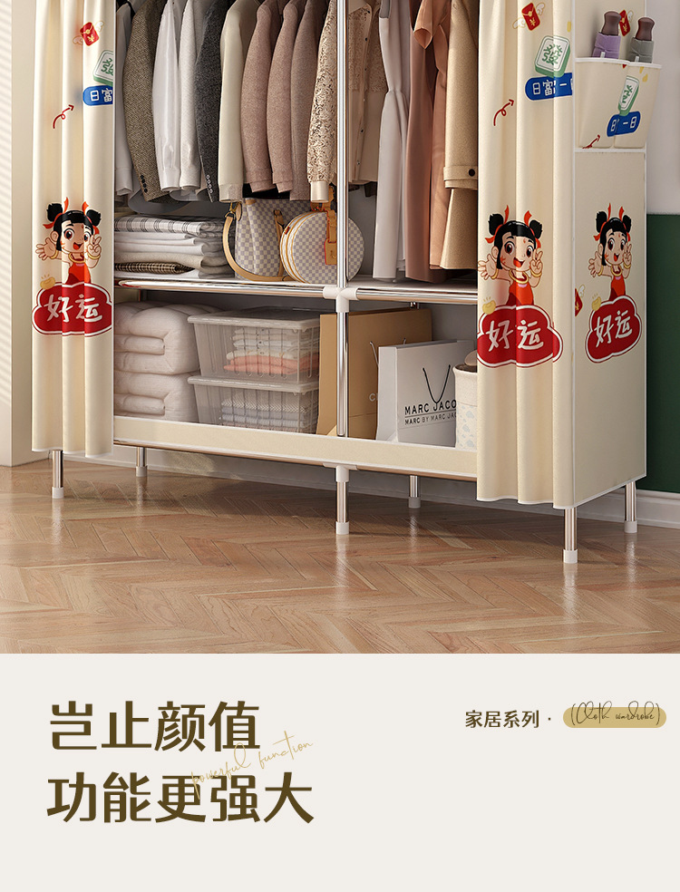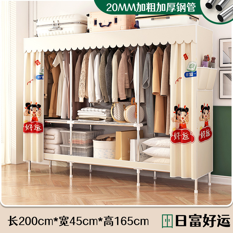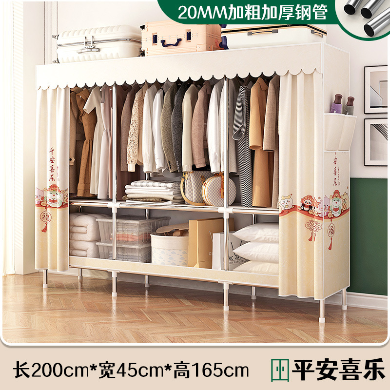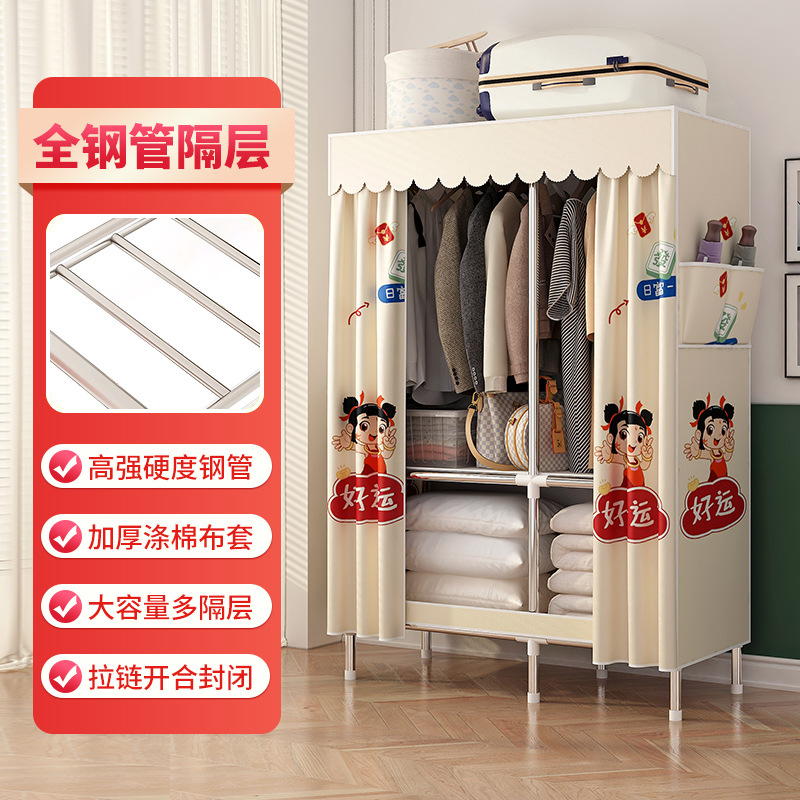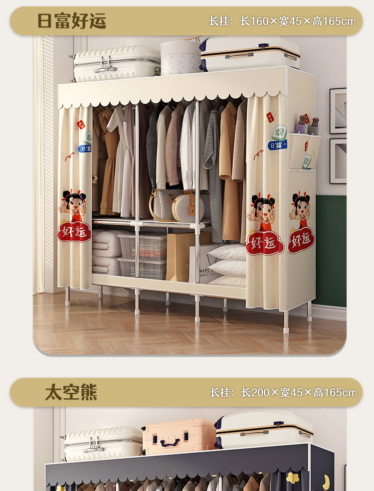 simple wardrobe metal steel pipe polyester fabrics cloth wardrobe bold economical assembly storage dormitory household wardrobe