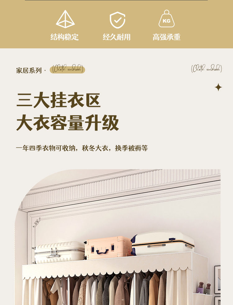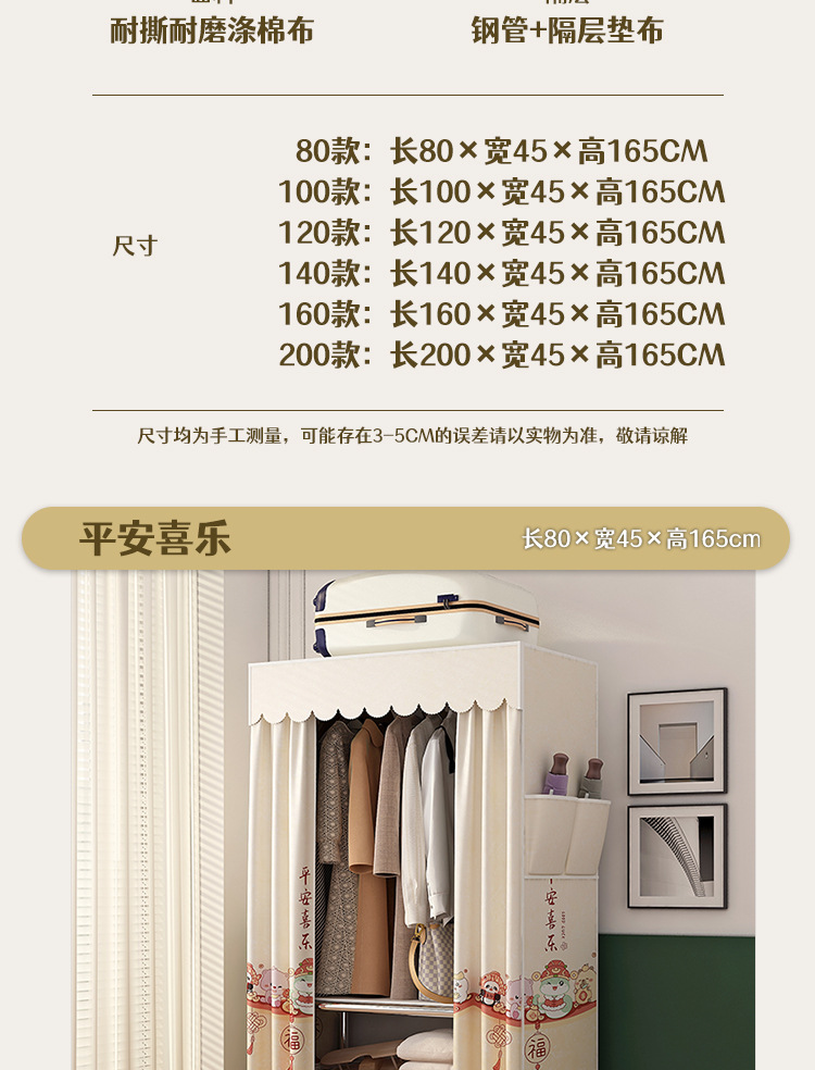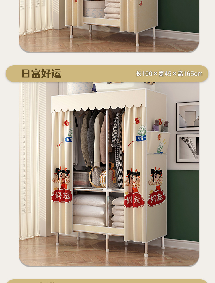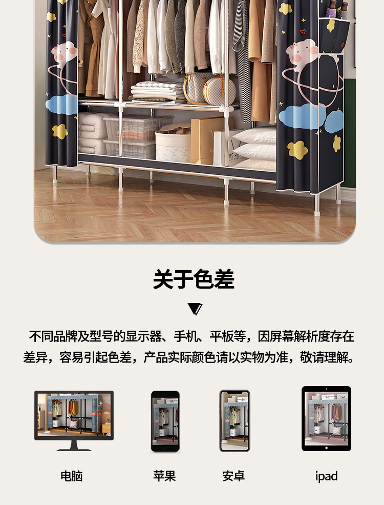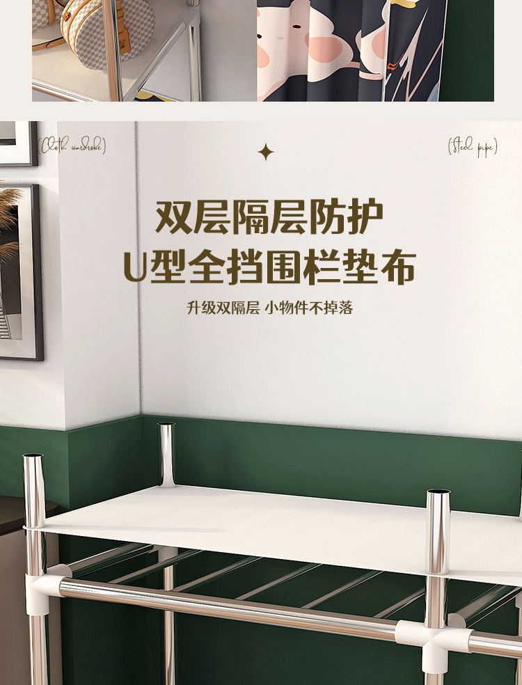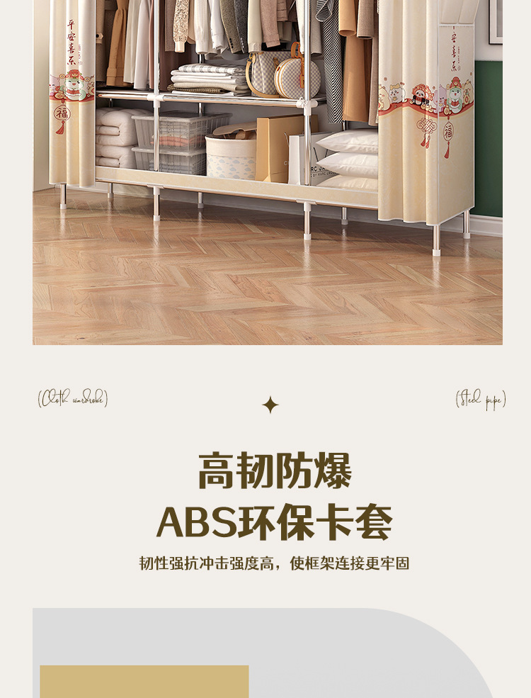 simple wardrobe metal steel pipe polyester fabrics cloth wardrobe bold economical assembly storage dormitory household wardrobe