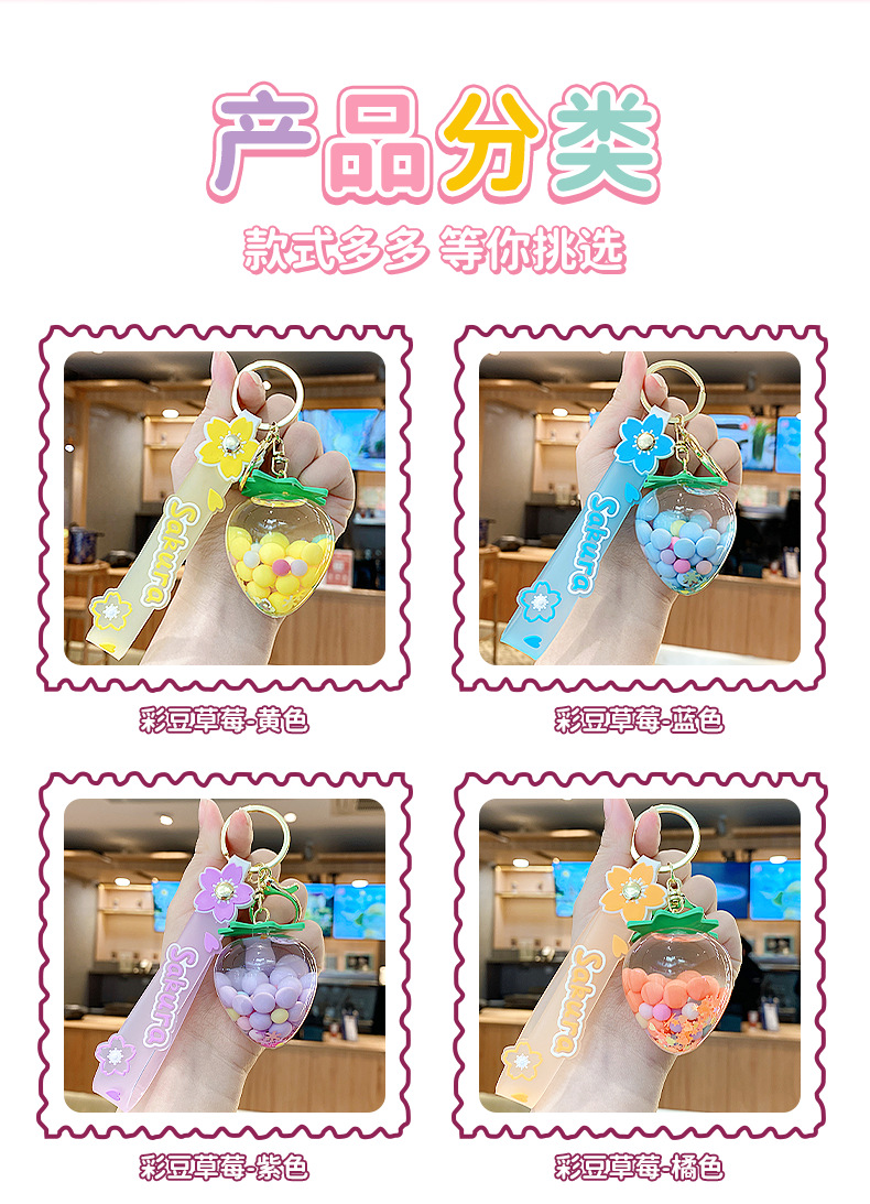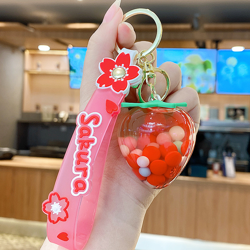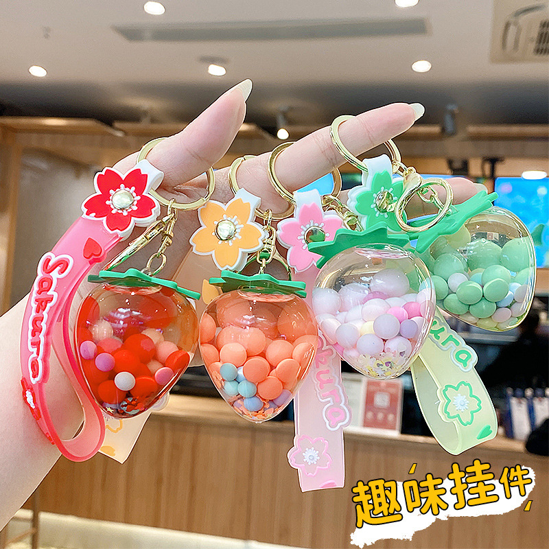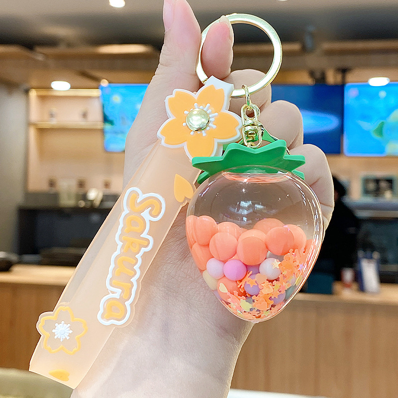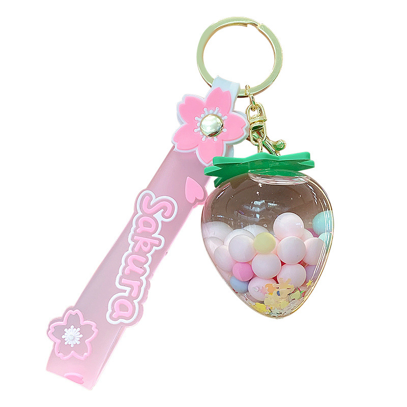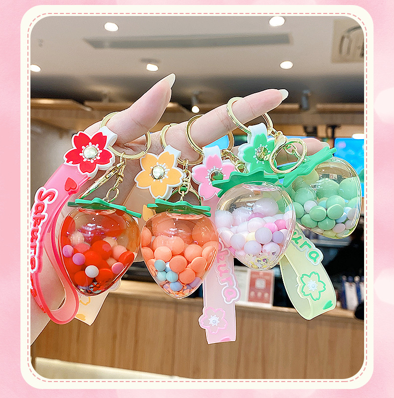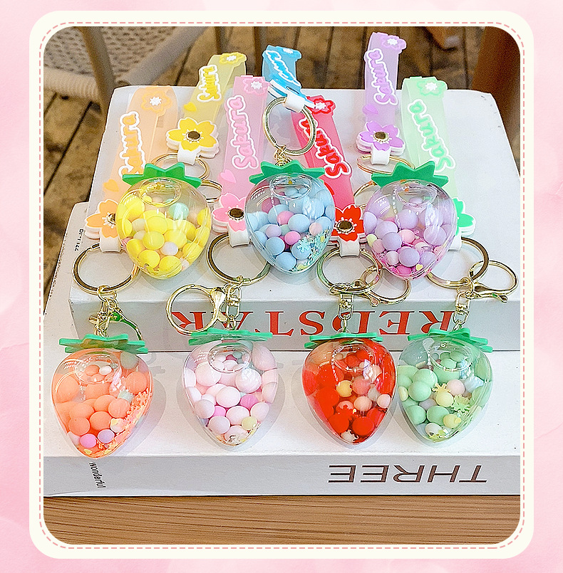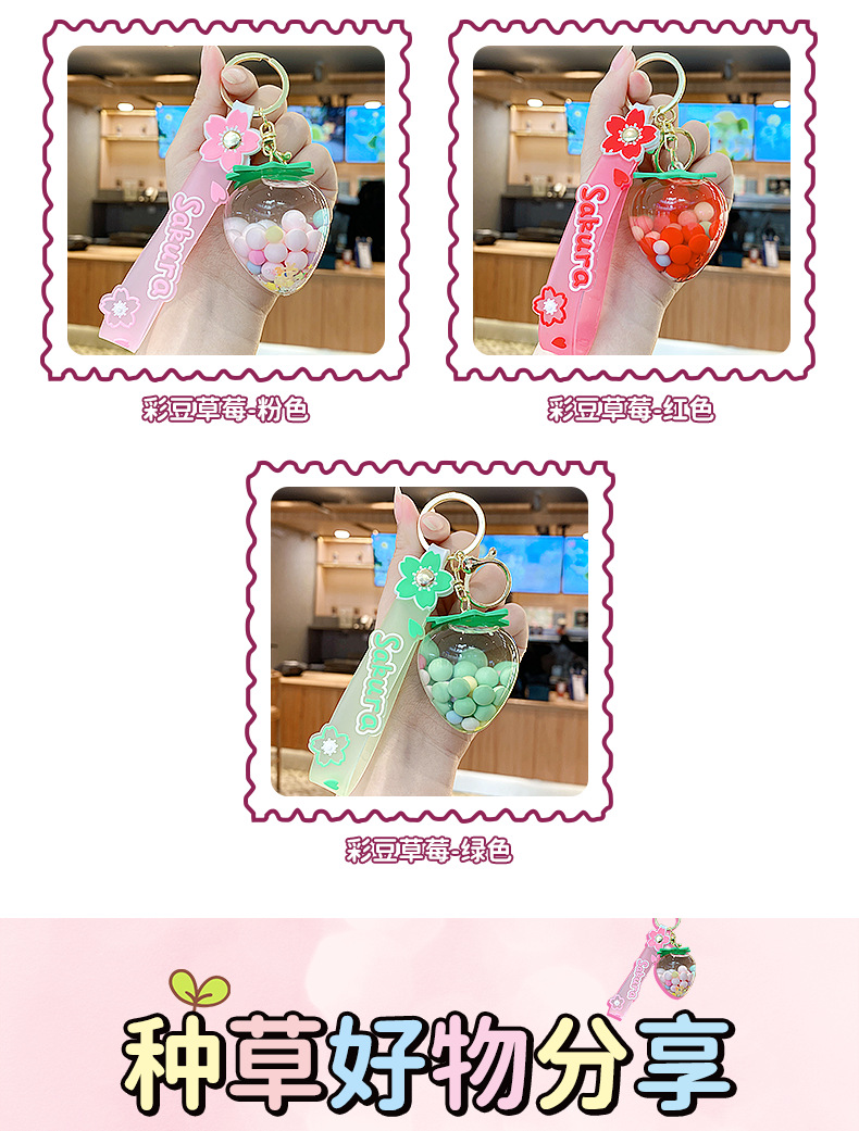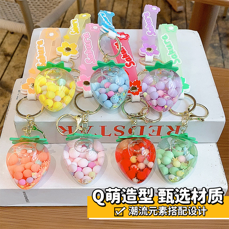simulation quicksand colorful bean strawberry keychain pendant exquisite student schoolbag car key chain ornament gifts wholesale