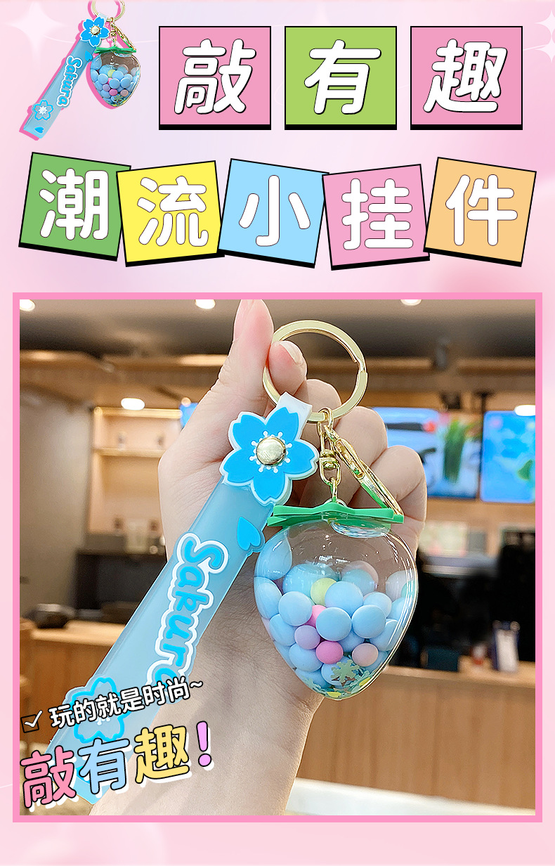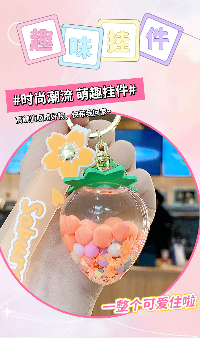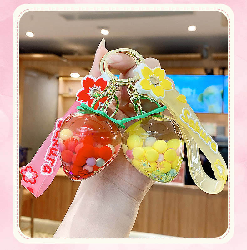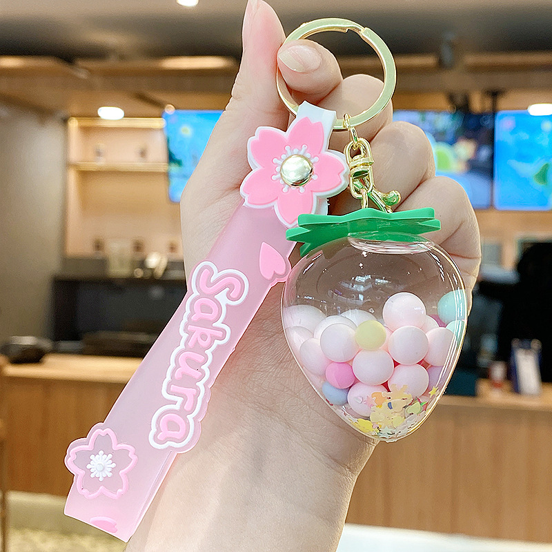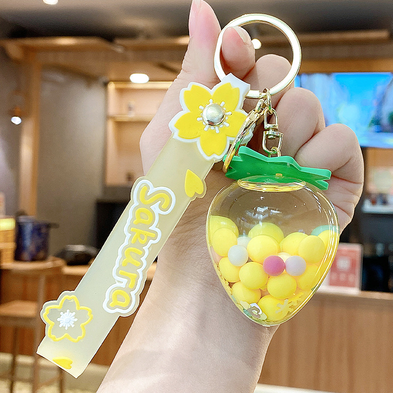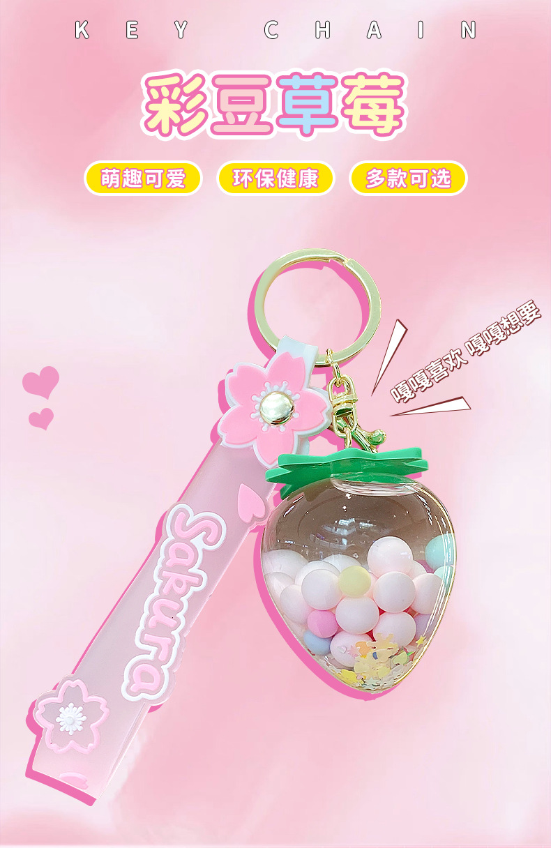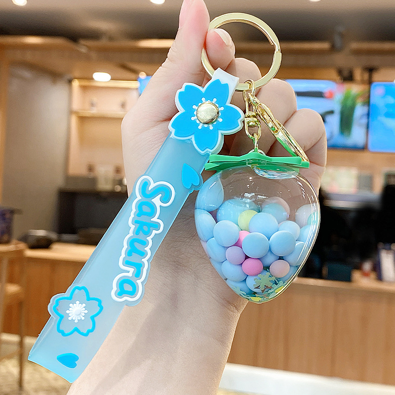 simulation quicksand colorful bean strawberry keychain pendant exquisite student schoolbag car key chain ornament gifts wholesale