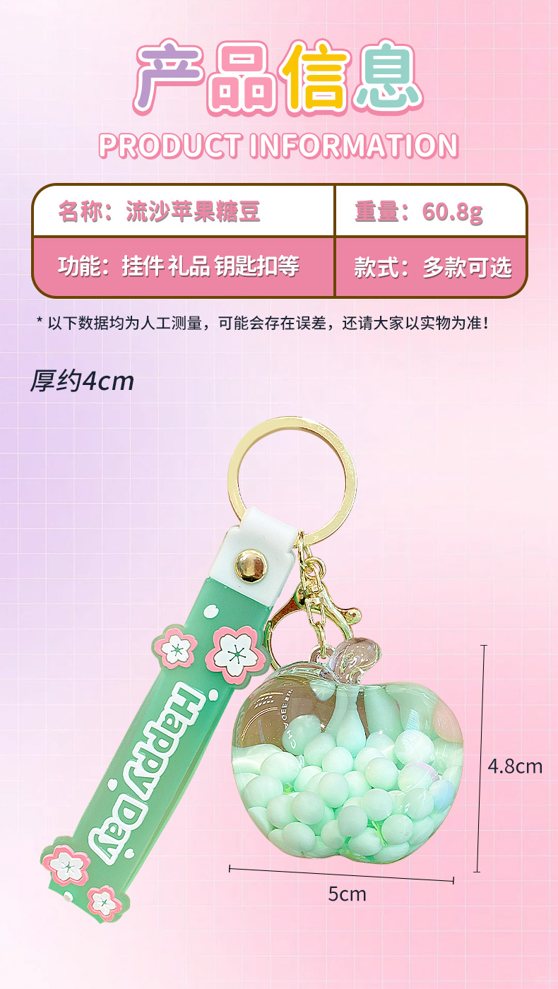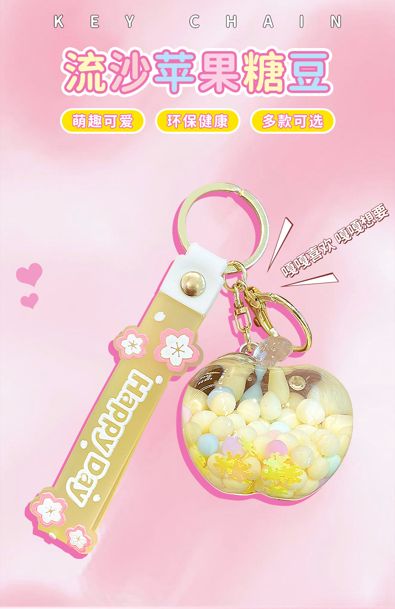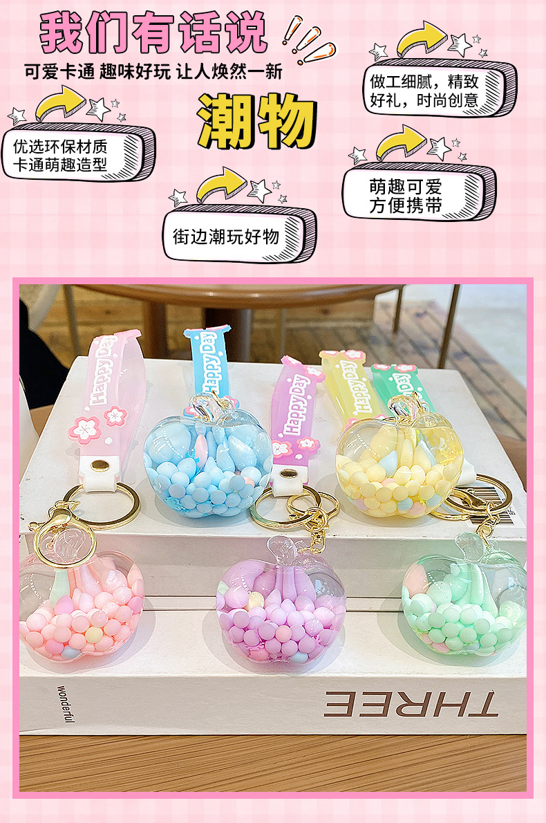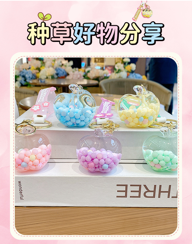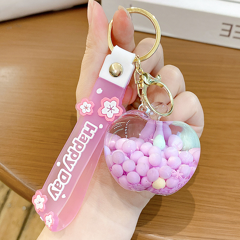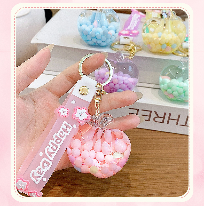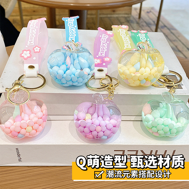 emulational creative quicksand apple candy key ring pendants couple lovely bag pendant keychain gift wholesale