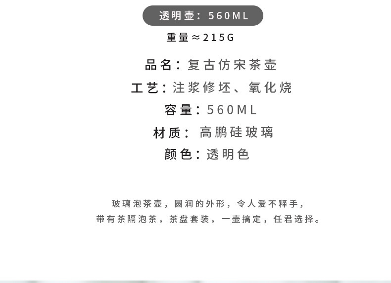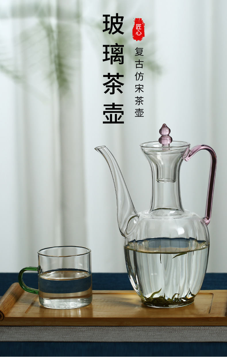imitation song dynasty noble consort teapot, transparent handle, 550ml, with spring mechanism