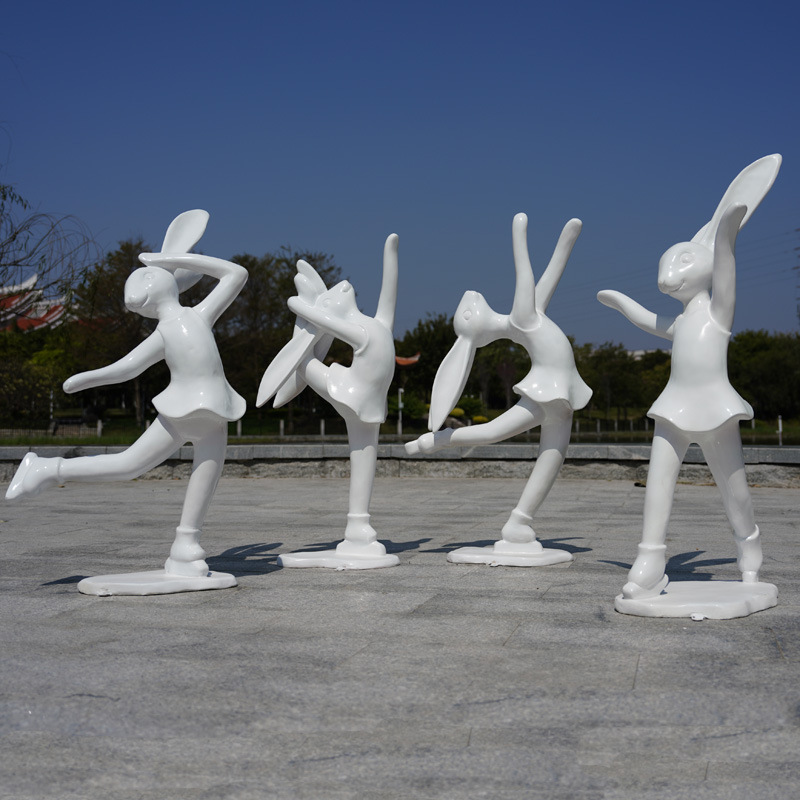 four cartoon rabbit figure models