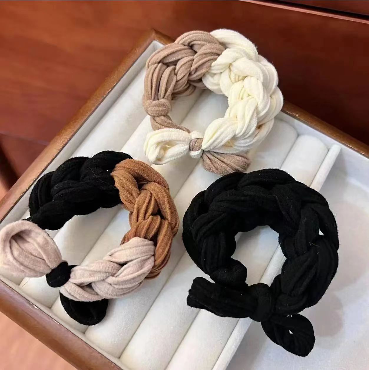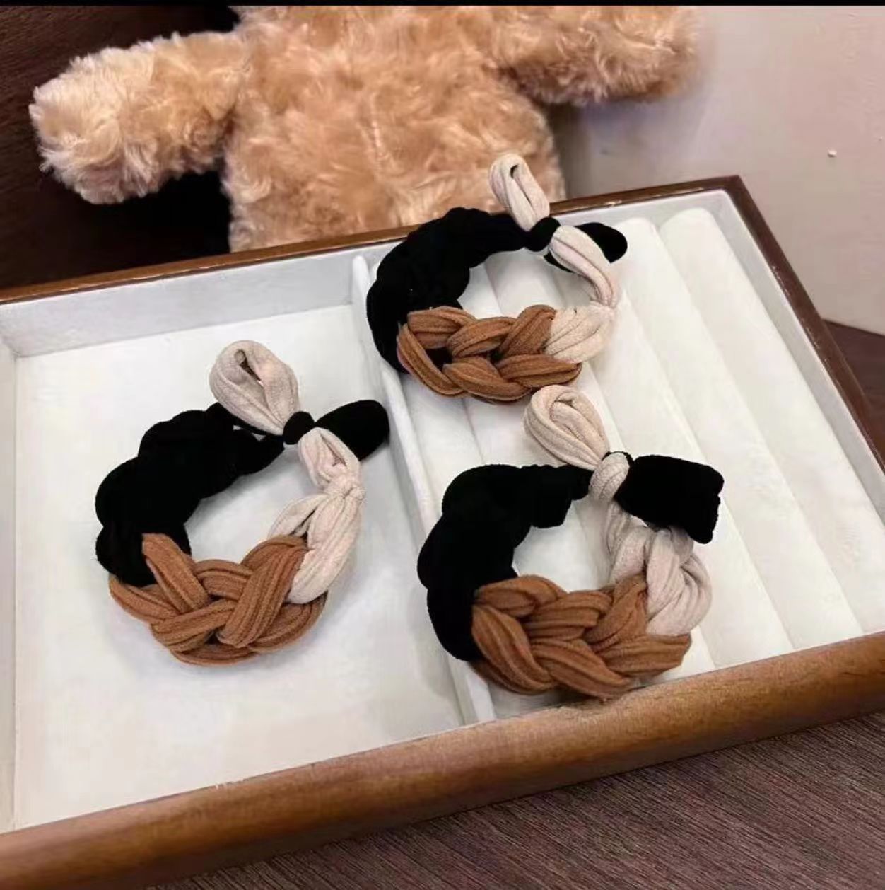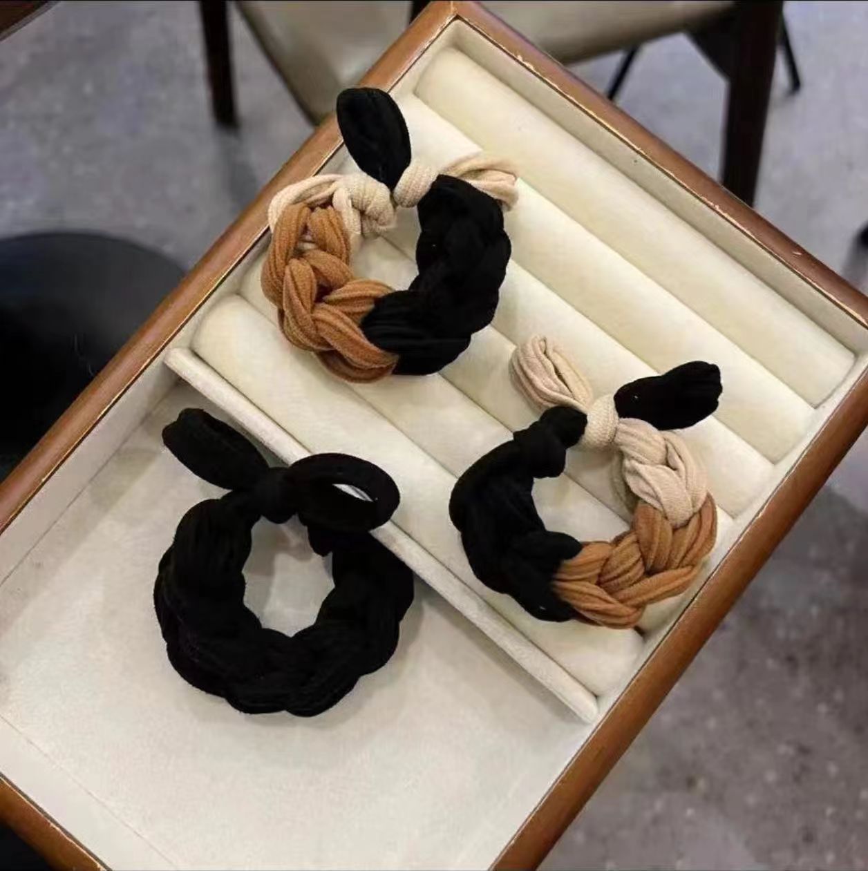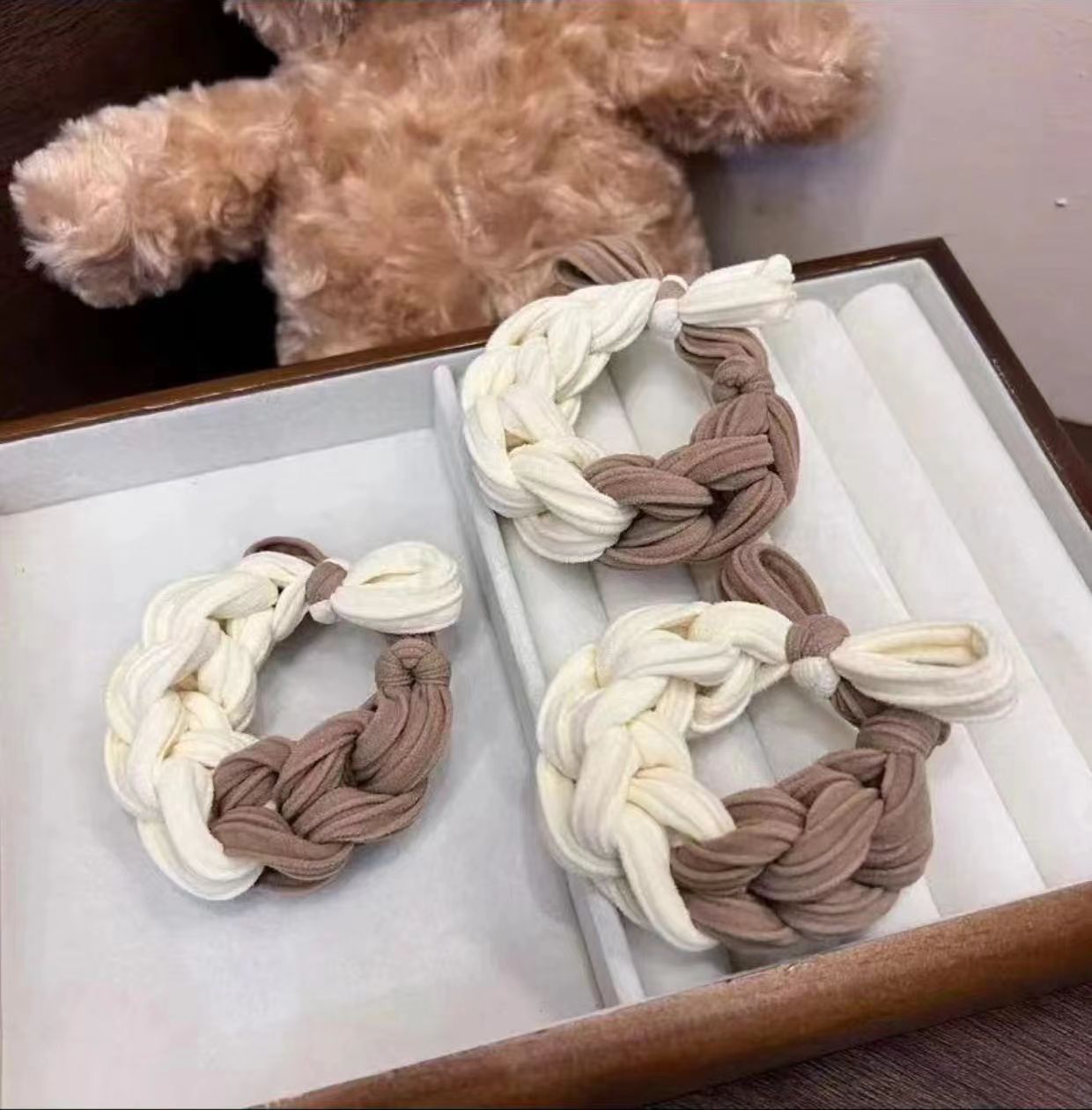 [one cream and coffee-colored one]