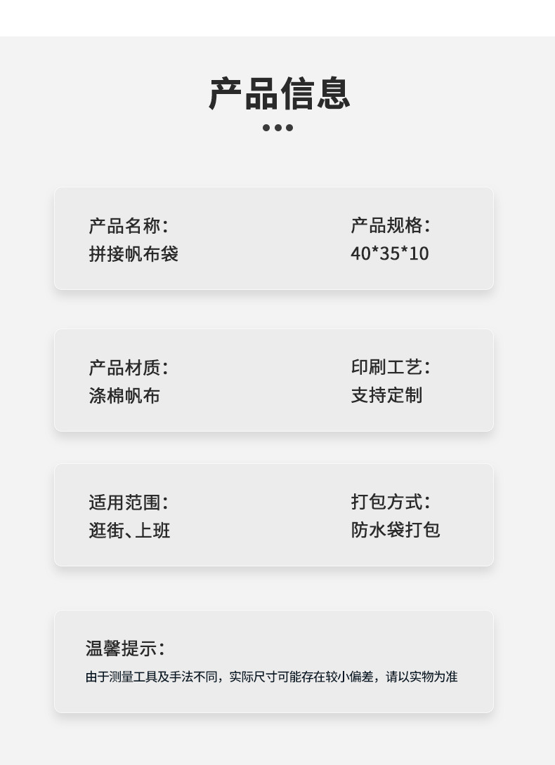 splicing style 35*40*10cm [dark blue splicing + outer bag]; others CN¥ 9.0