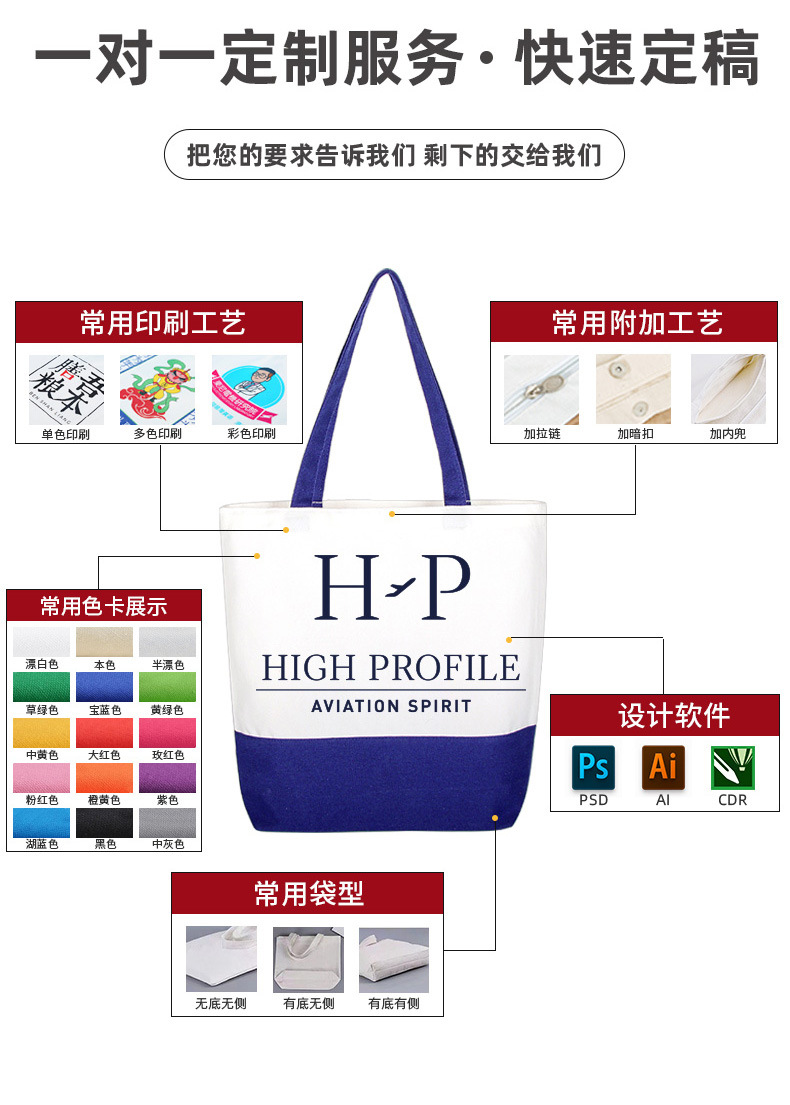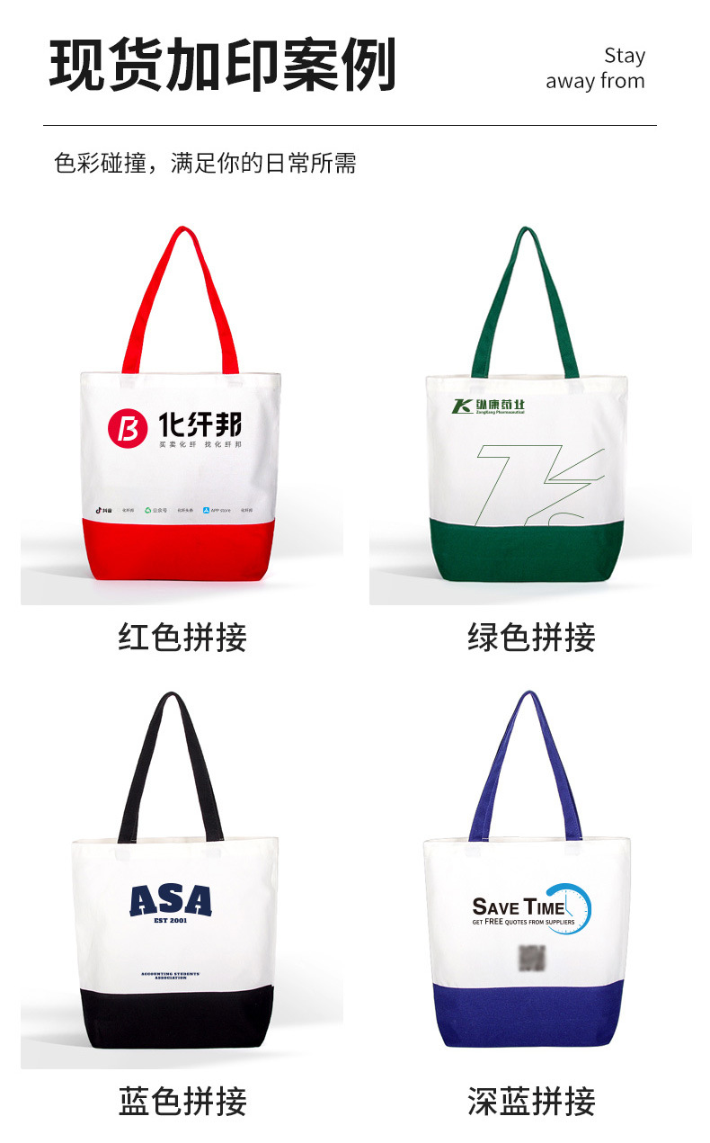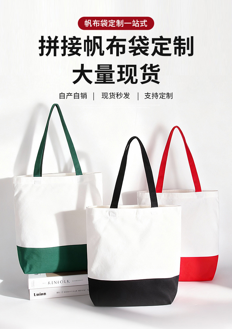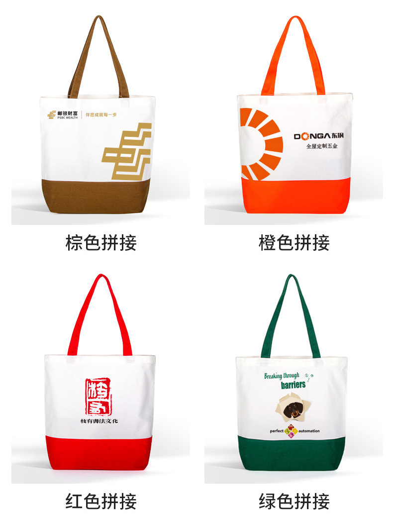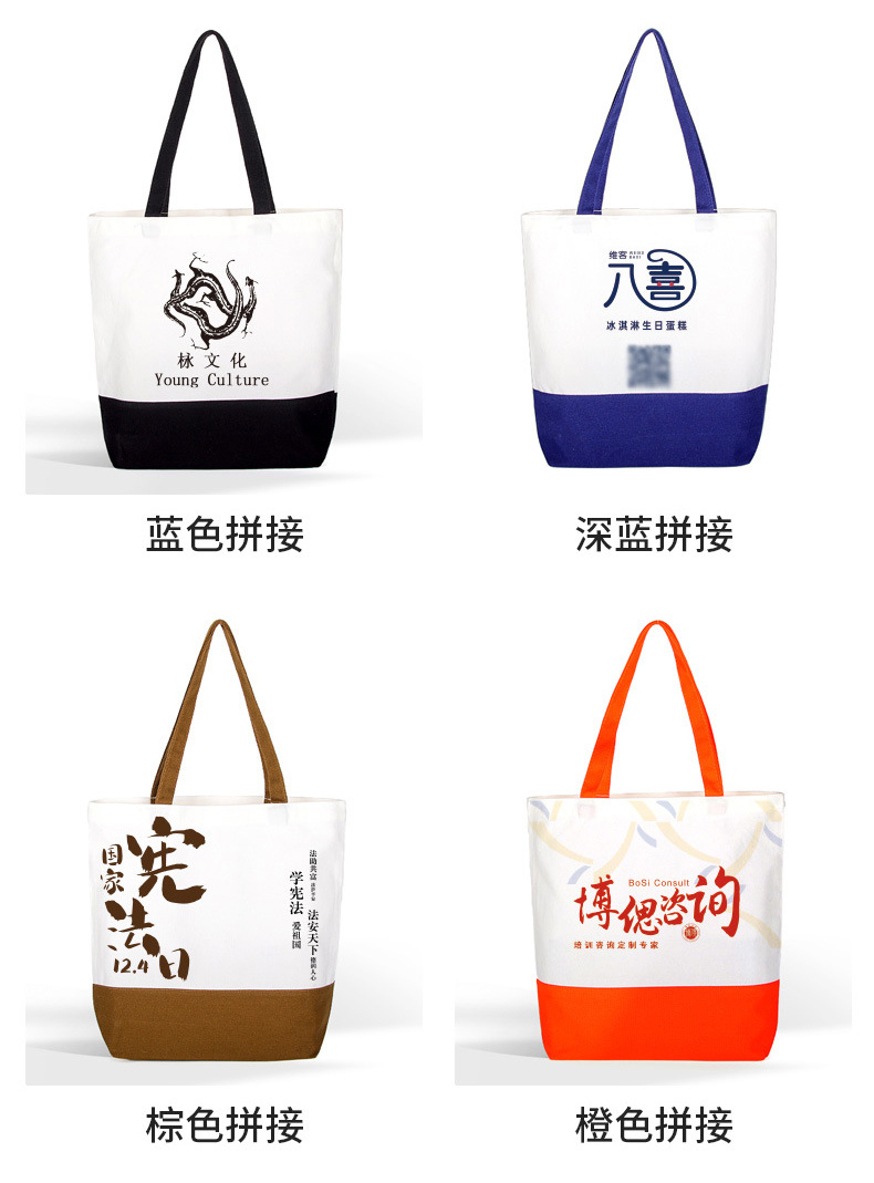 splicing canvas bag customized logo bottom splicing color handbag enterprise advertising blank canvas bag