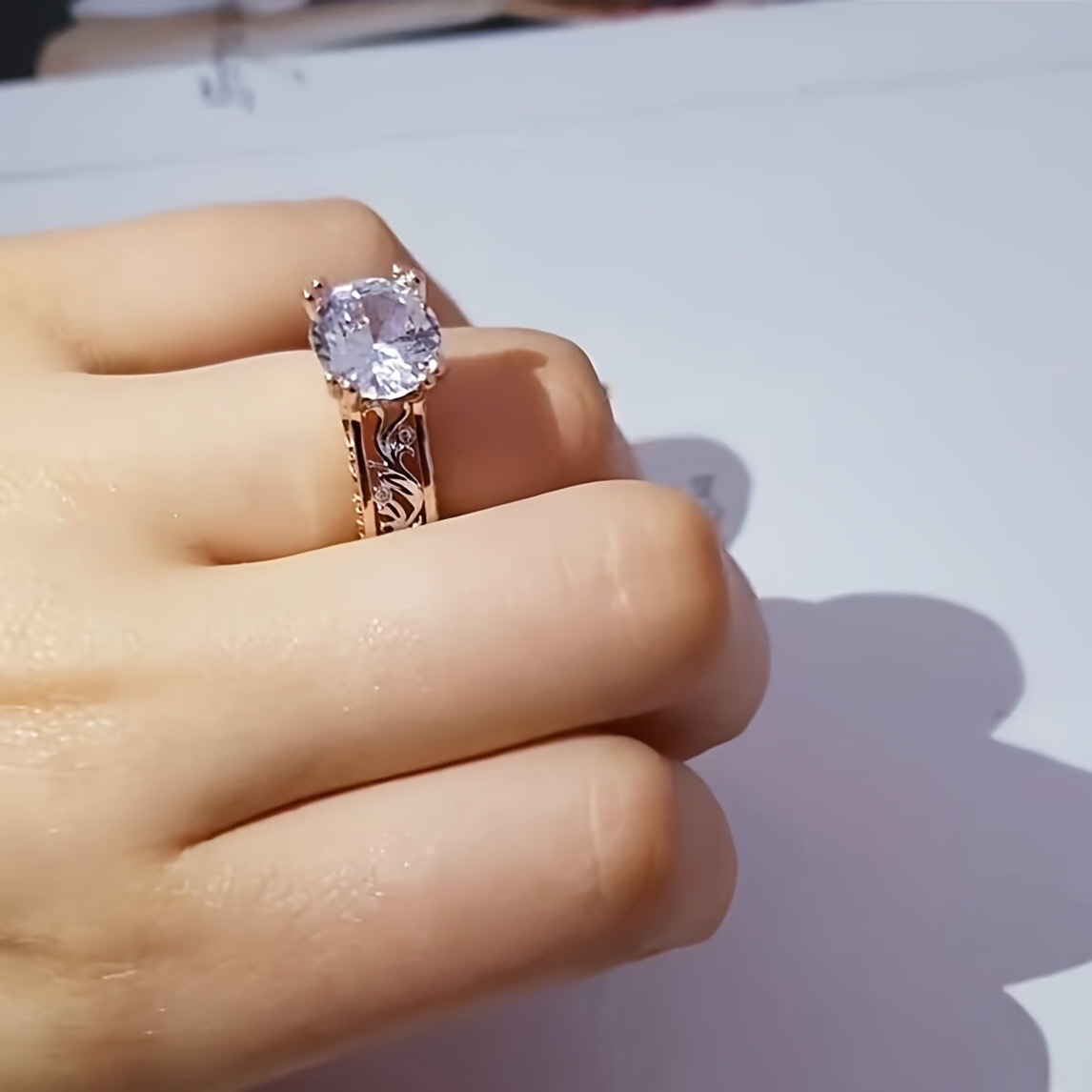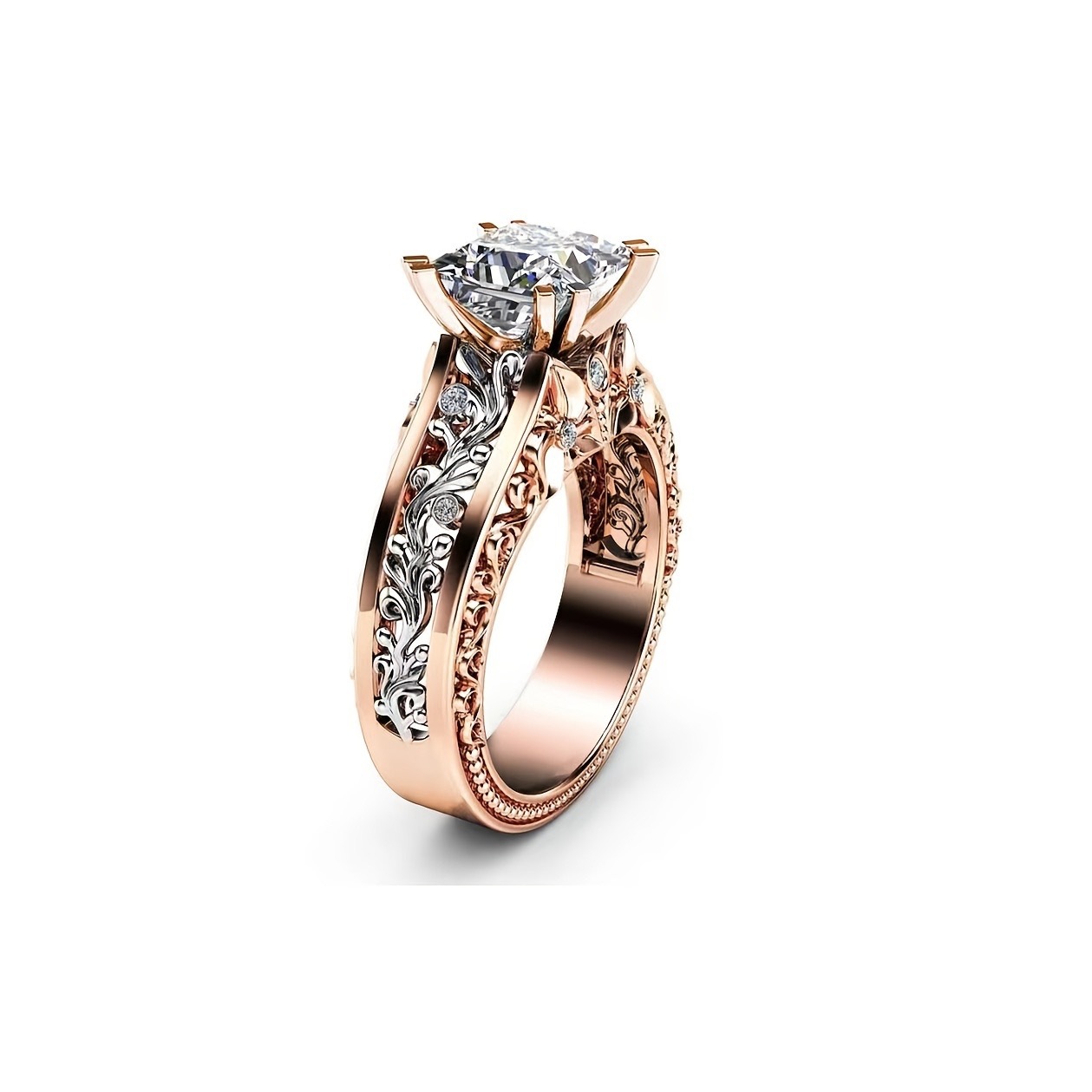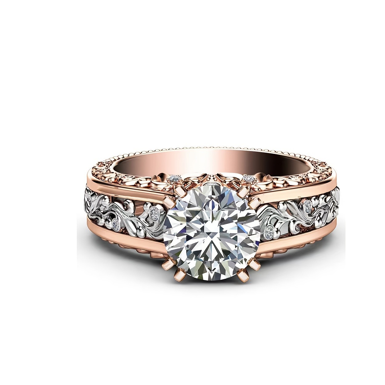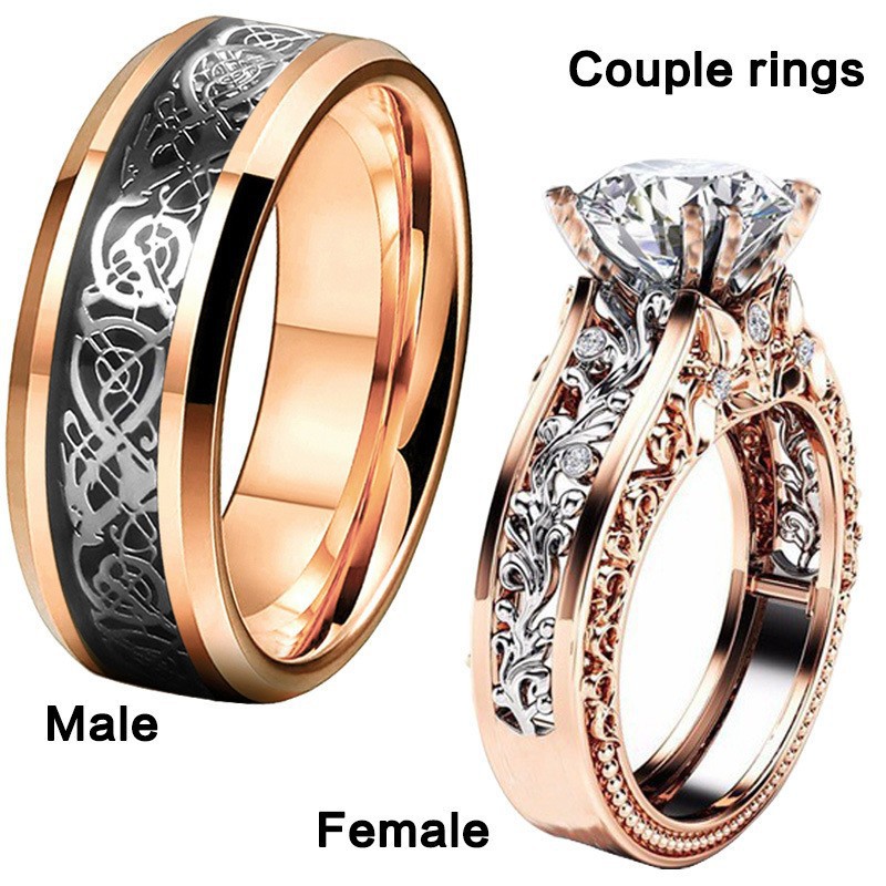 color: women's rose gold two-tone ring, men's stainless steel ring, women's